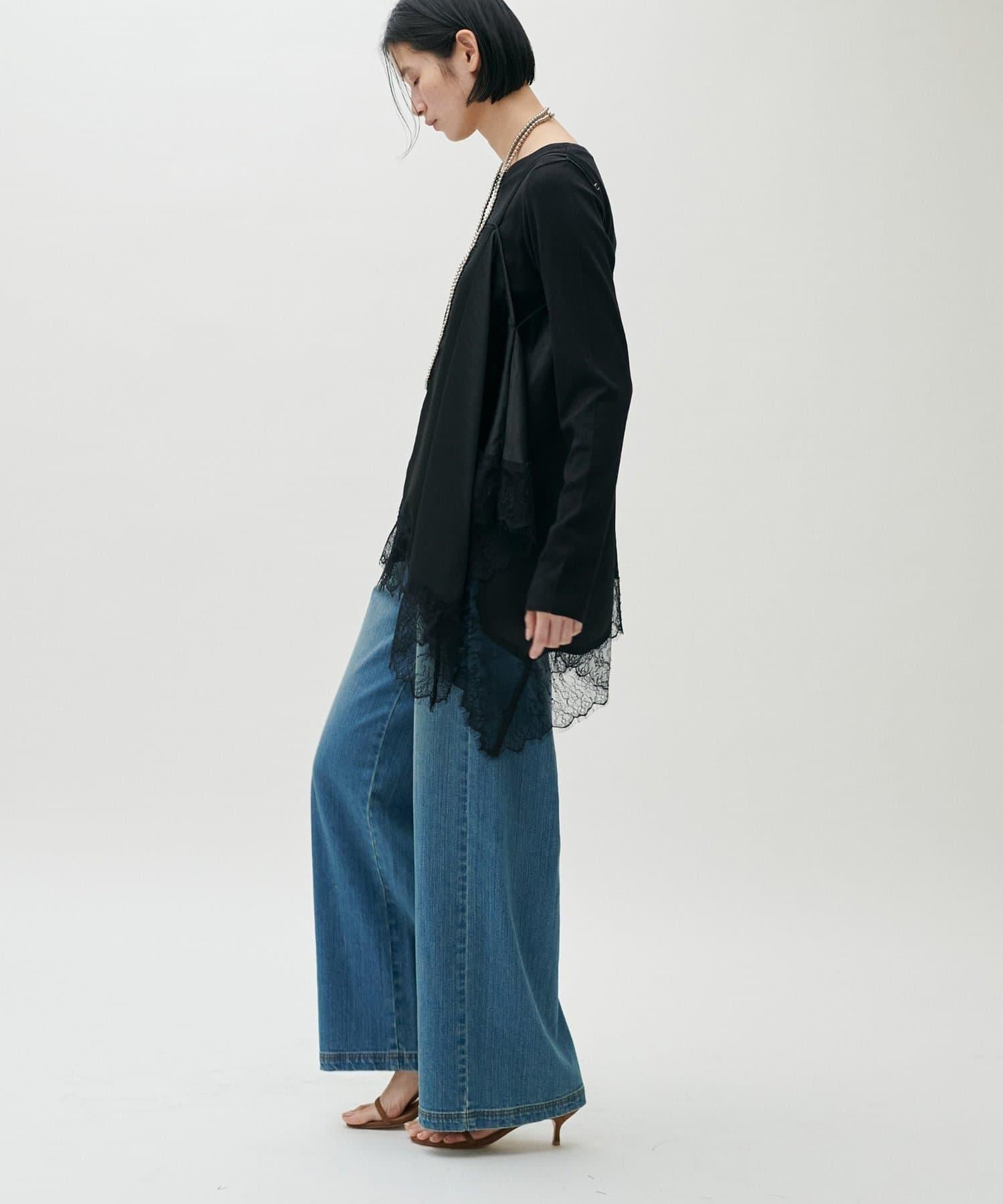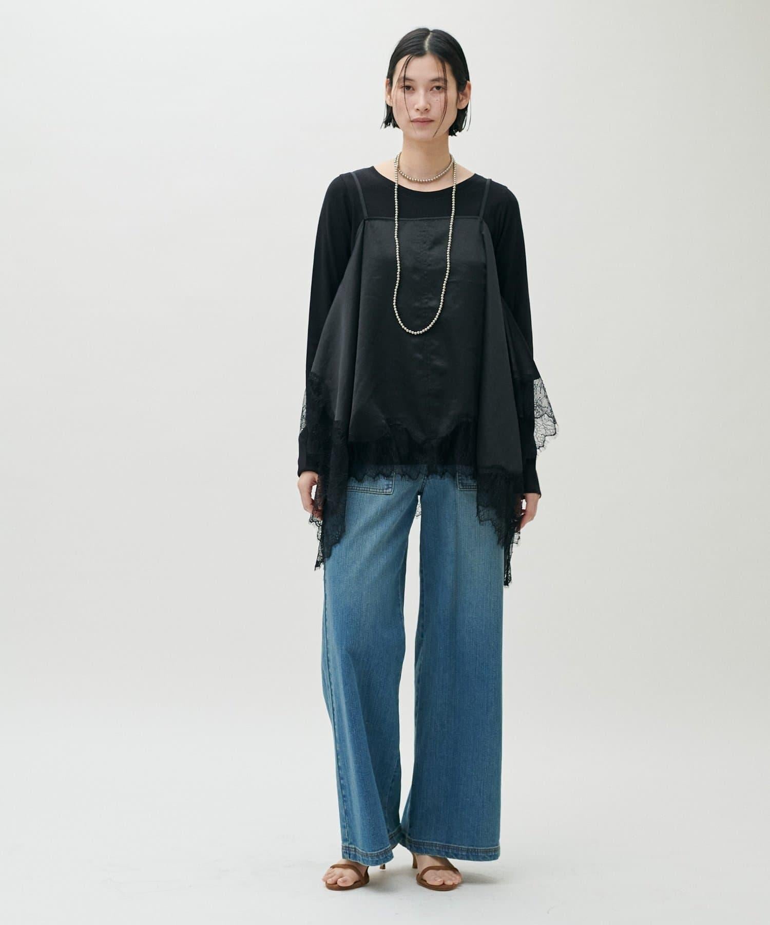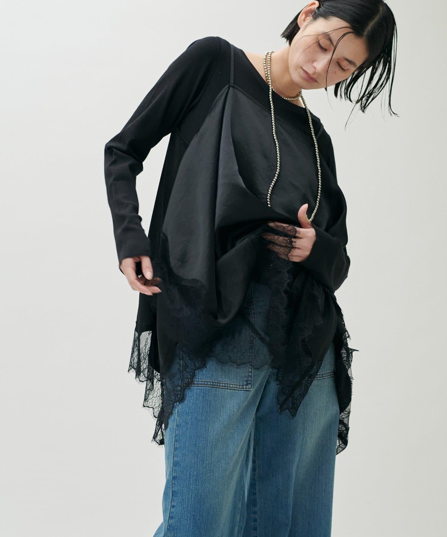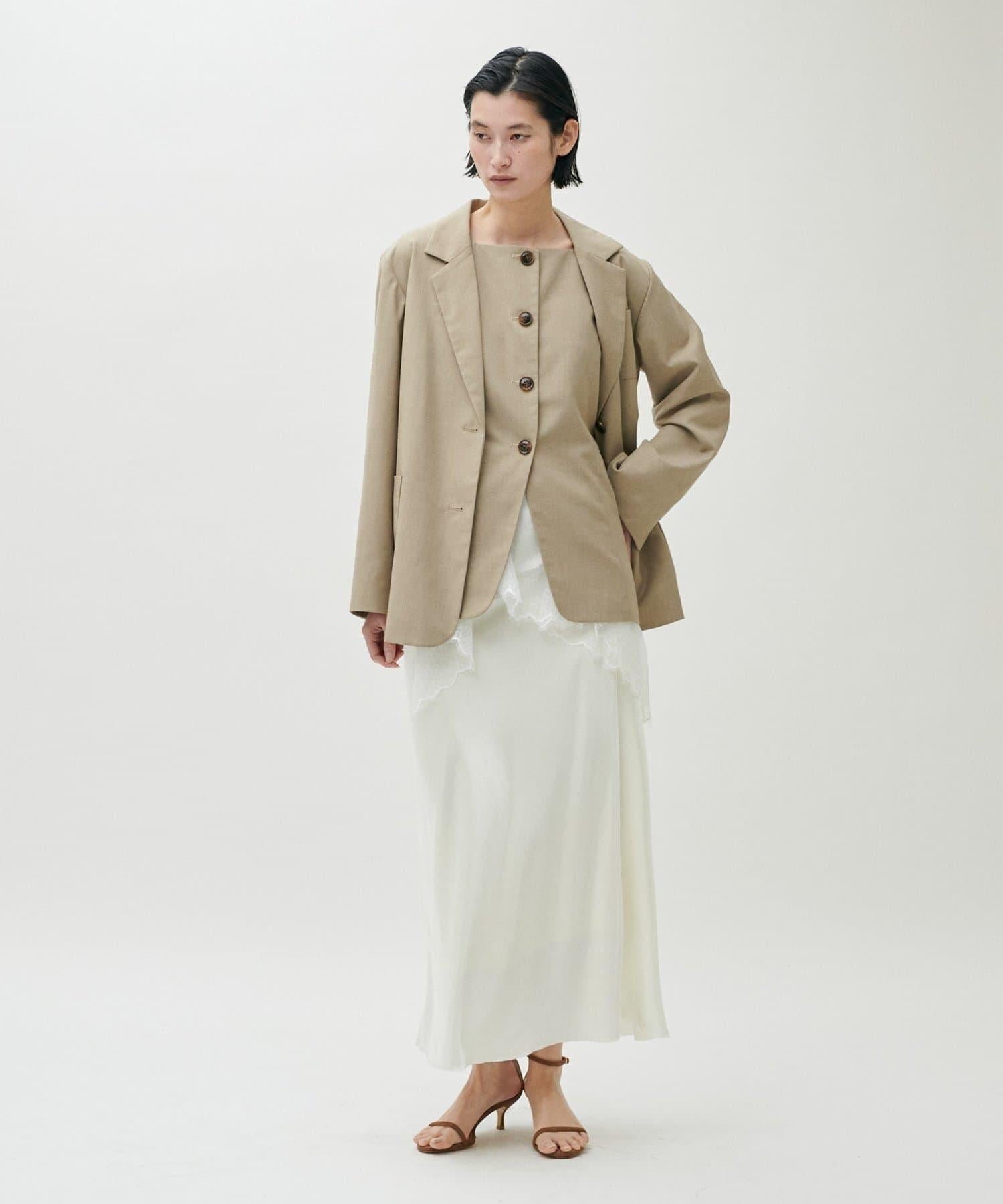 輕盈的蕾絲和緞面面料相結合的女性化表現面料,手感柔軟寬鬆。