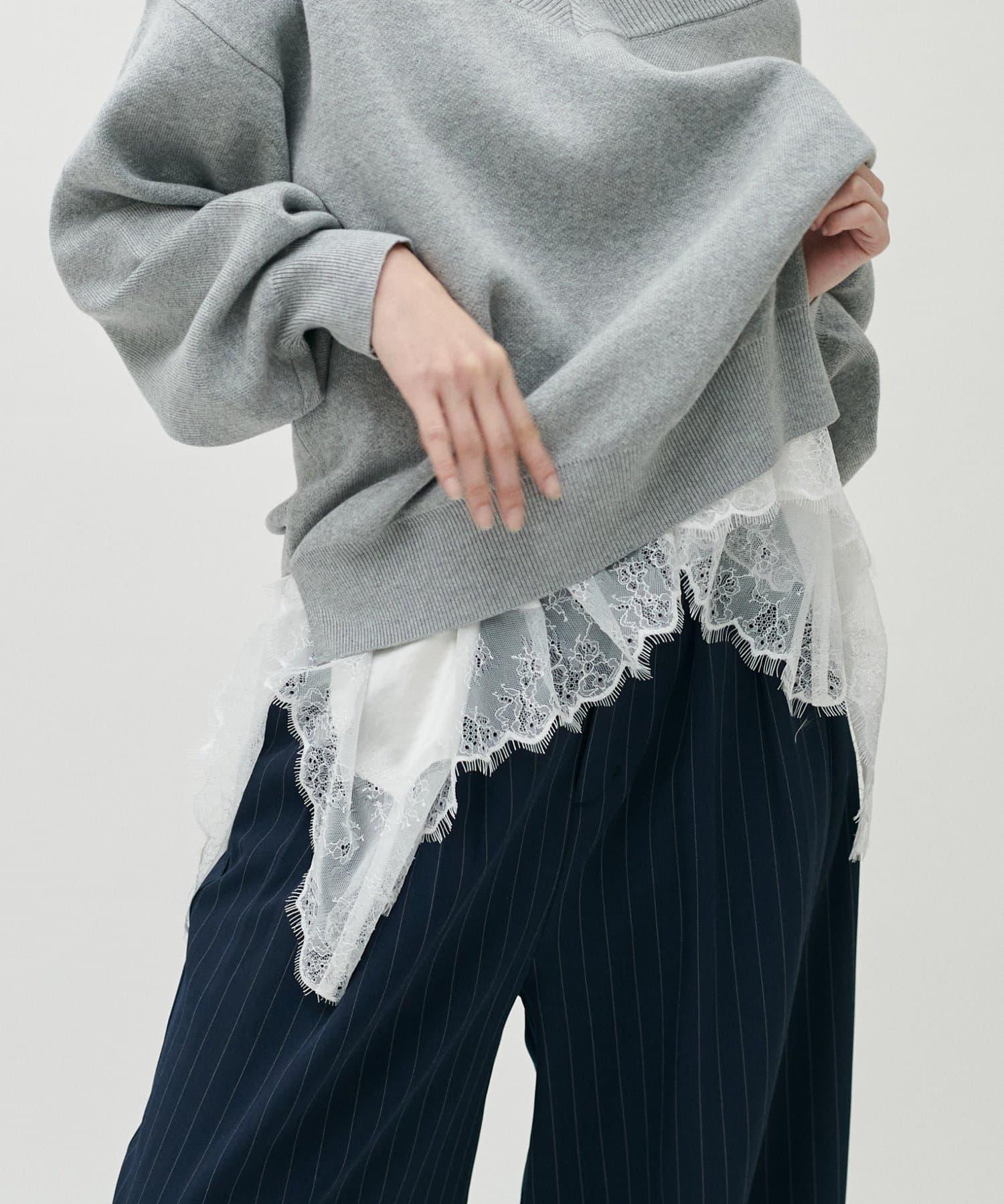 本季推薦將蕾絲從針織衫或運動衫的下襬露出來的多層次款式。