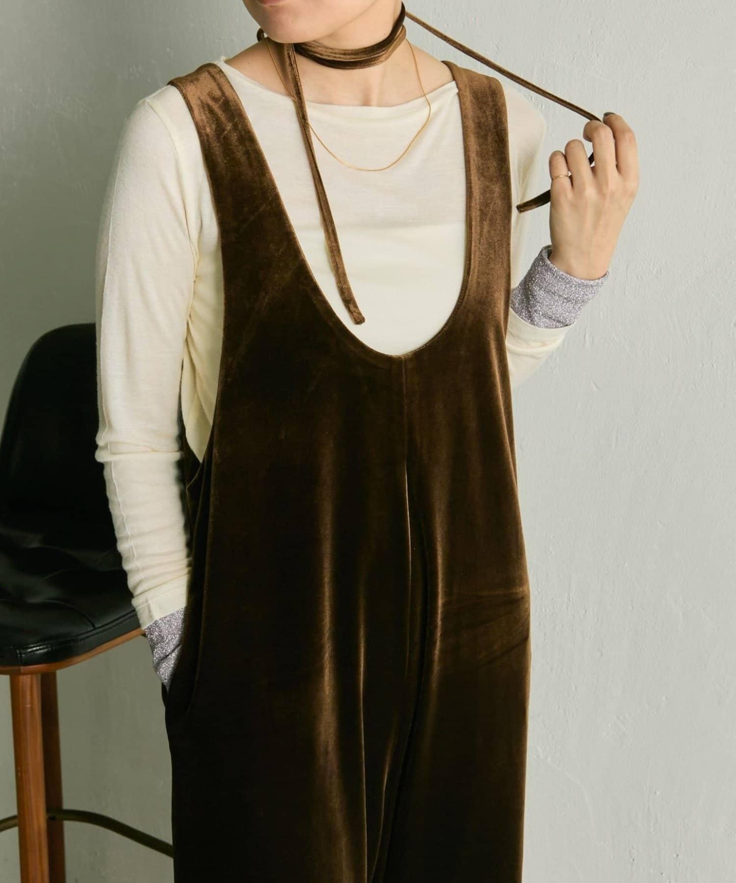 絲絨面料的 salopette 會讓您在不經意間感受到季節的氣息。