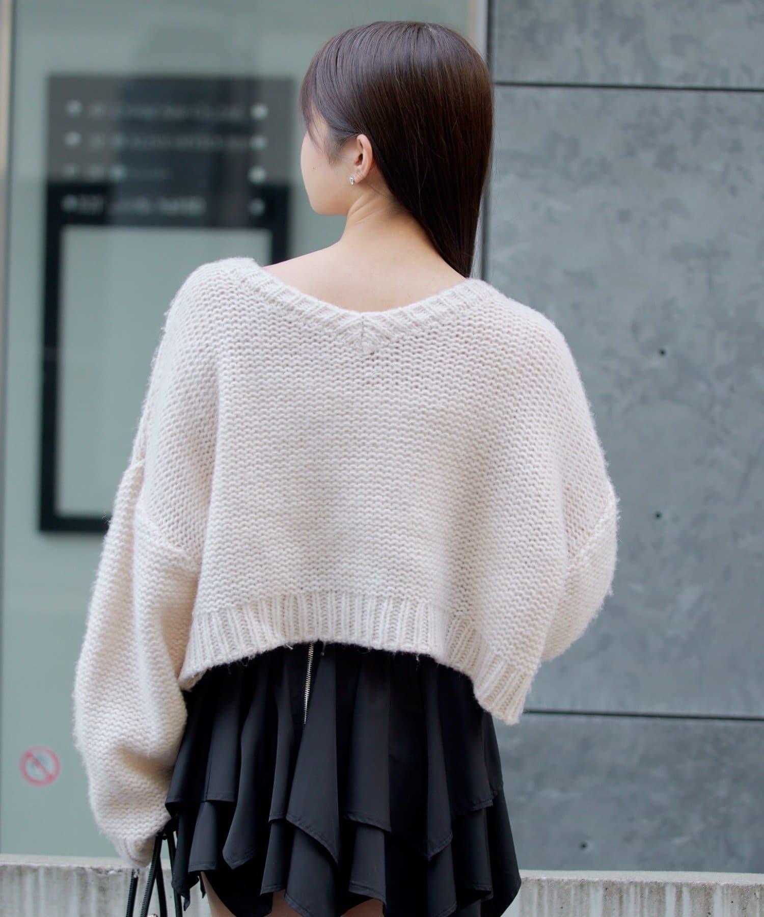 這款針織衫前後雙向設計,可搭配 U 領或 V 領!