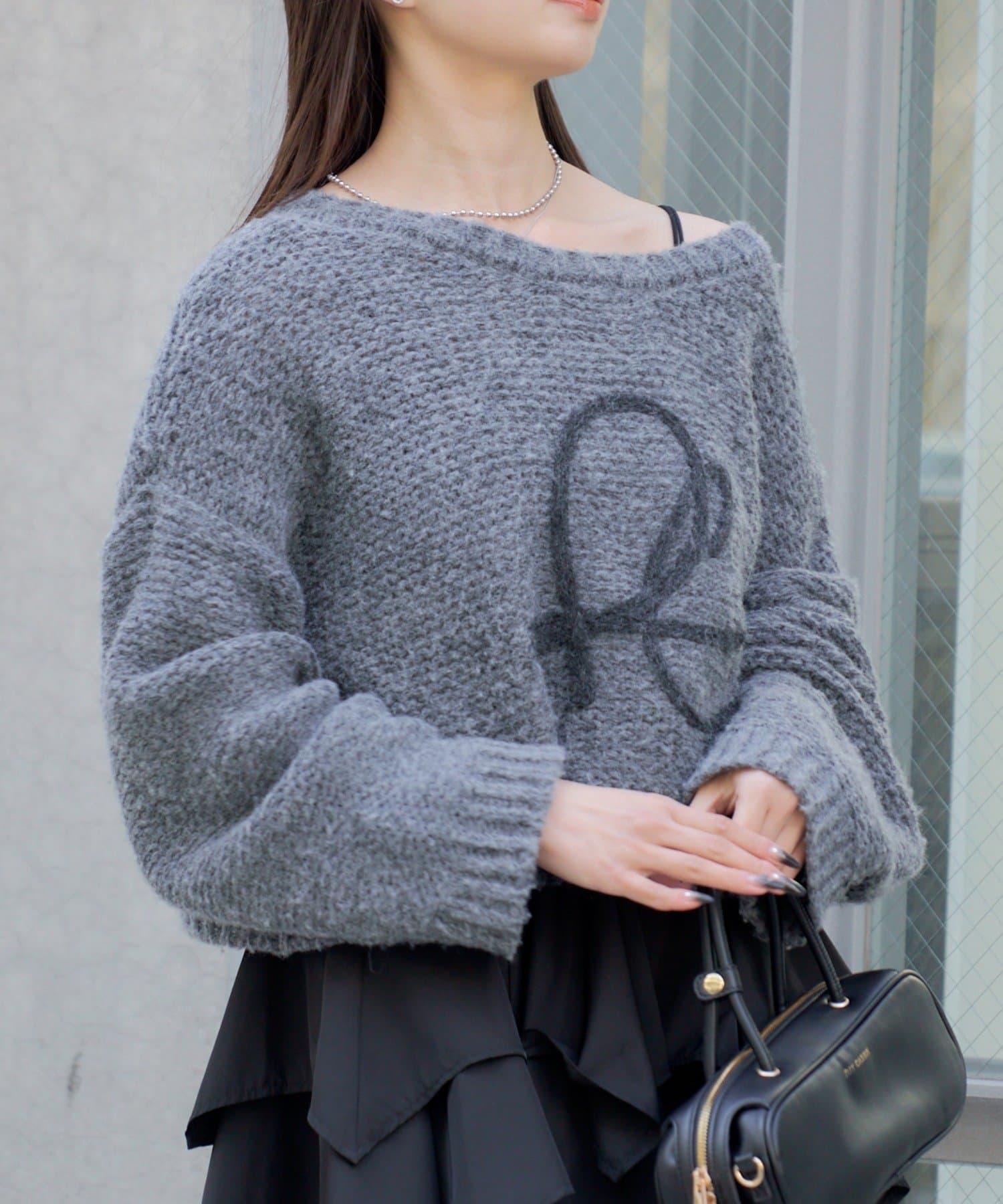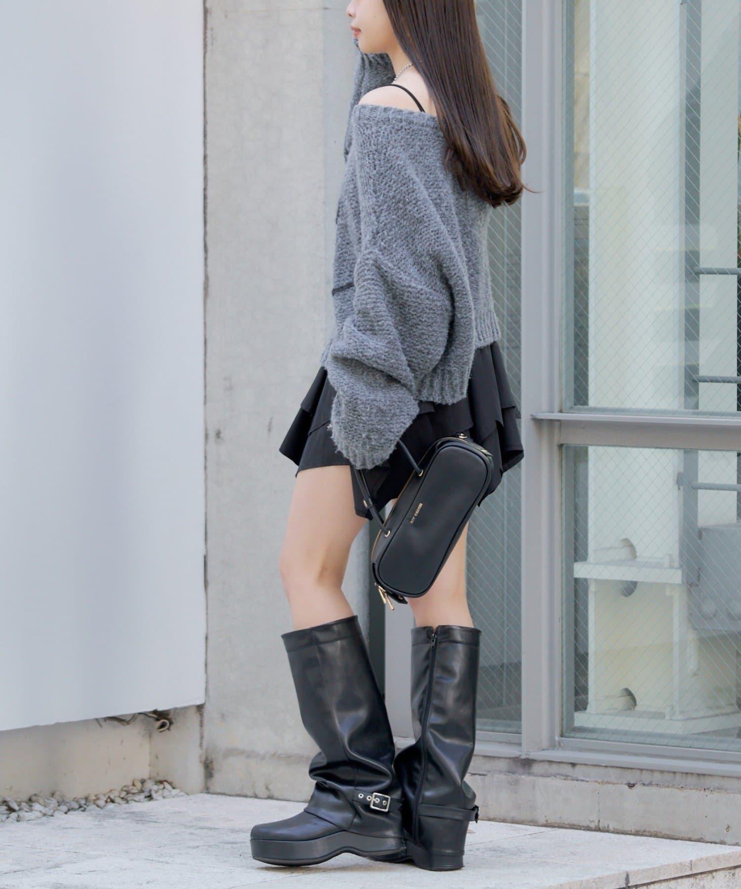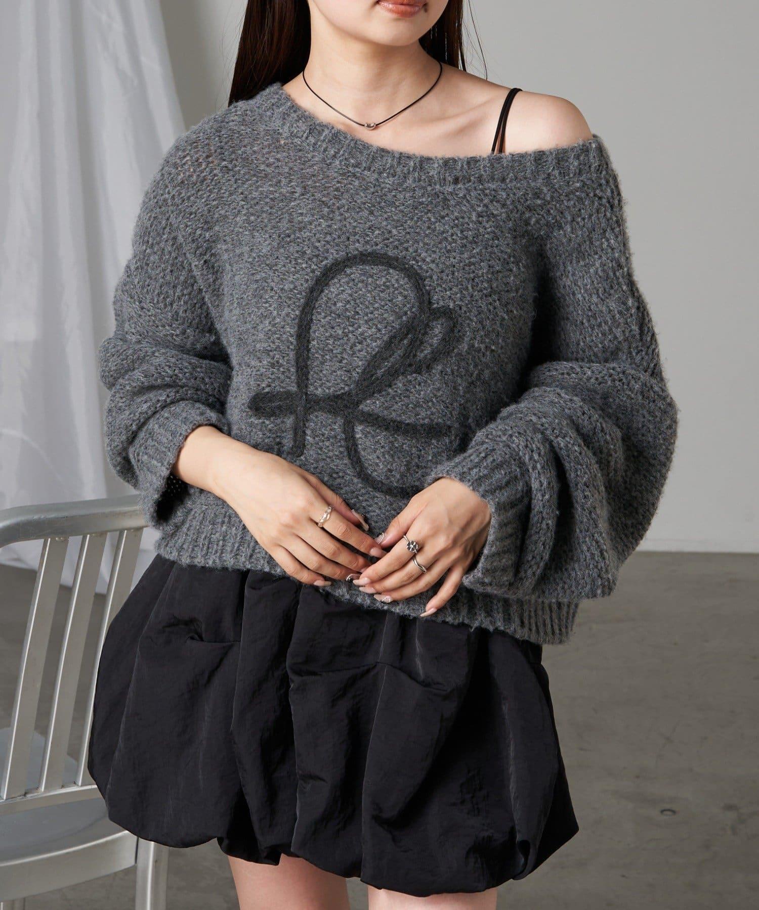 一款針織衫,可前後兩穿,也可單肩穿,讓頸部看起來更圓潤。