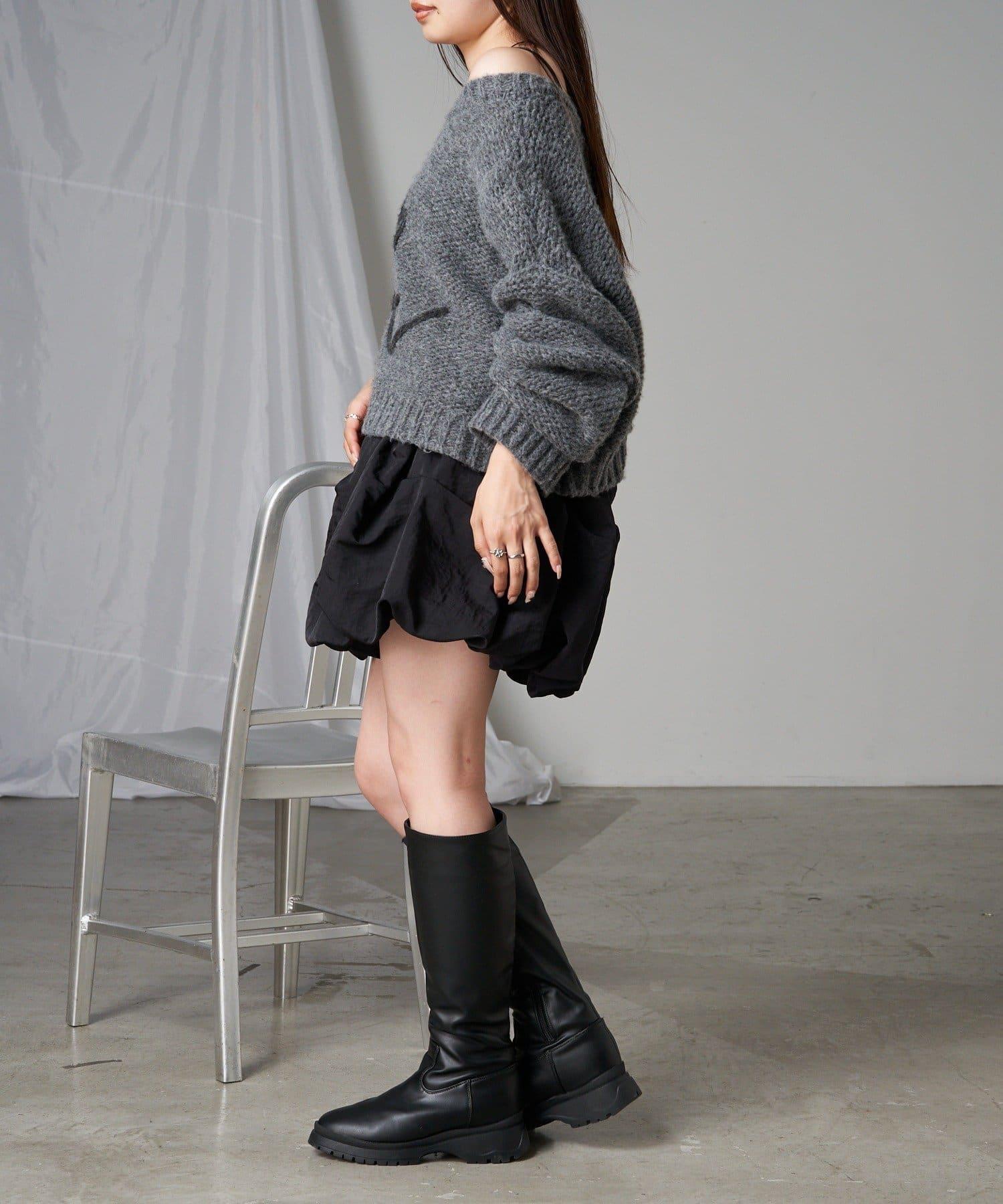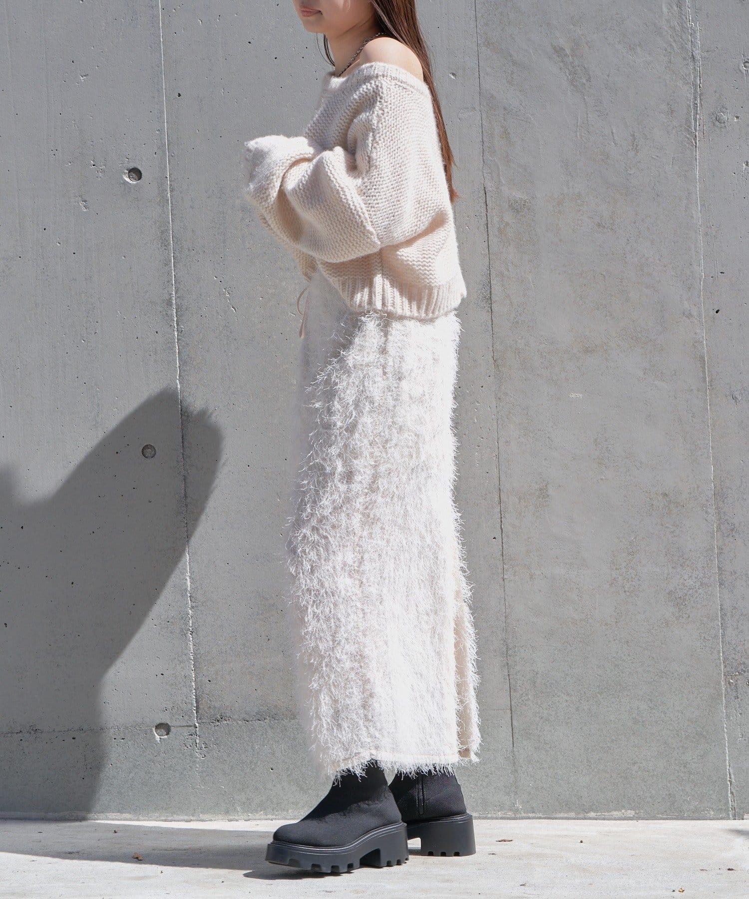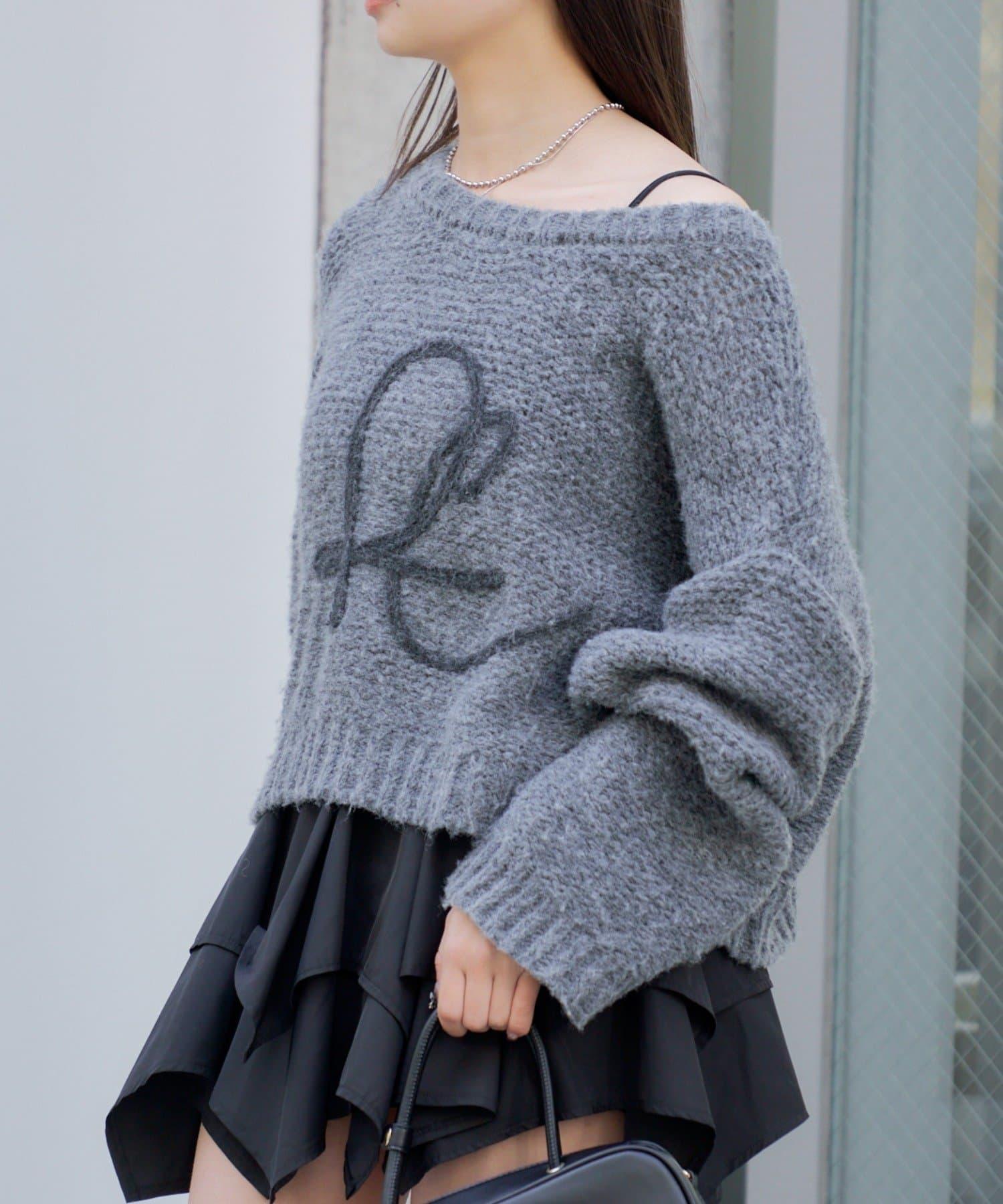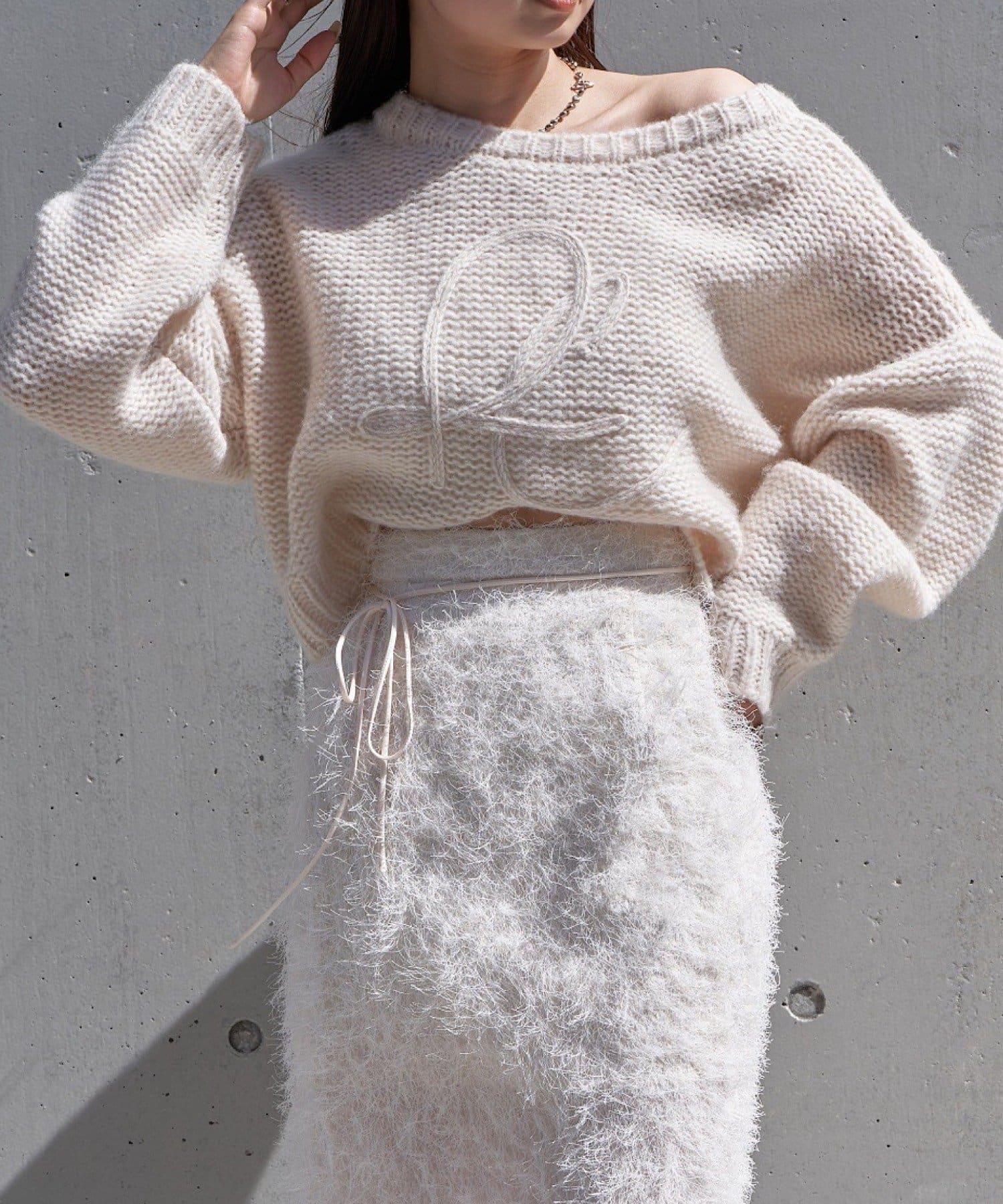 一款針織衫,可前後兩穿,也可單肩穿,讓頸部看起來更圓潤。