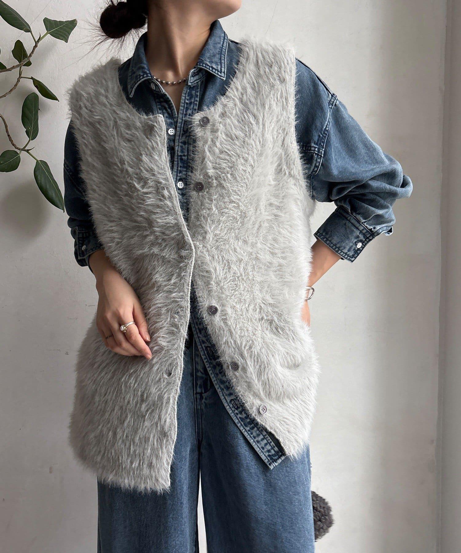 前後兩穿毛絨針織背心