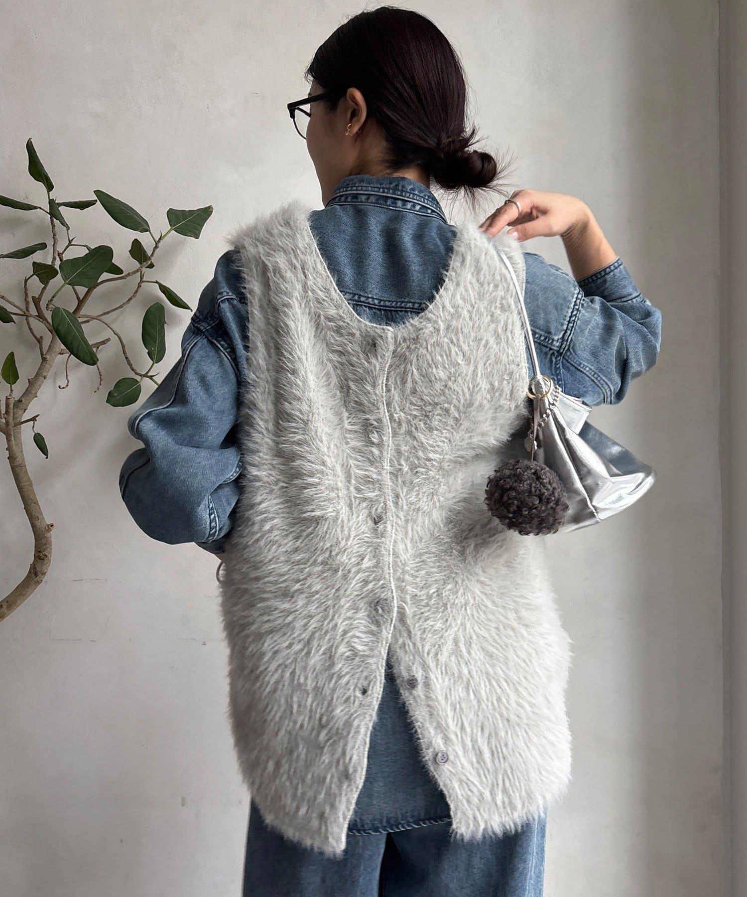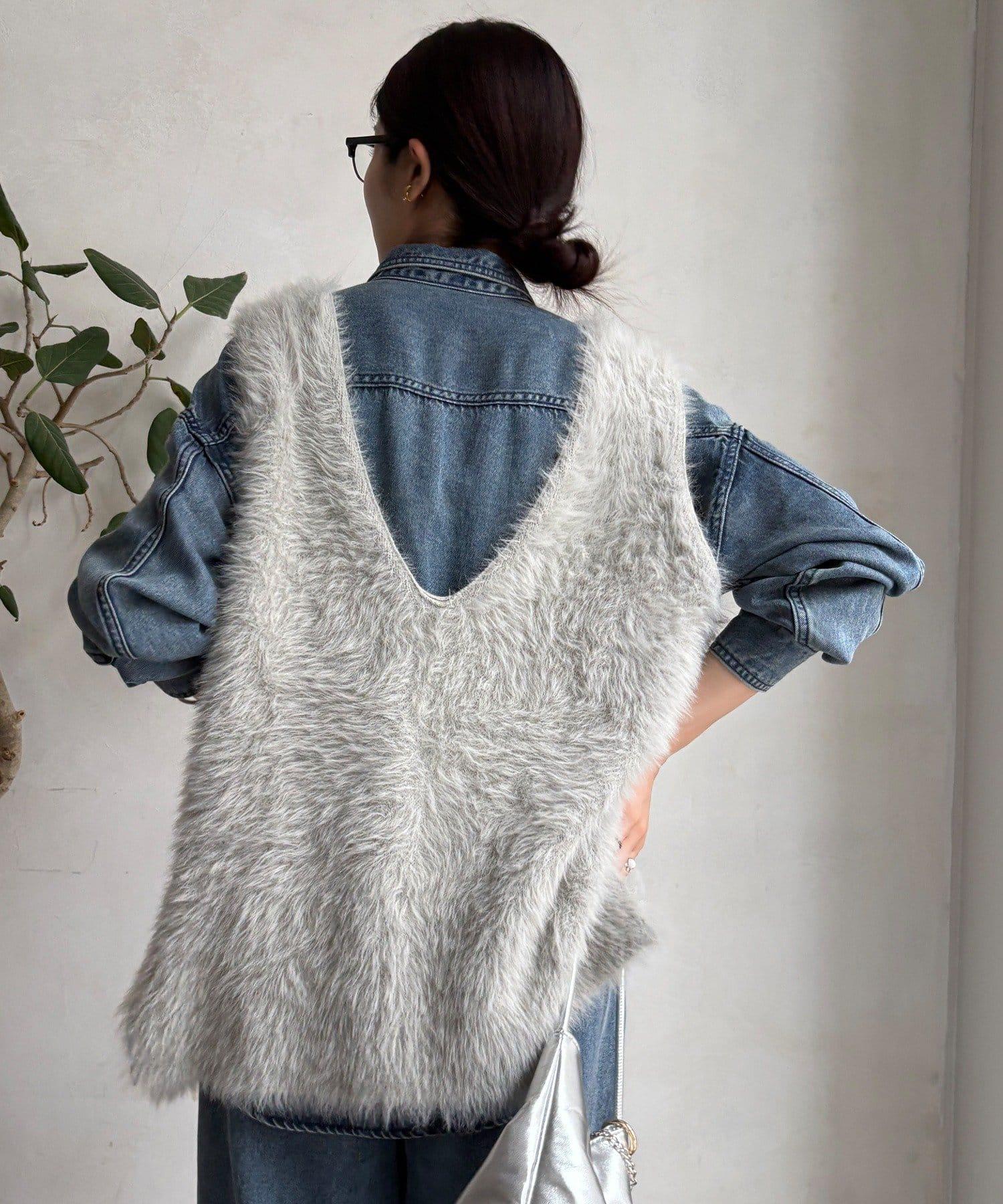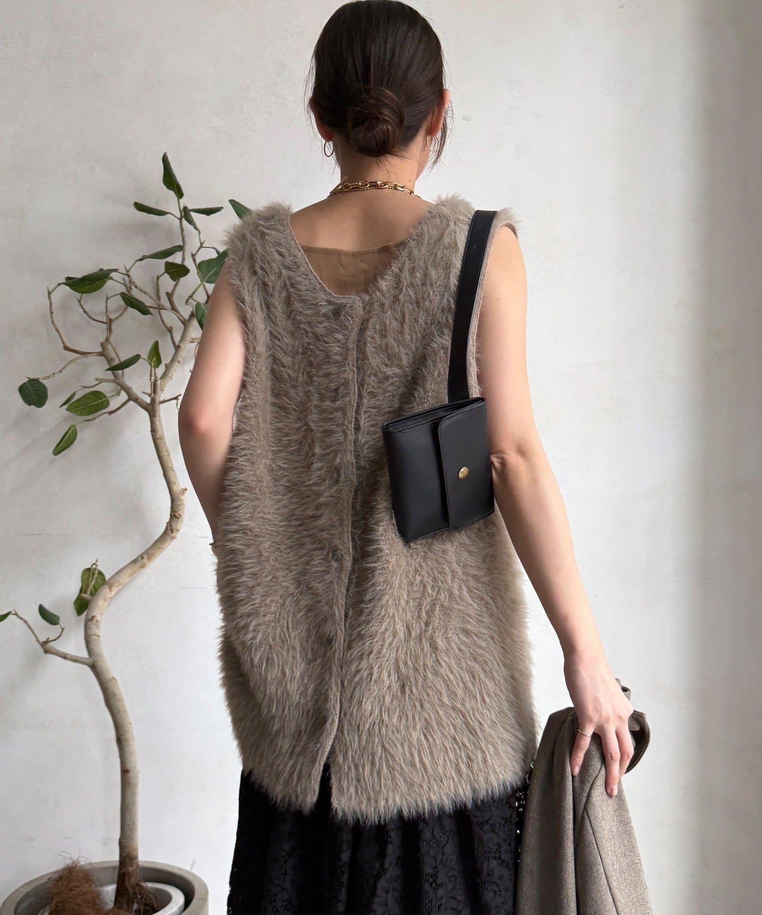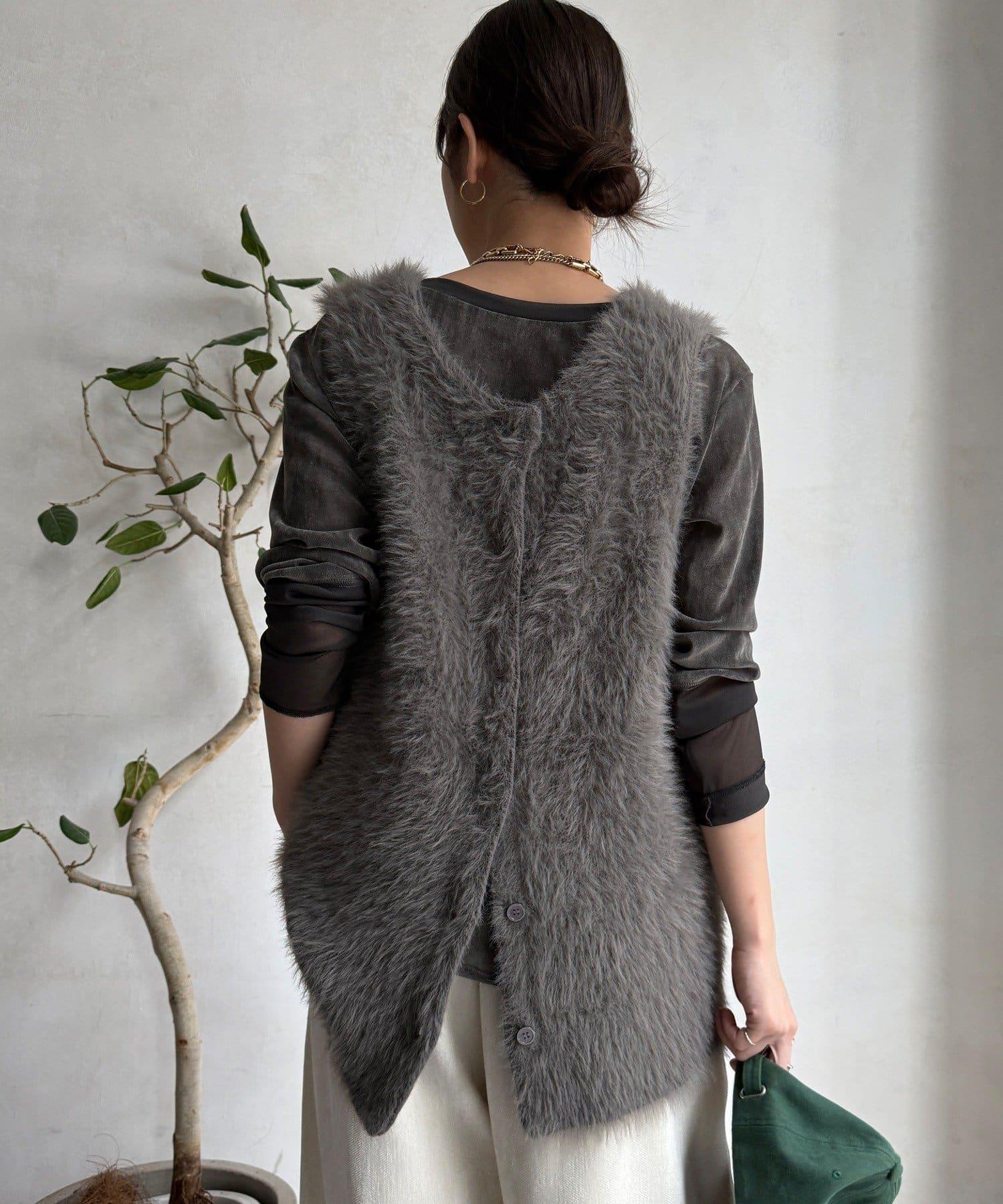 這款雙向馬甲採用毛茸茸的面料,兼具保暖性和時尚感。