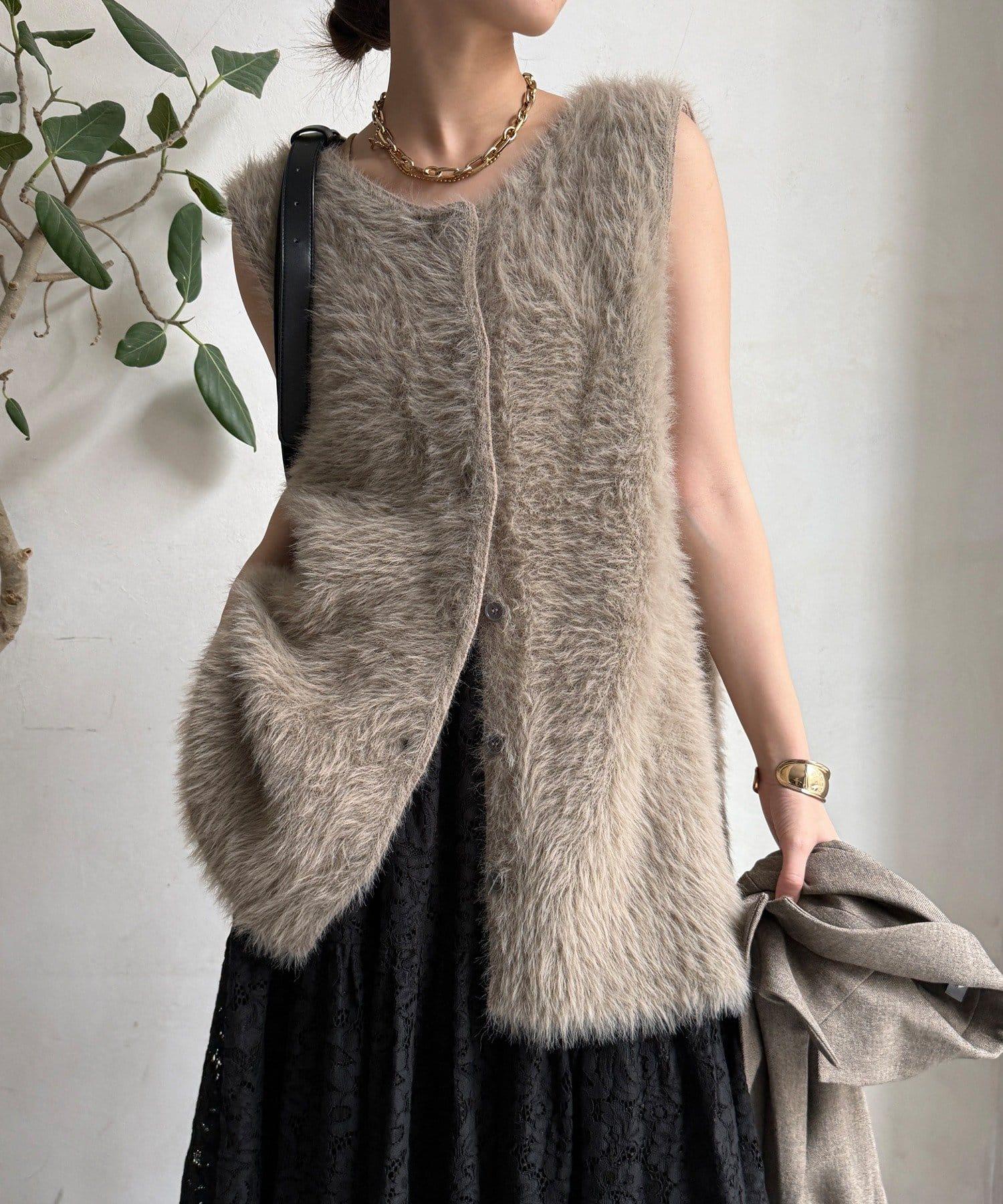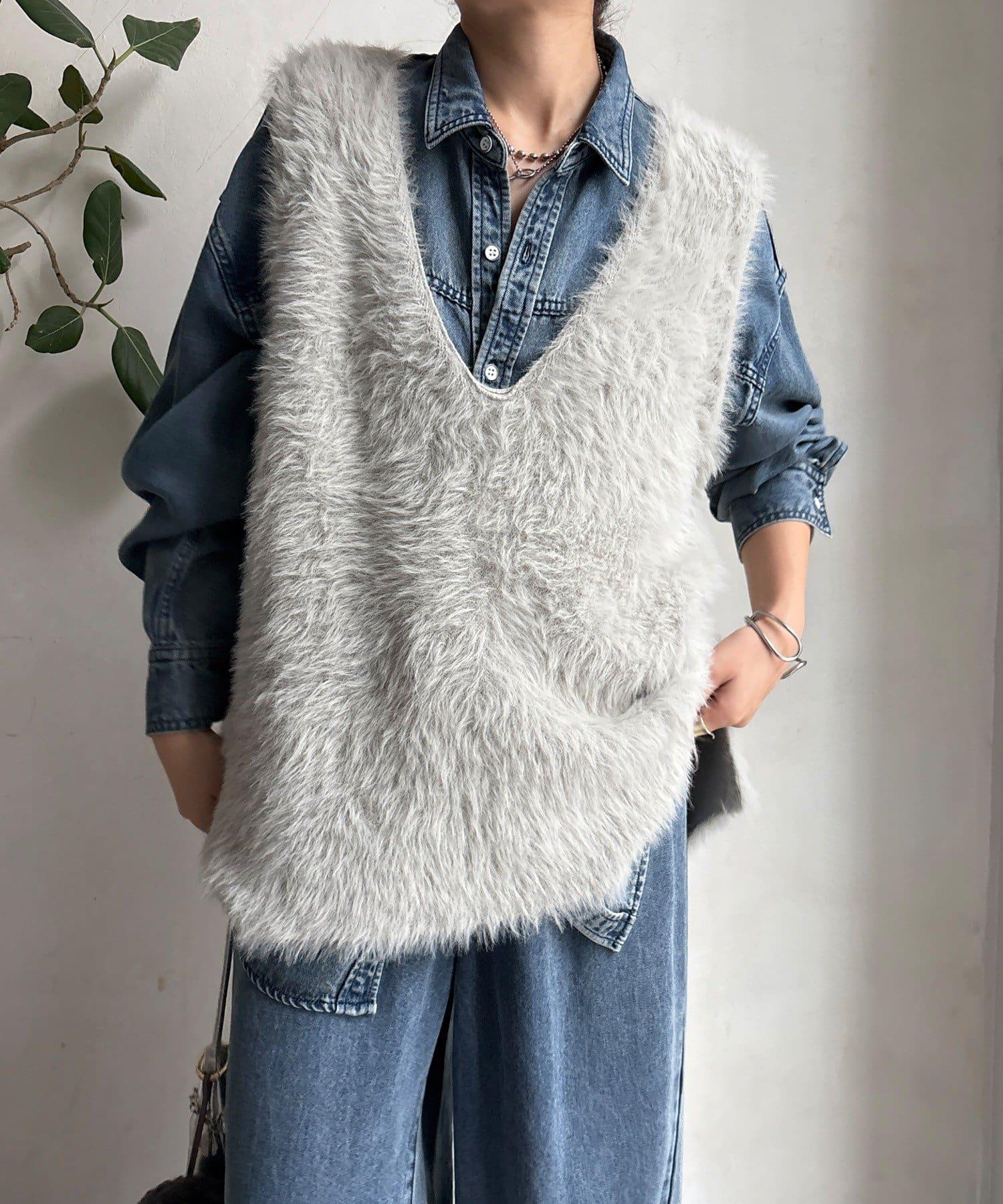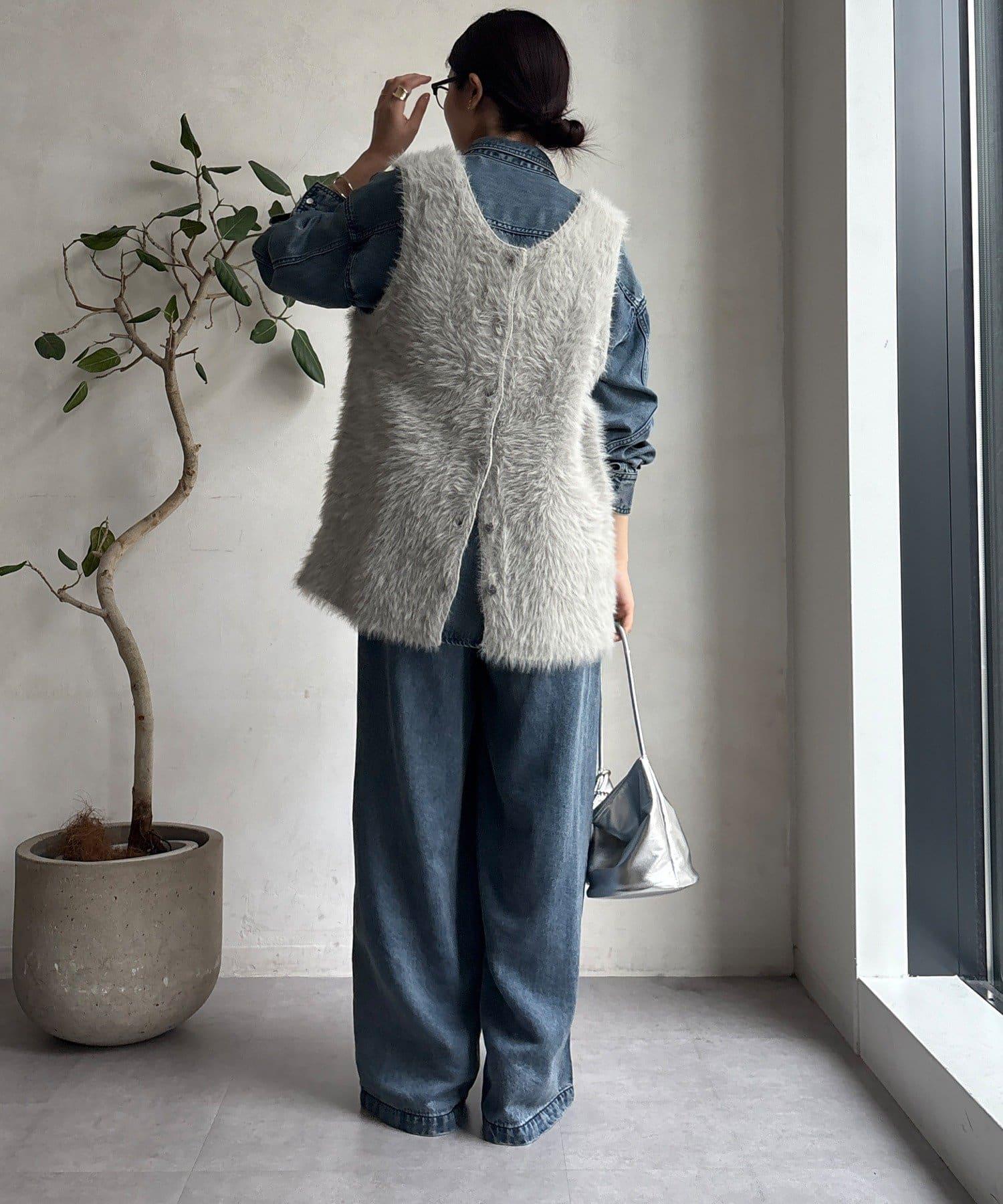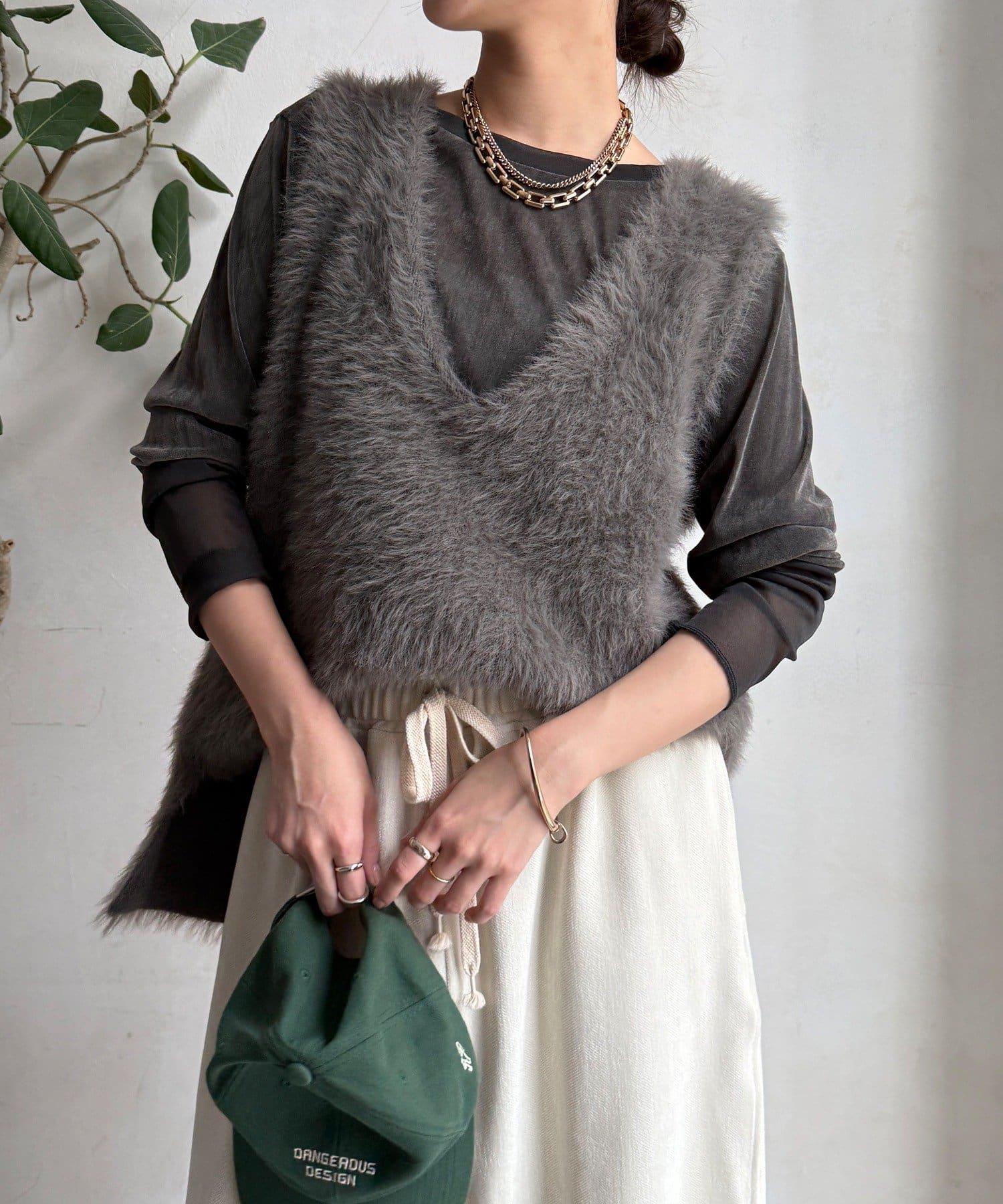 這款雙向馬甲採用毛茸茸的面料,兼具保暖性和時尚感。