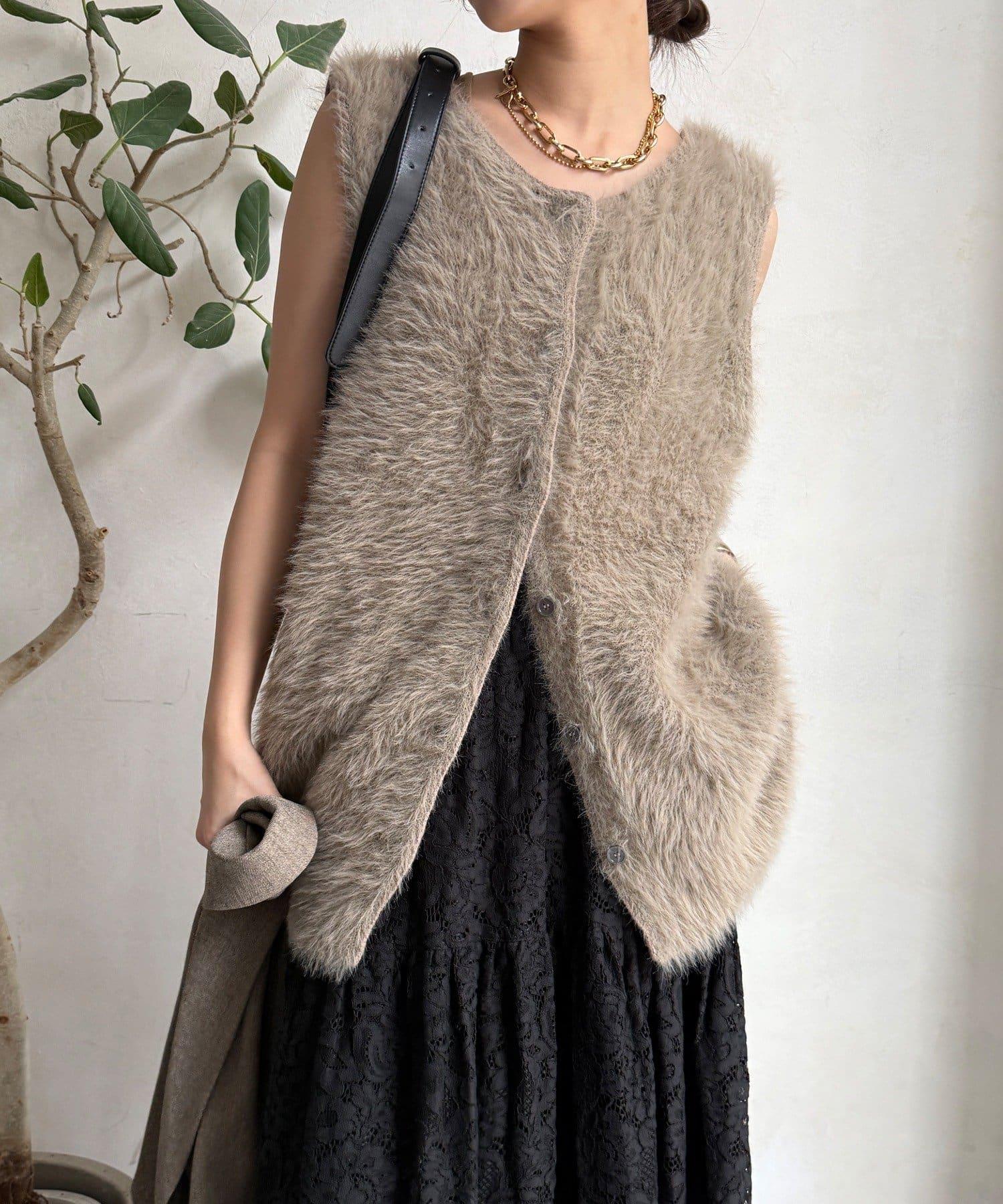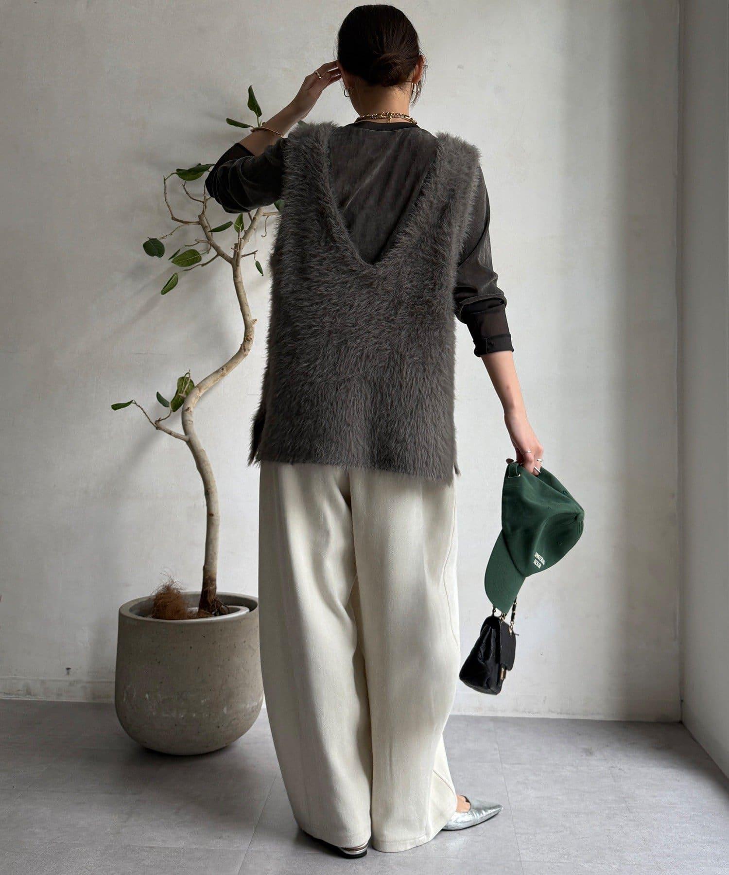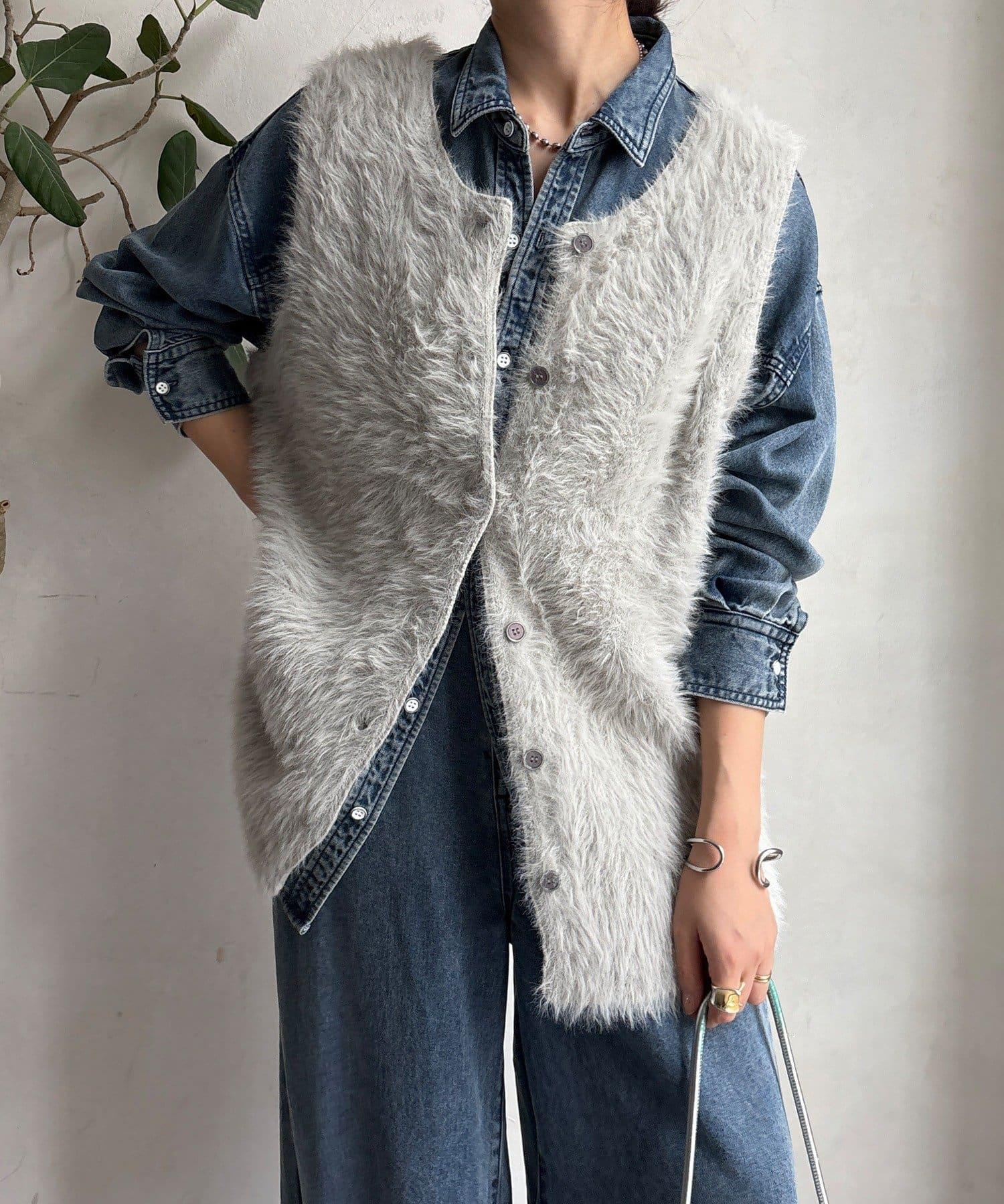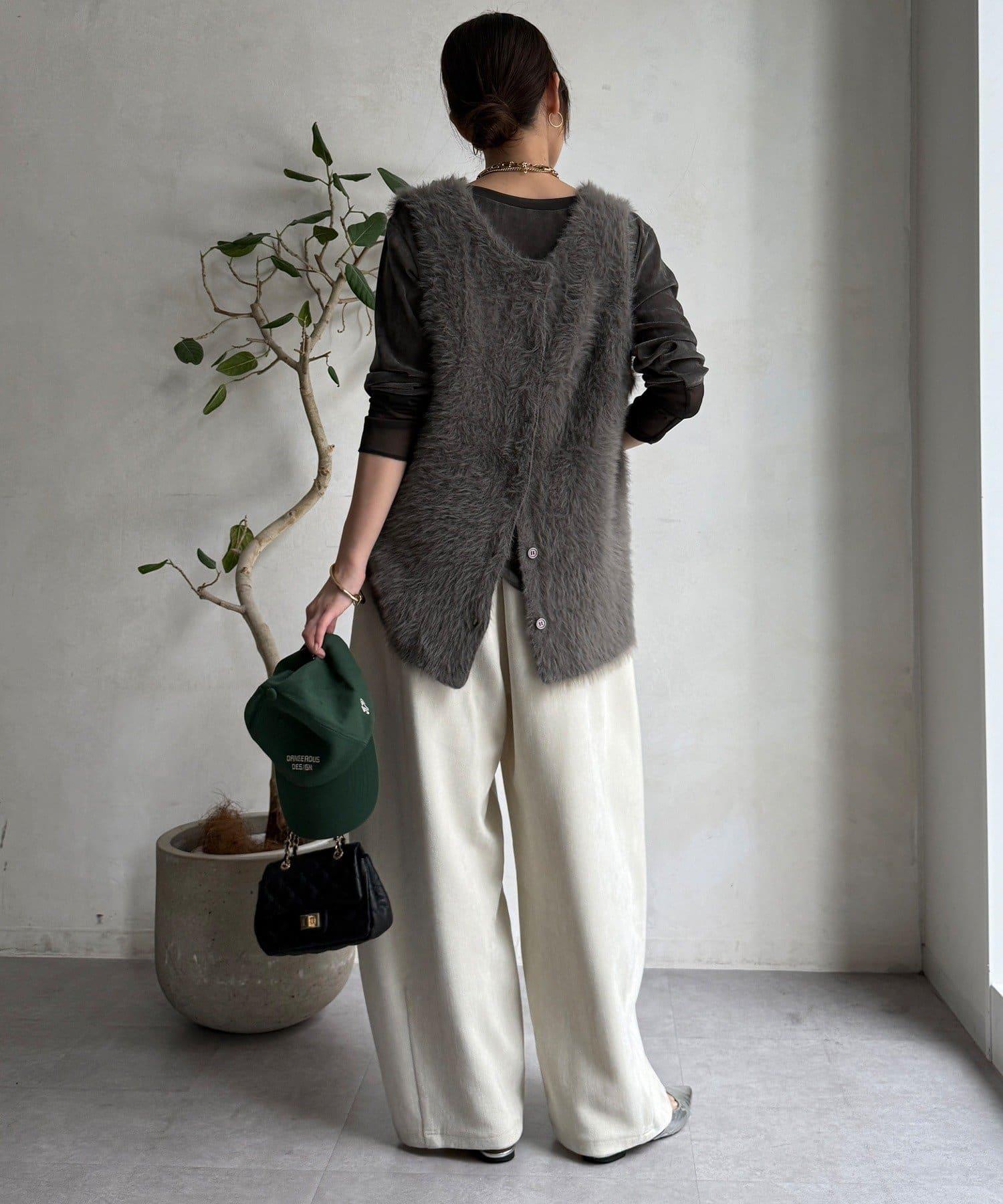 這款雙向馬甲採用毛茸茸的面料,兼具保暖性和時尚感。