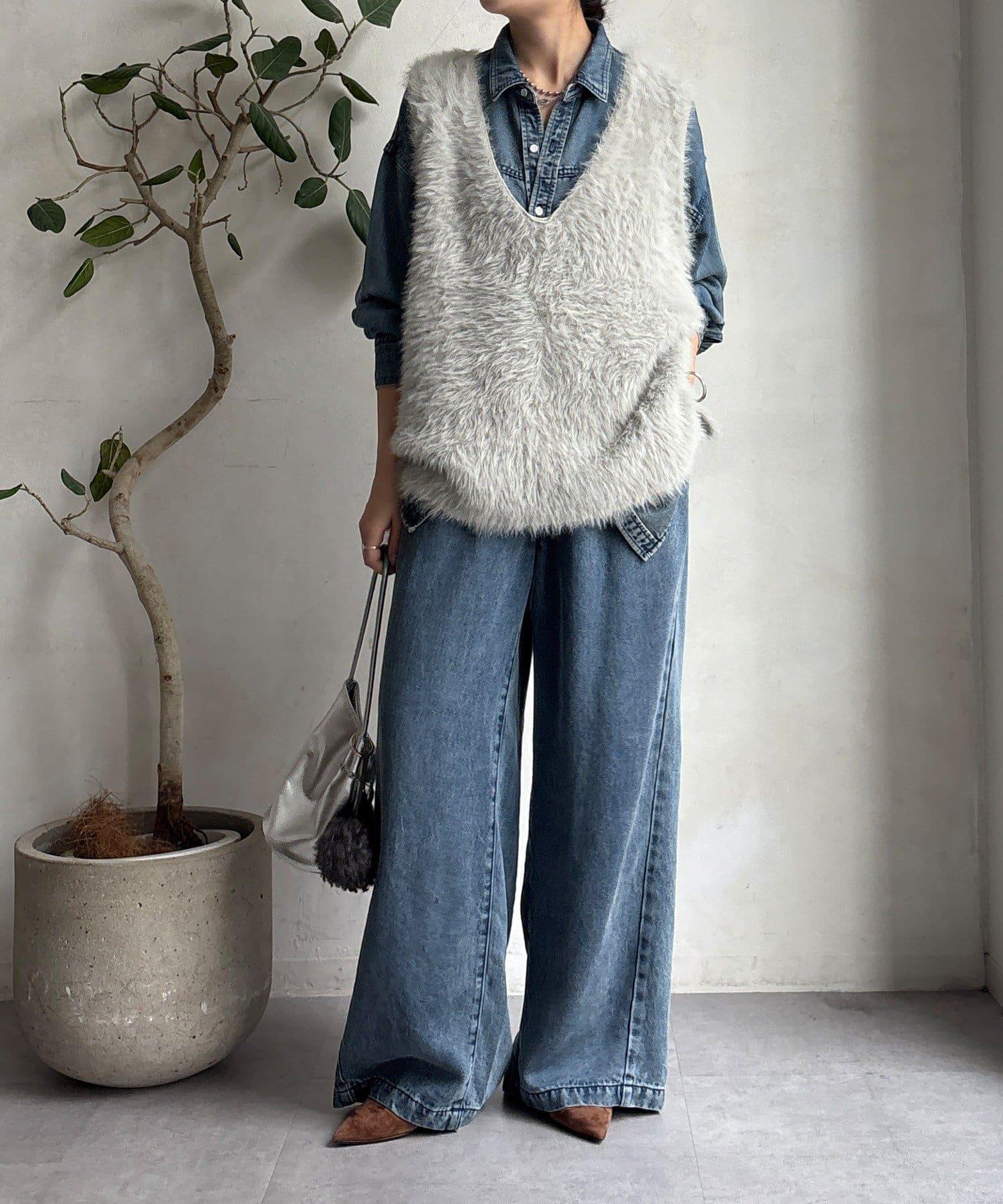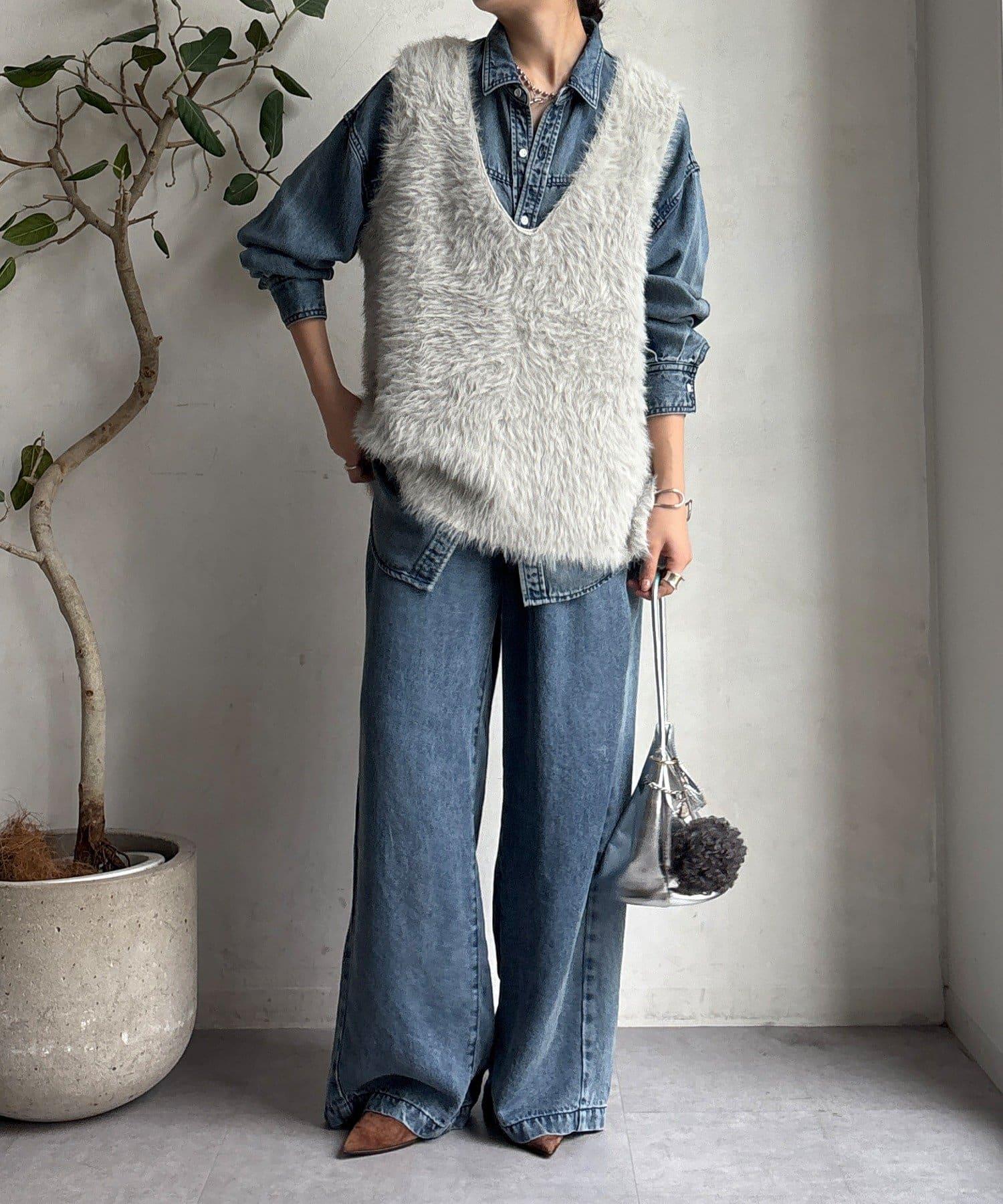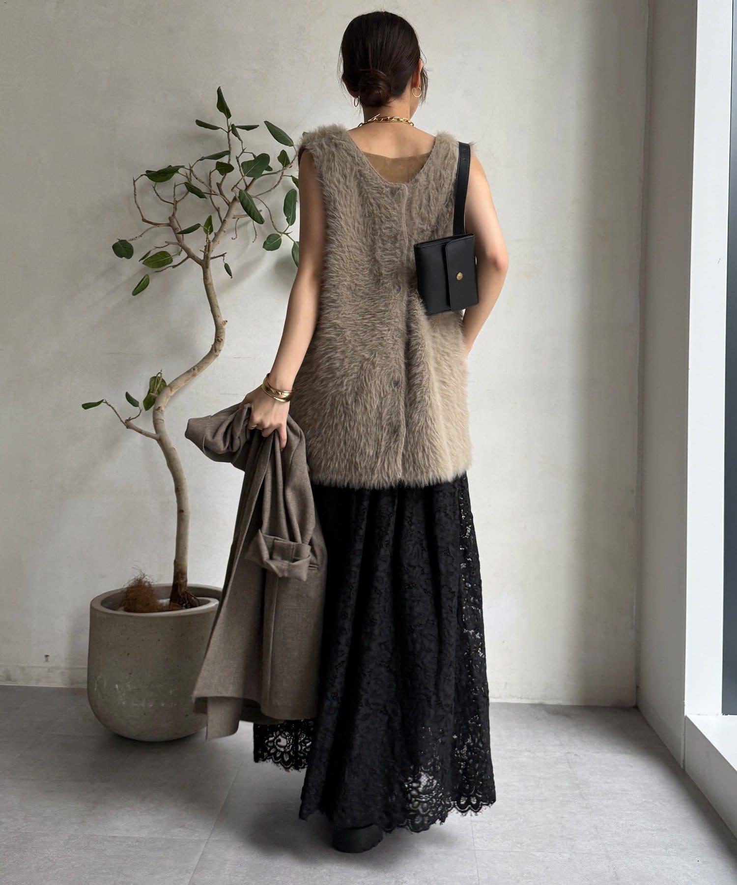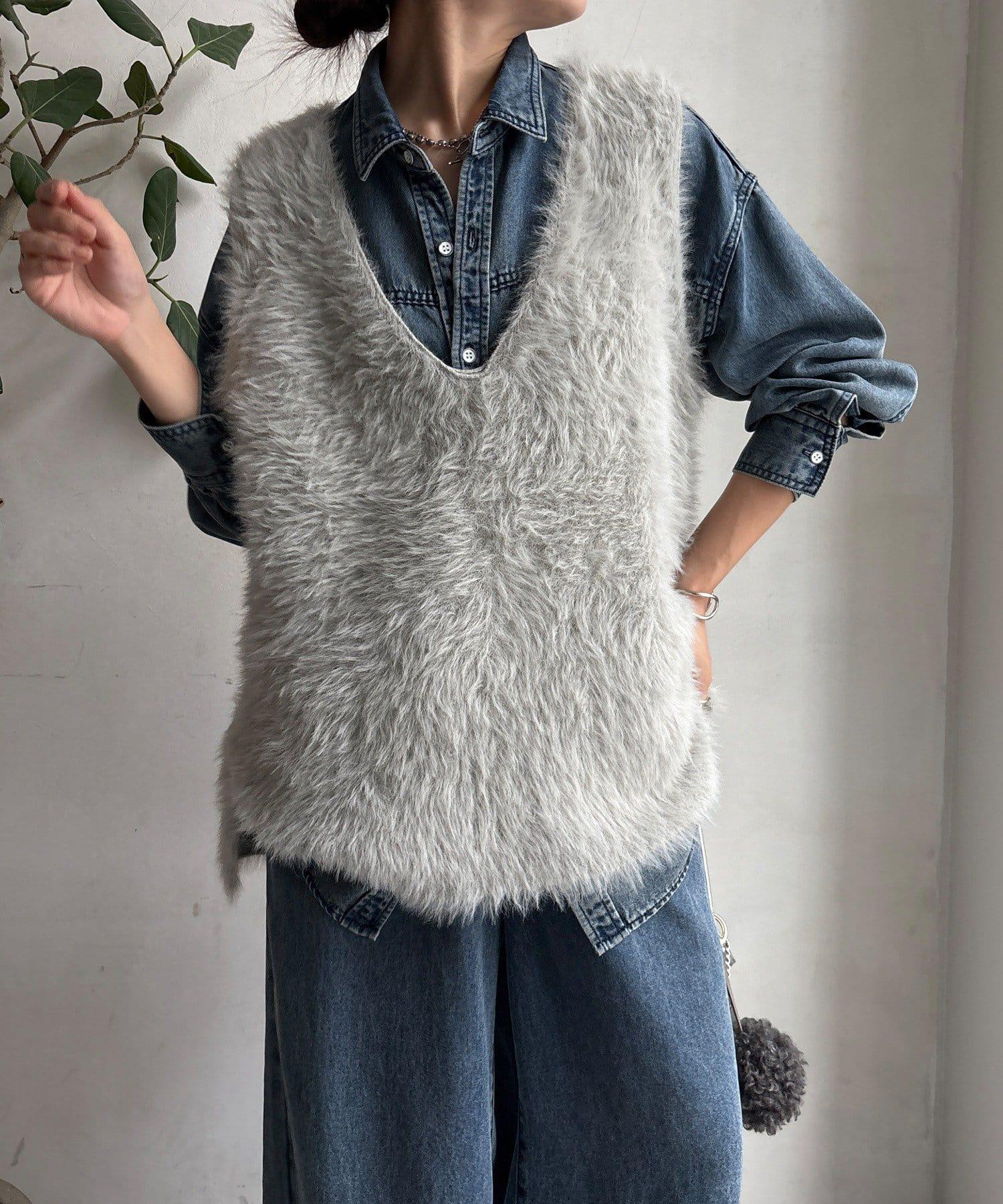 這款雙向馬甲採用毛茸茸的面料,兼具保暖性和時尚感。