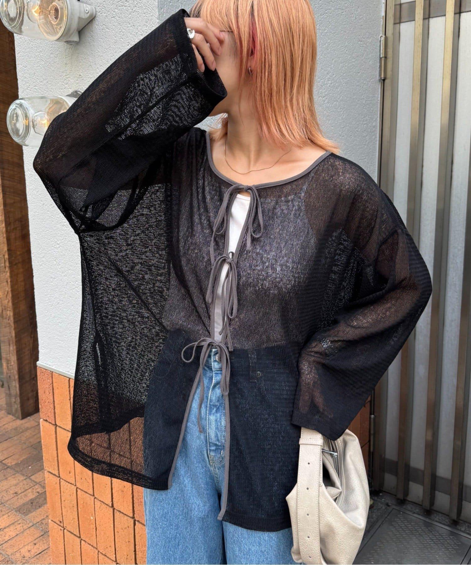 極佳的耐磨性 ◎時尚可愛!透明絲帶開衫