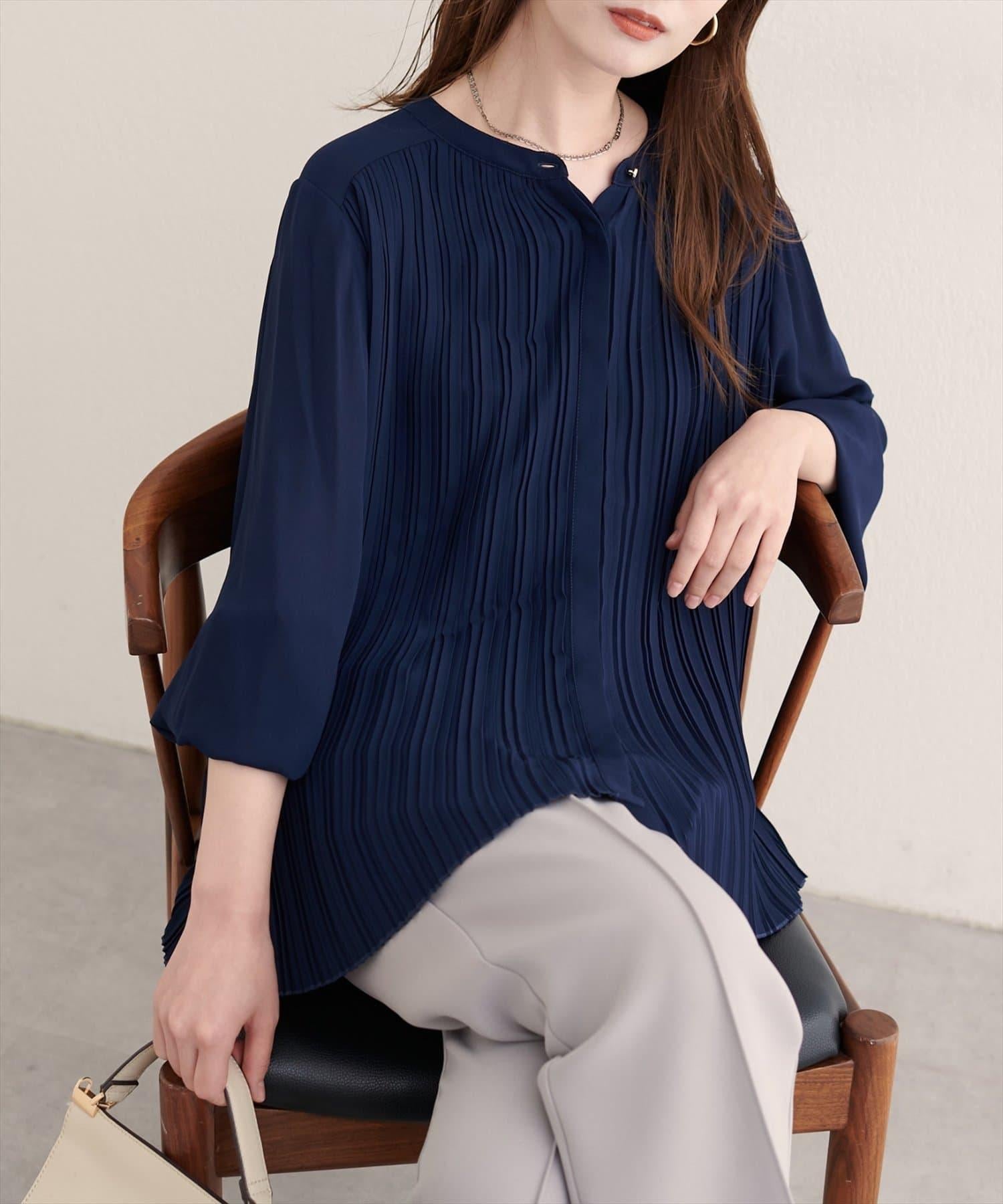 這款上衣精緻的褶皺給人一種優雅的印象。這種設計讓您可以前後雙向穿著,搭配出更多服飾。