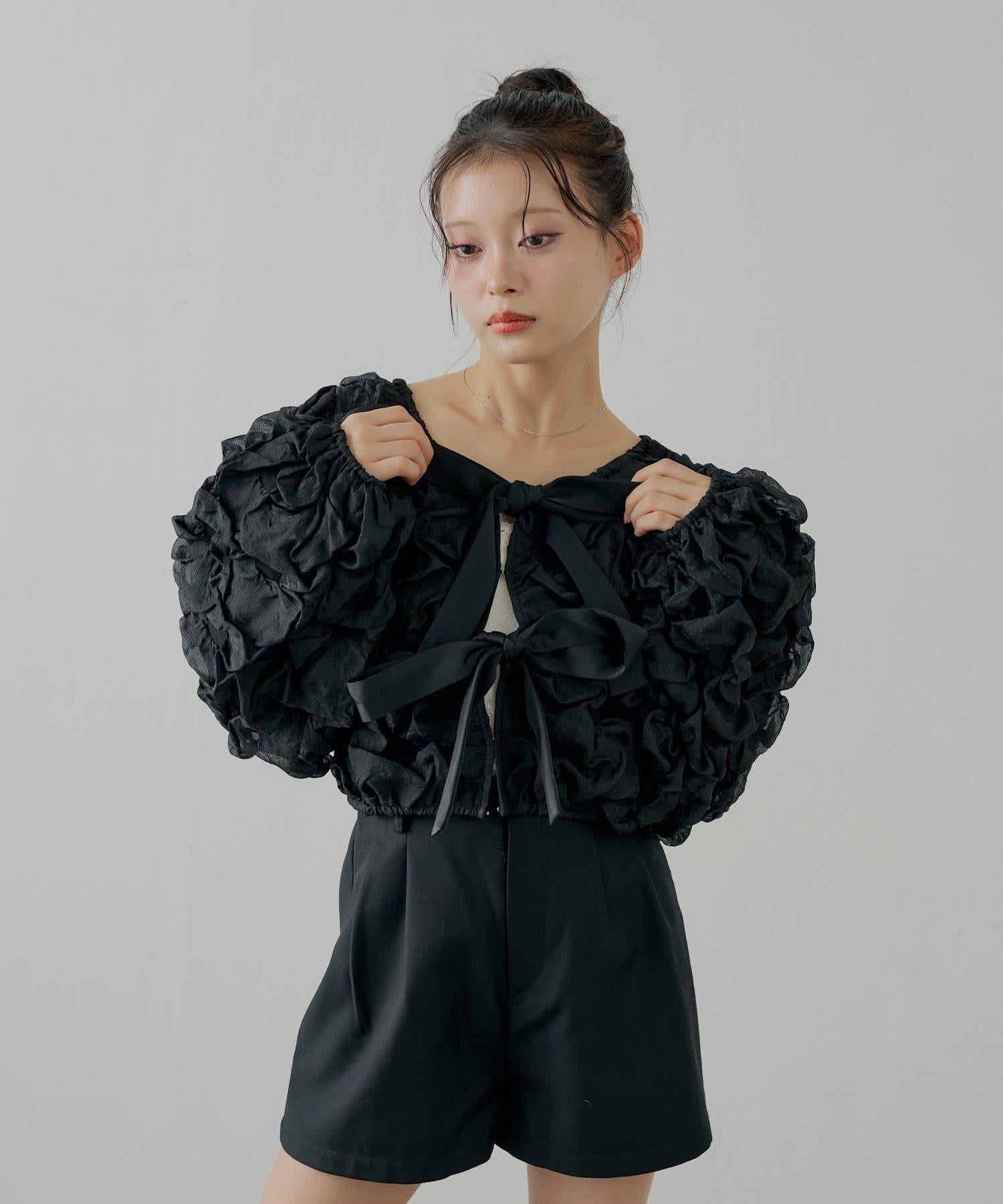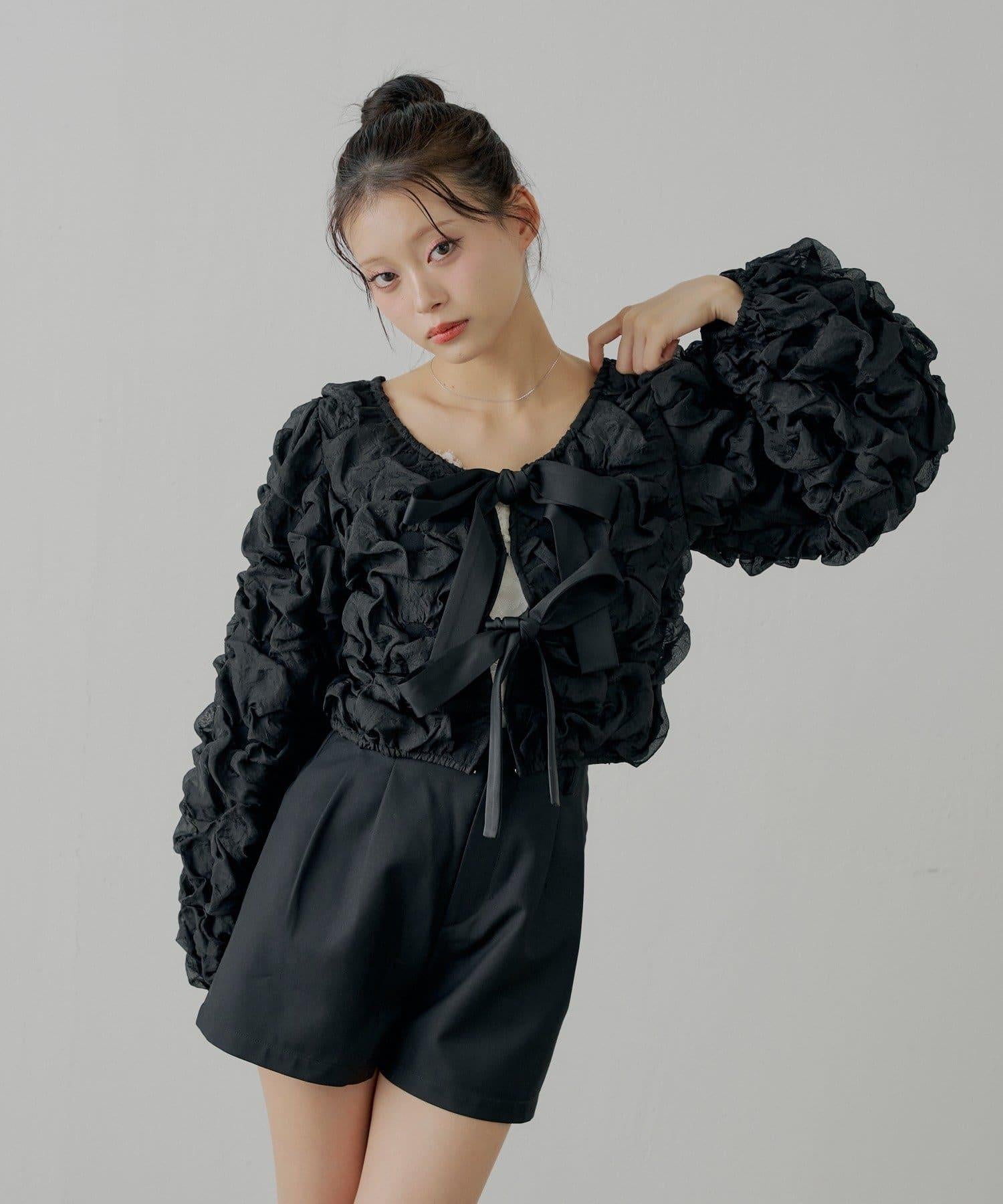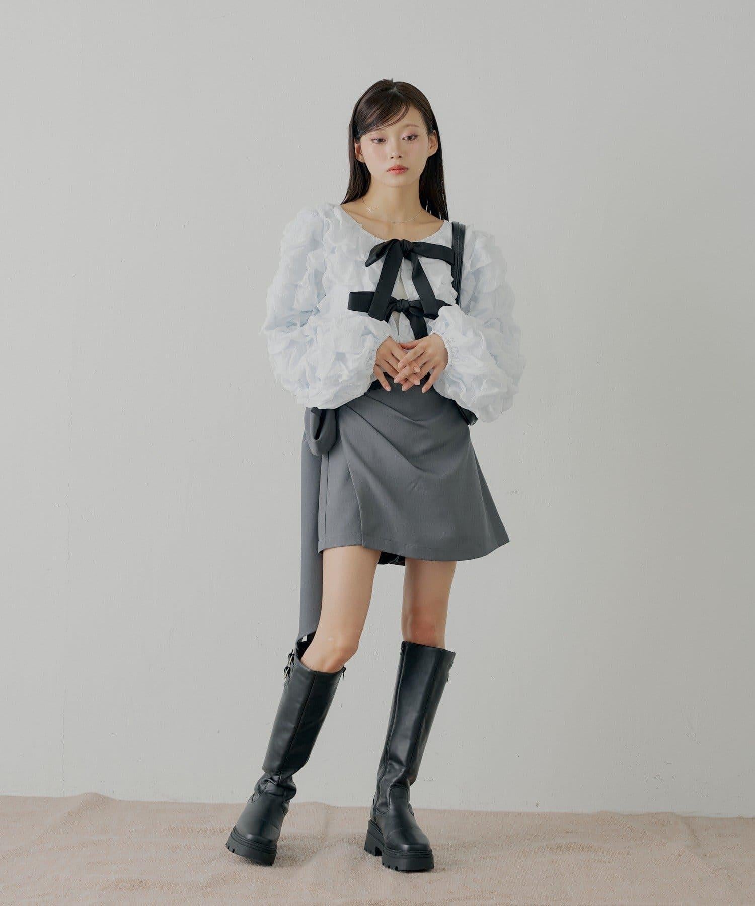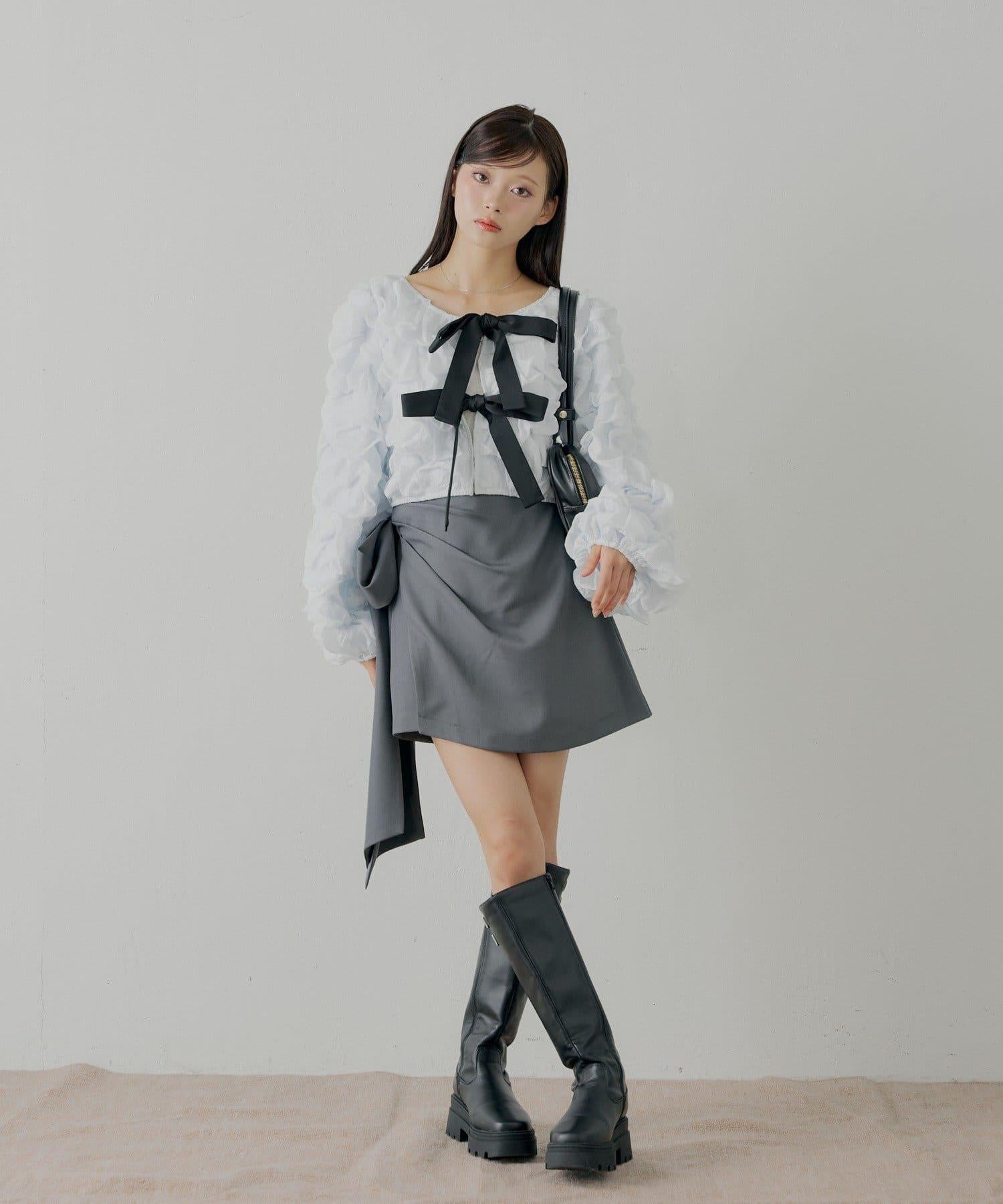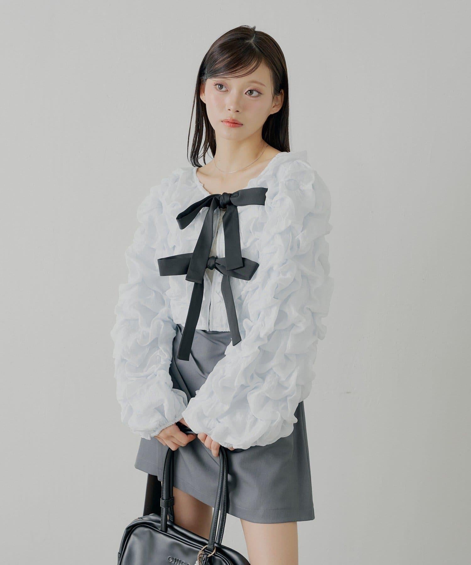 前後兩穿立體蝴蝶結泡泡紋理襯衫