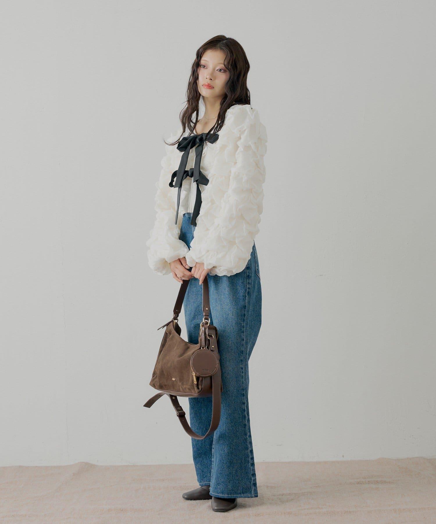 前面的絲帶具有很強的存在感,可作為造型的點睛之筆。