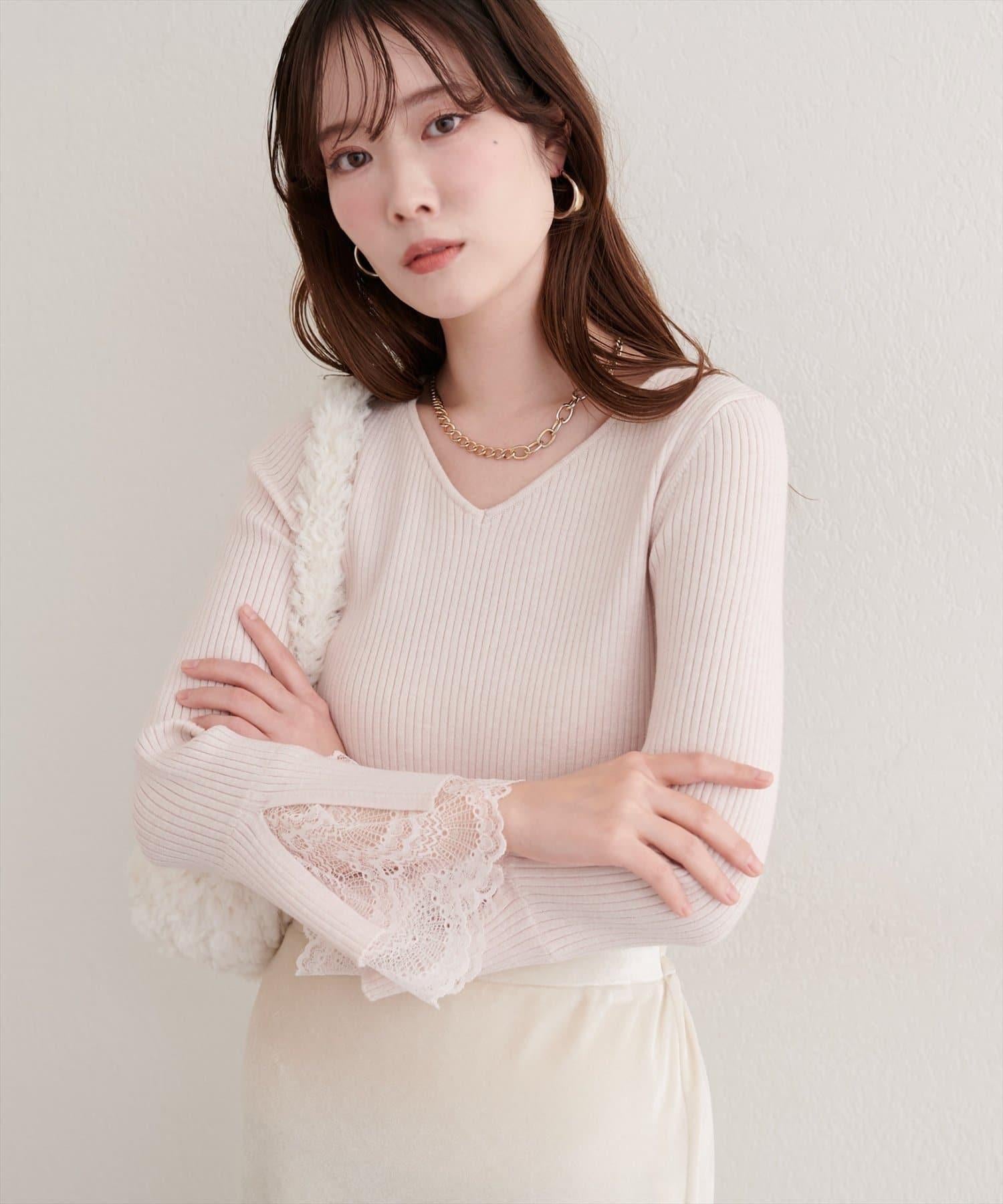 針織袖口有一個大鏤空,裡面的蕾絲花邊增添了一絲甜美。