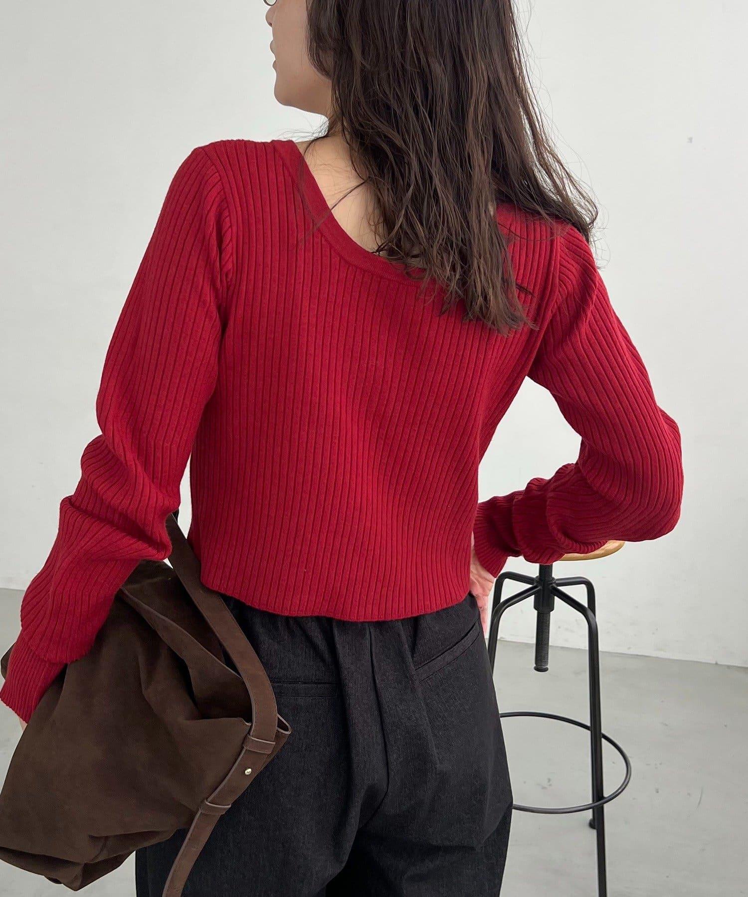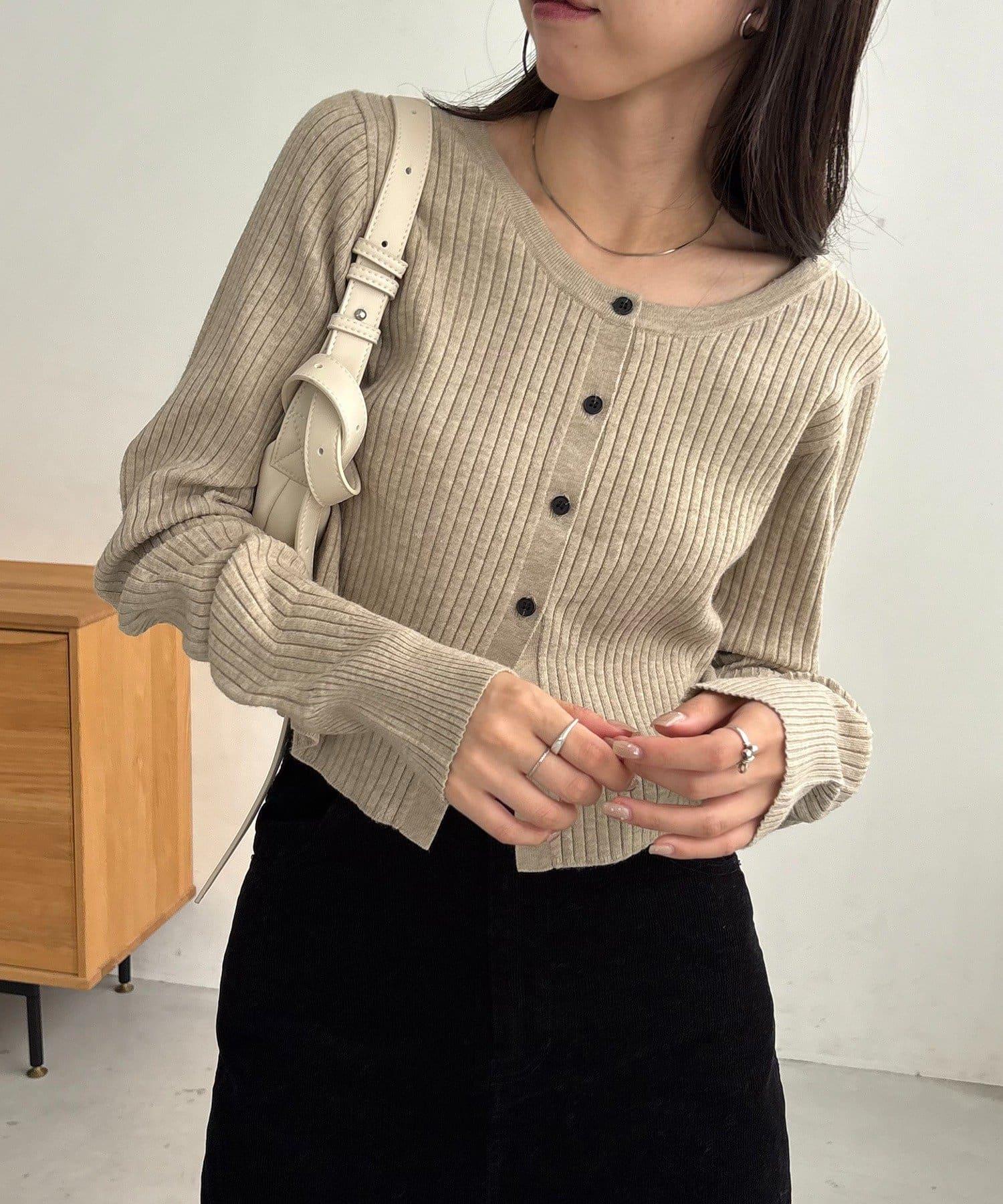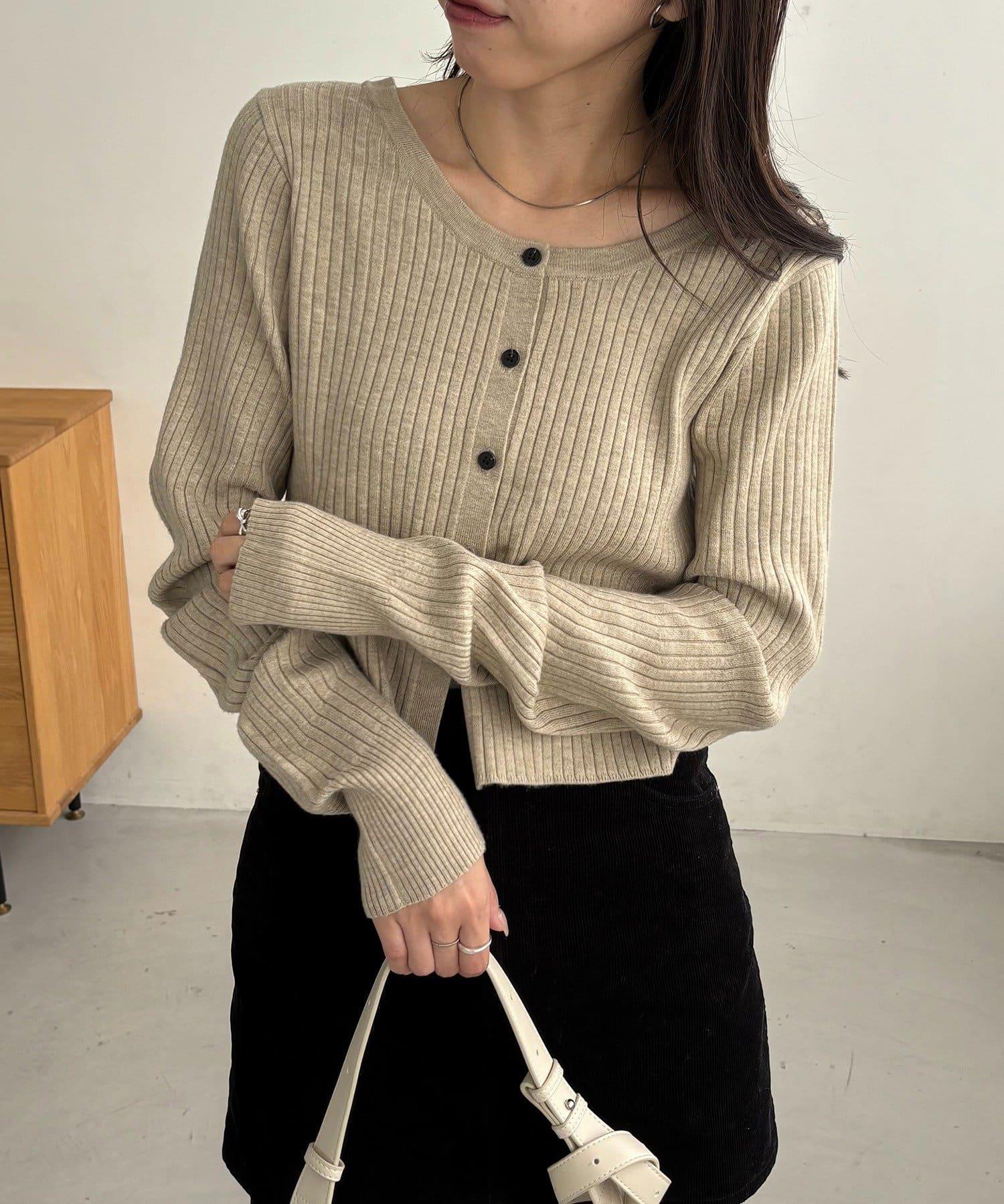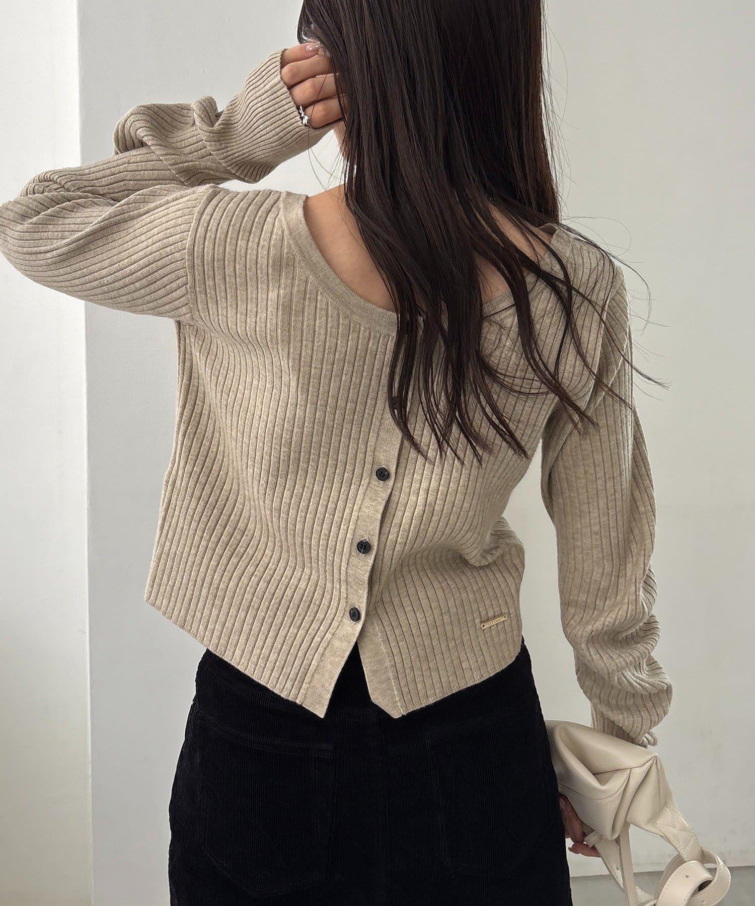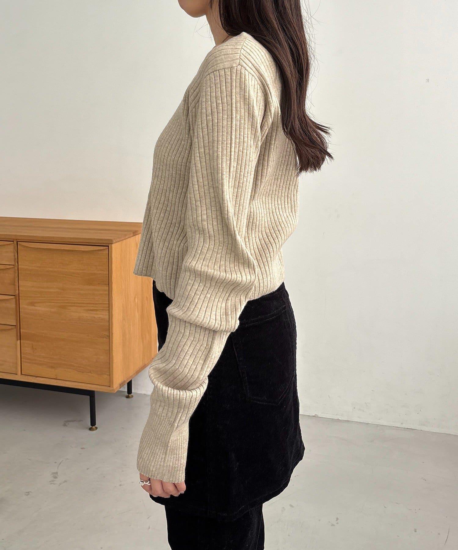 【前後兩穿】弧形袖口羅紋針織衫
