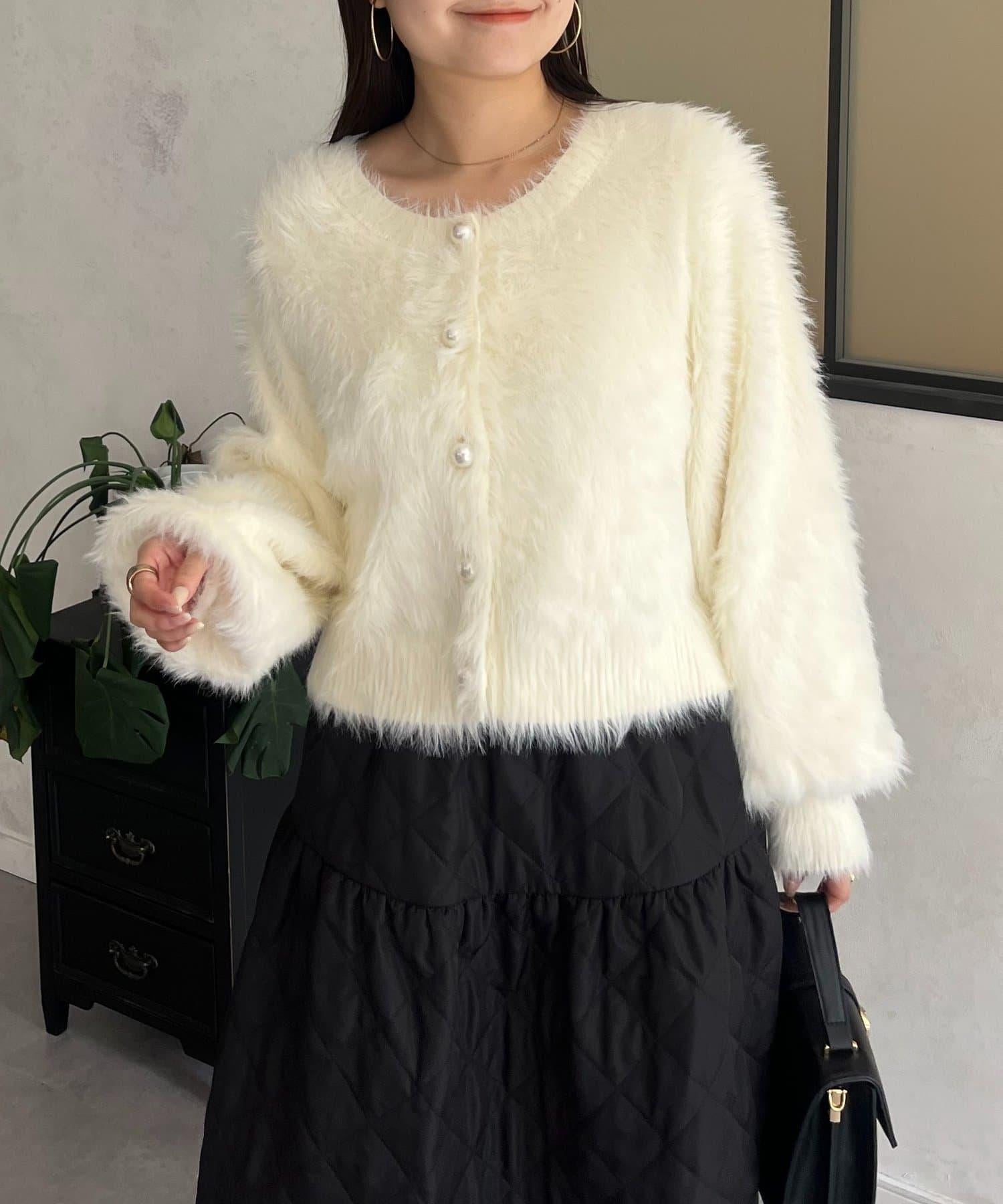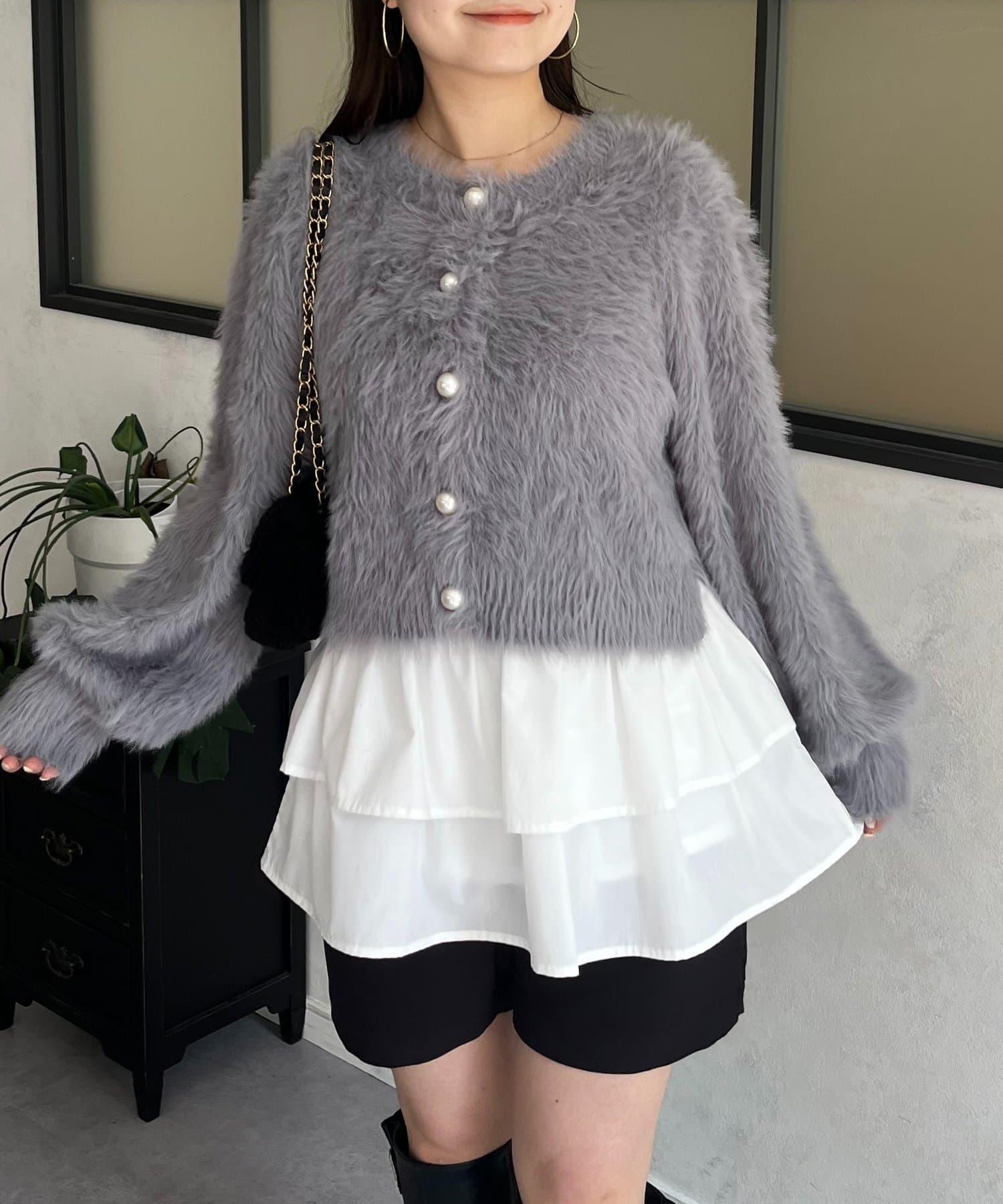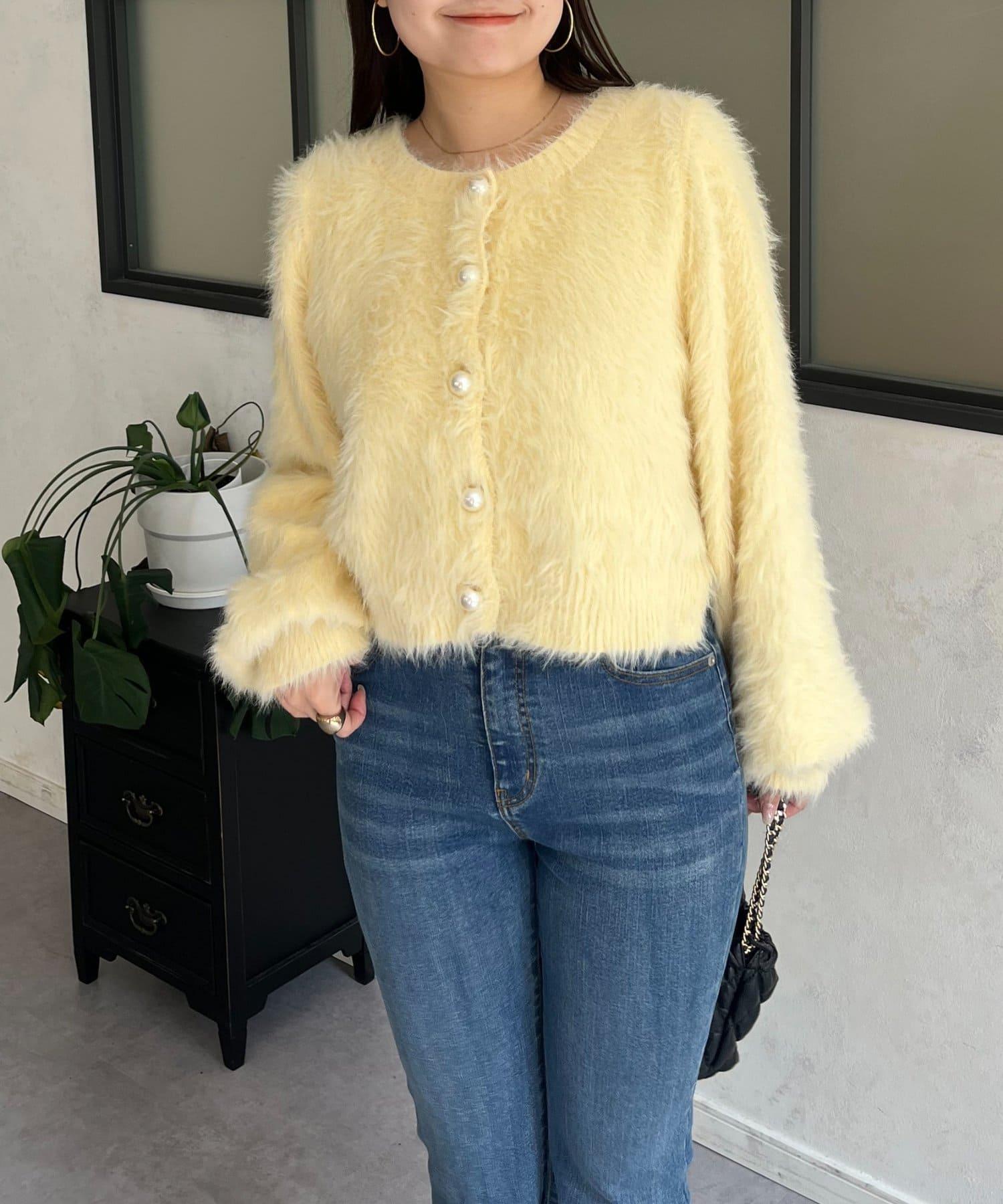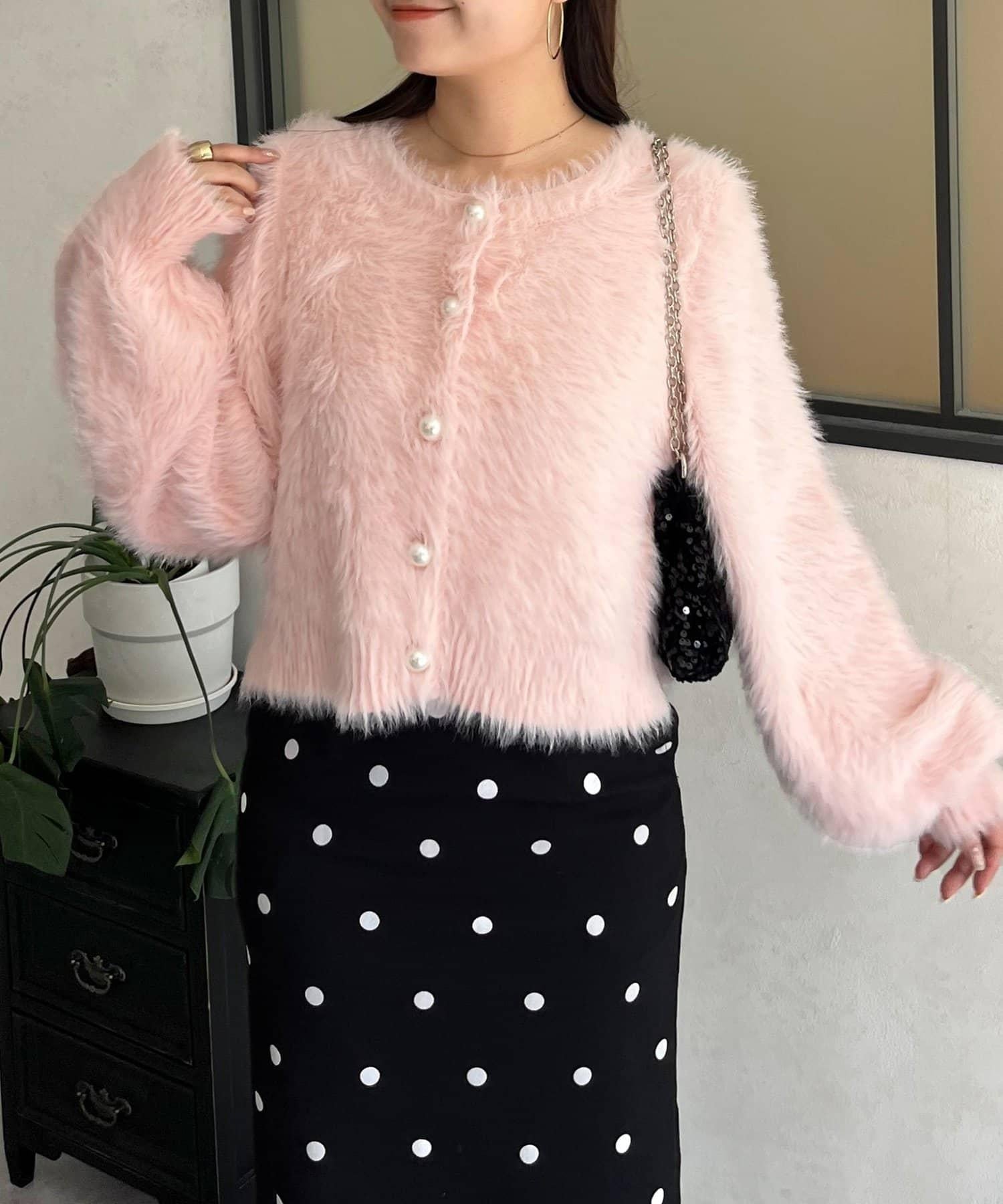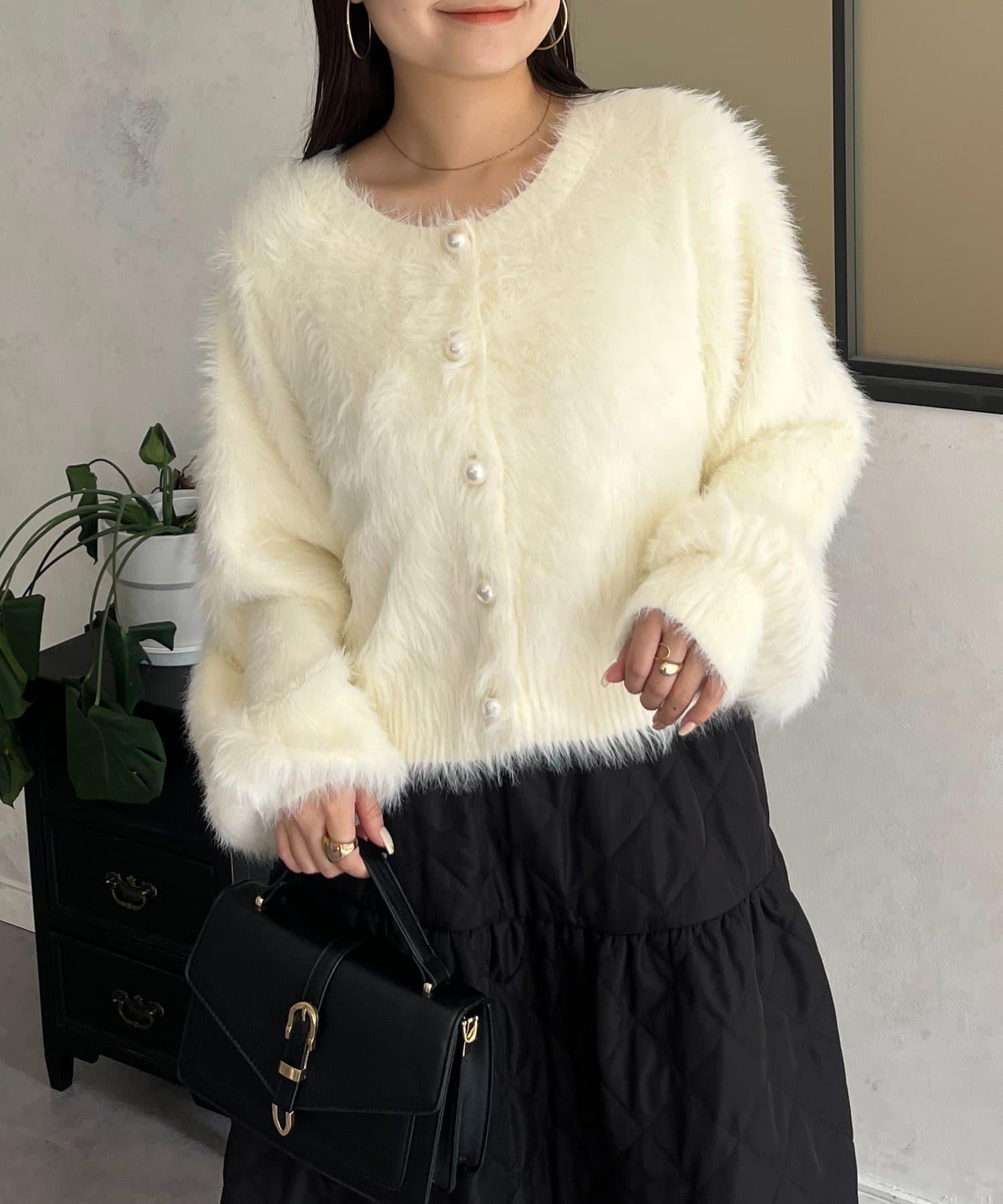 長毛 / 長毛針織 / 開衫 / 2WAY / 珍珠鈕釦