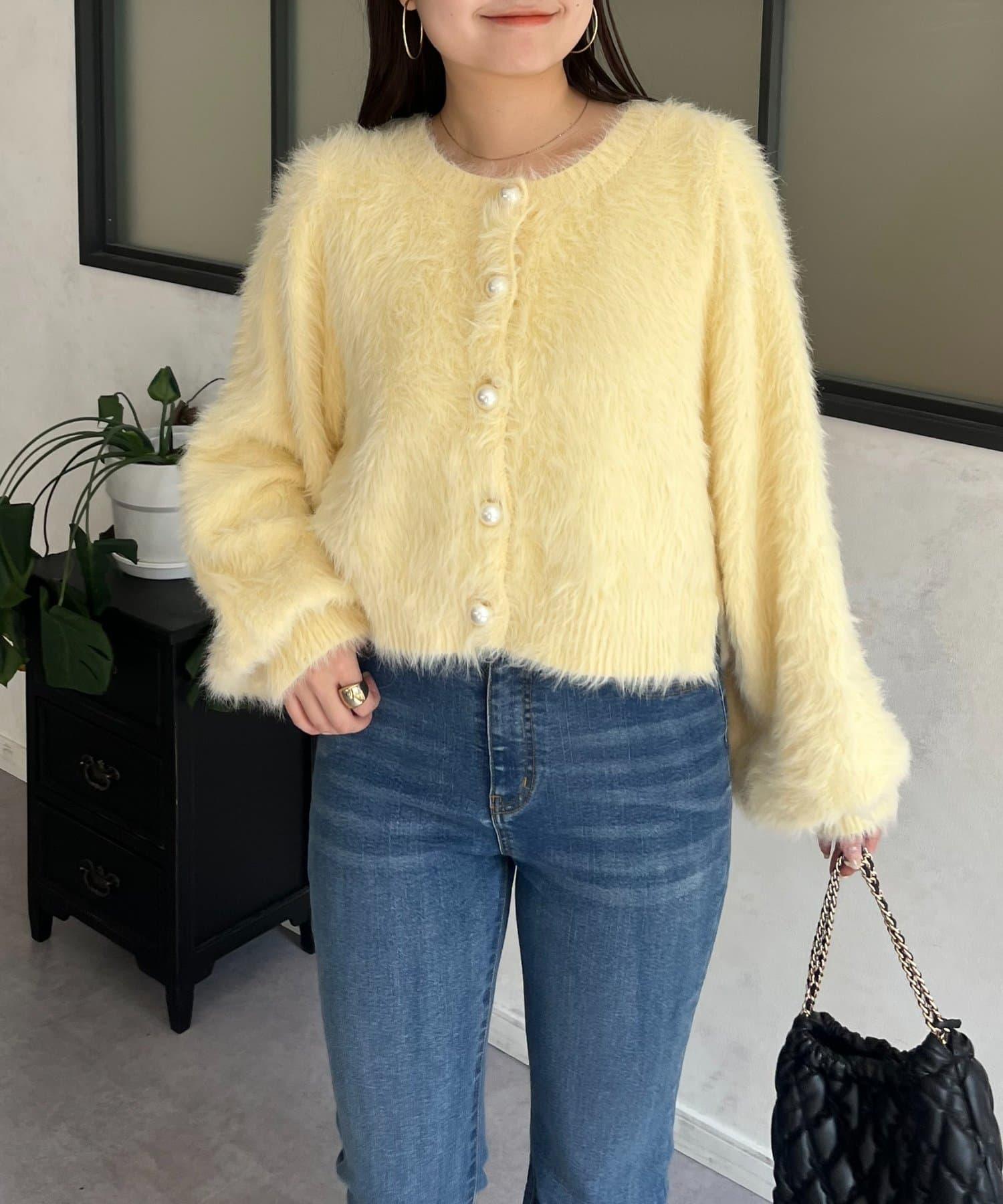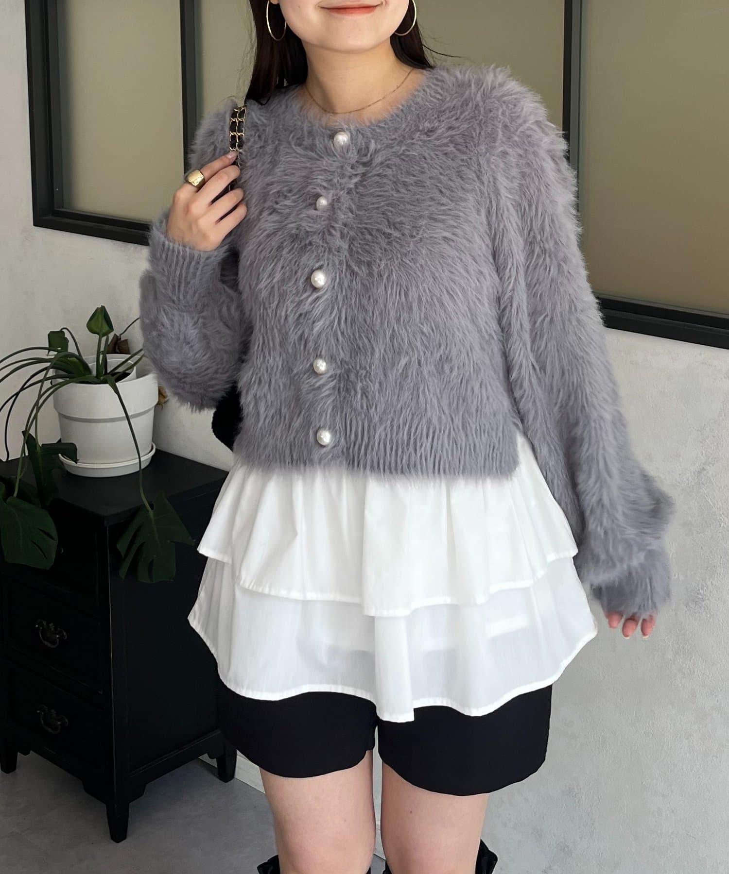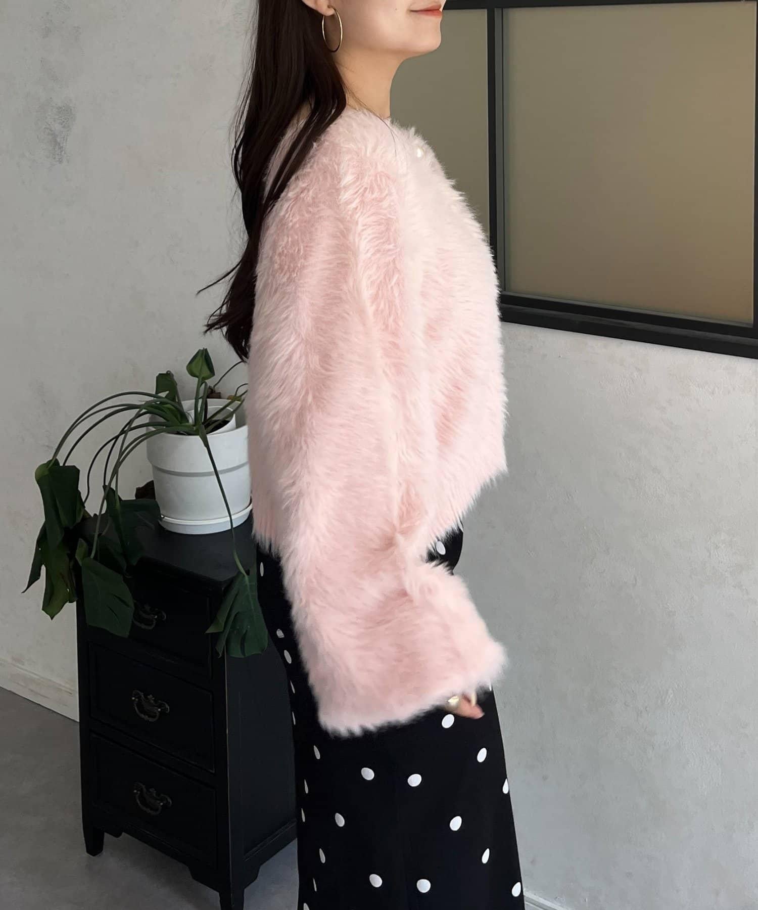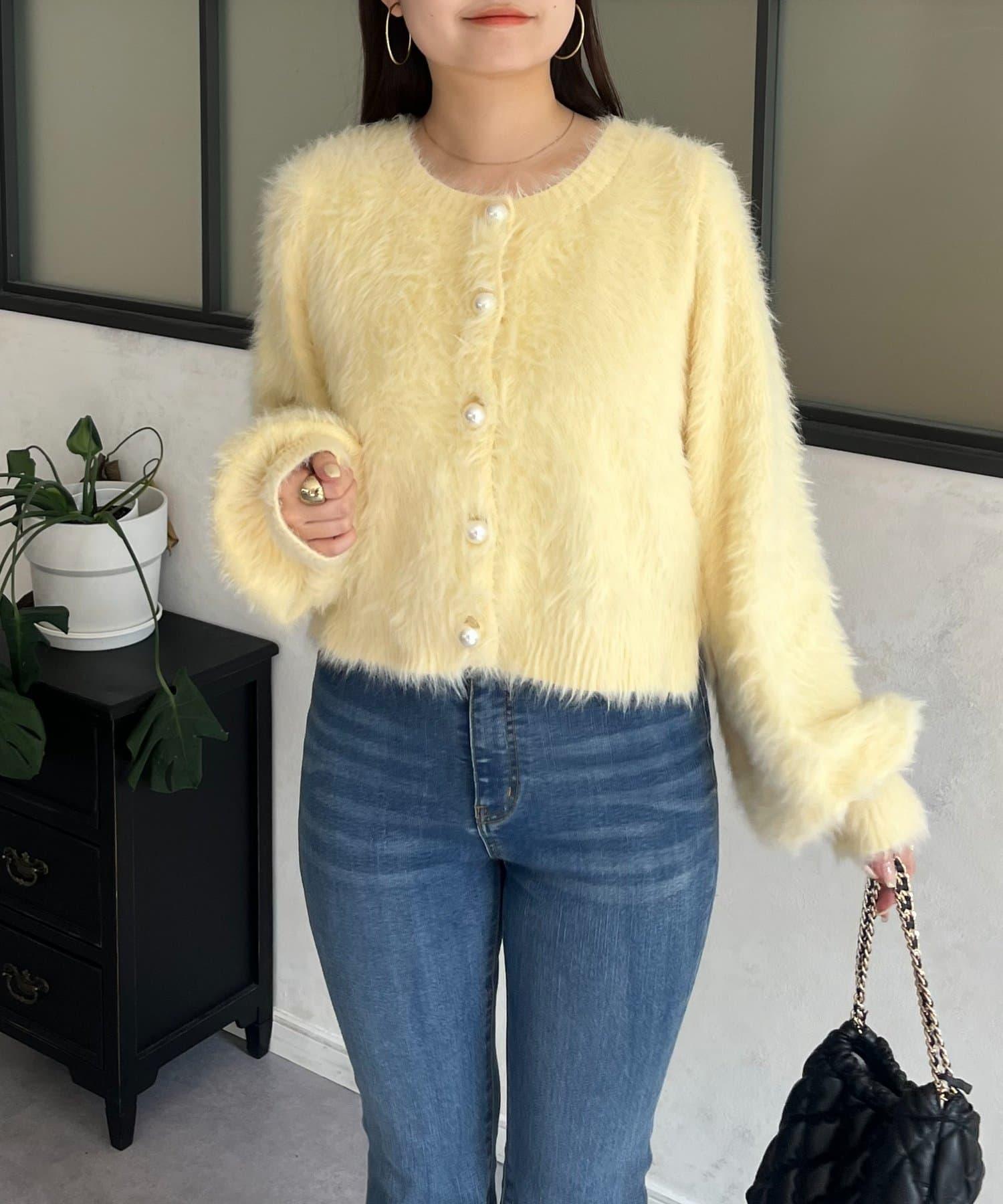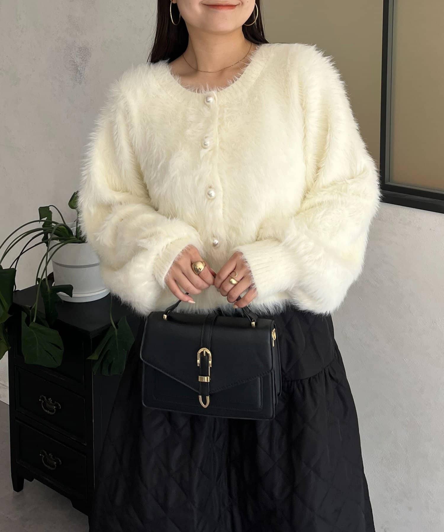 長毛 / 長毛針織 / 開衫 / 2WAY / 珍珠鈕釦