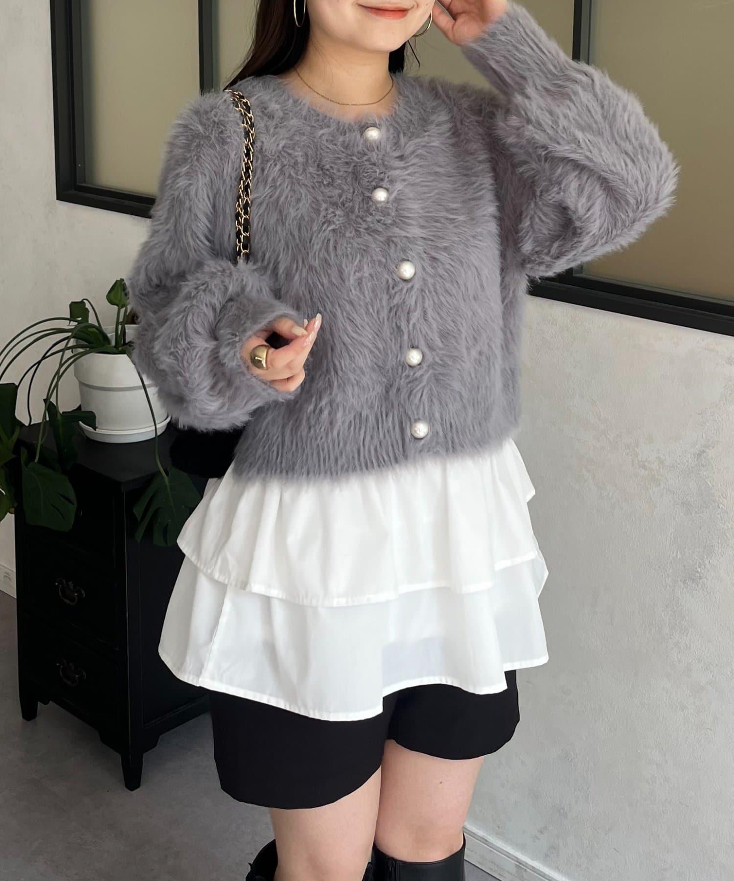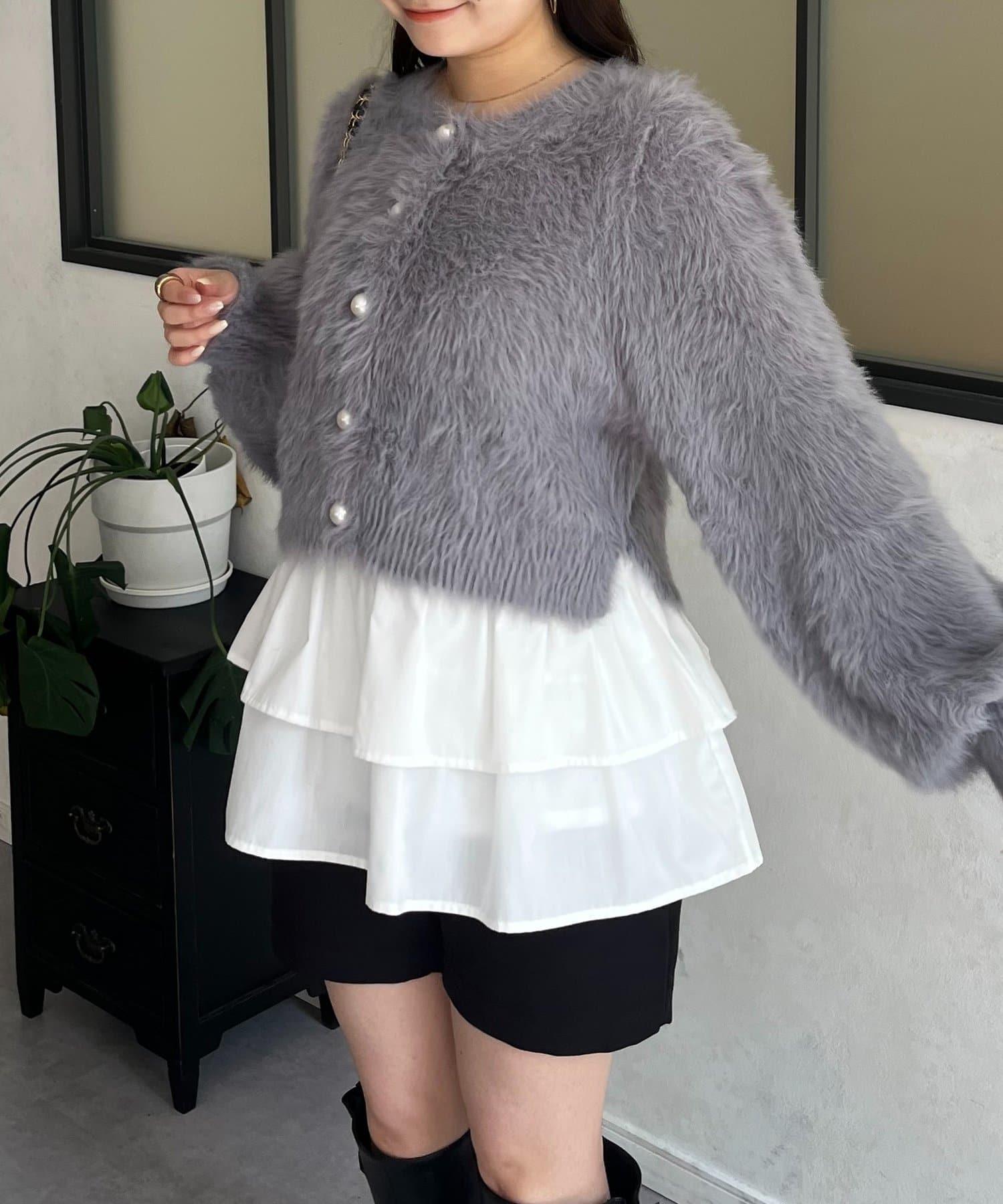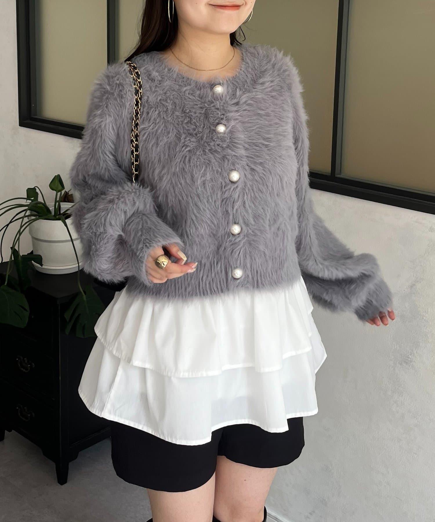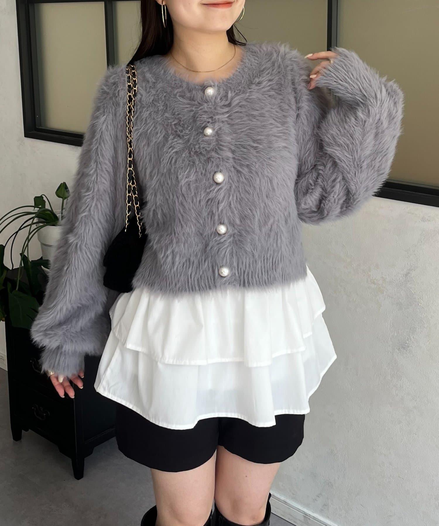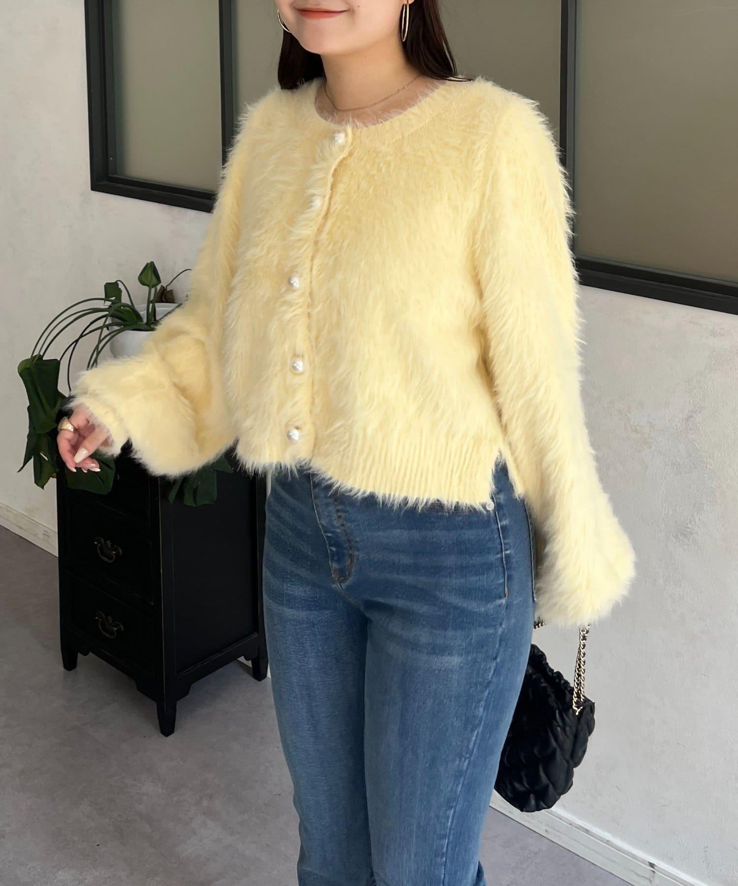 長毛 / 長毛針織 / 開衫 / 2WAY / 珍珠鈕釦