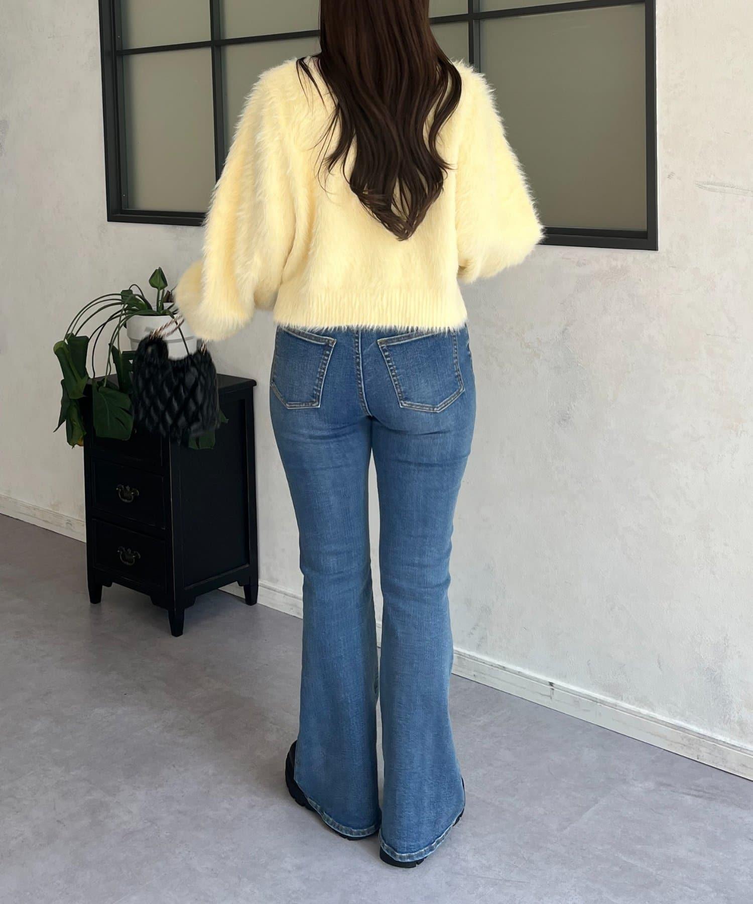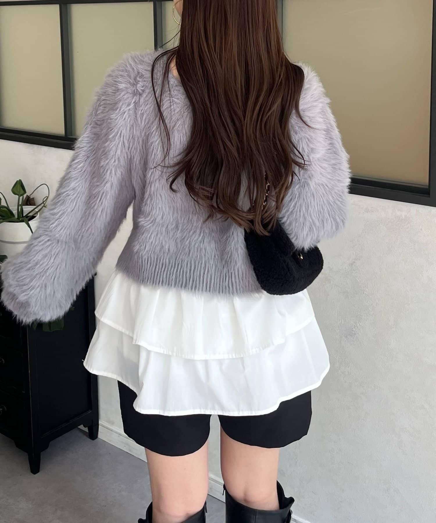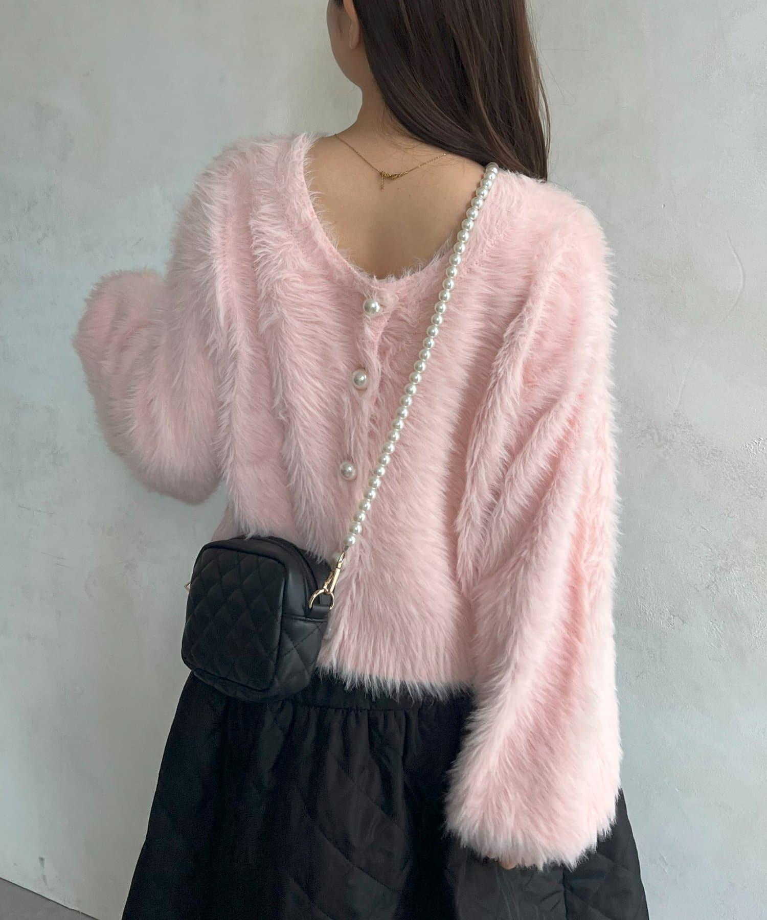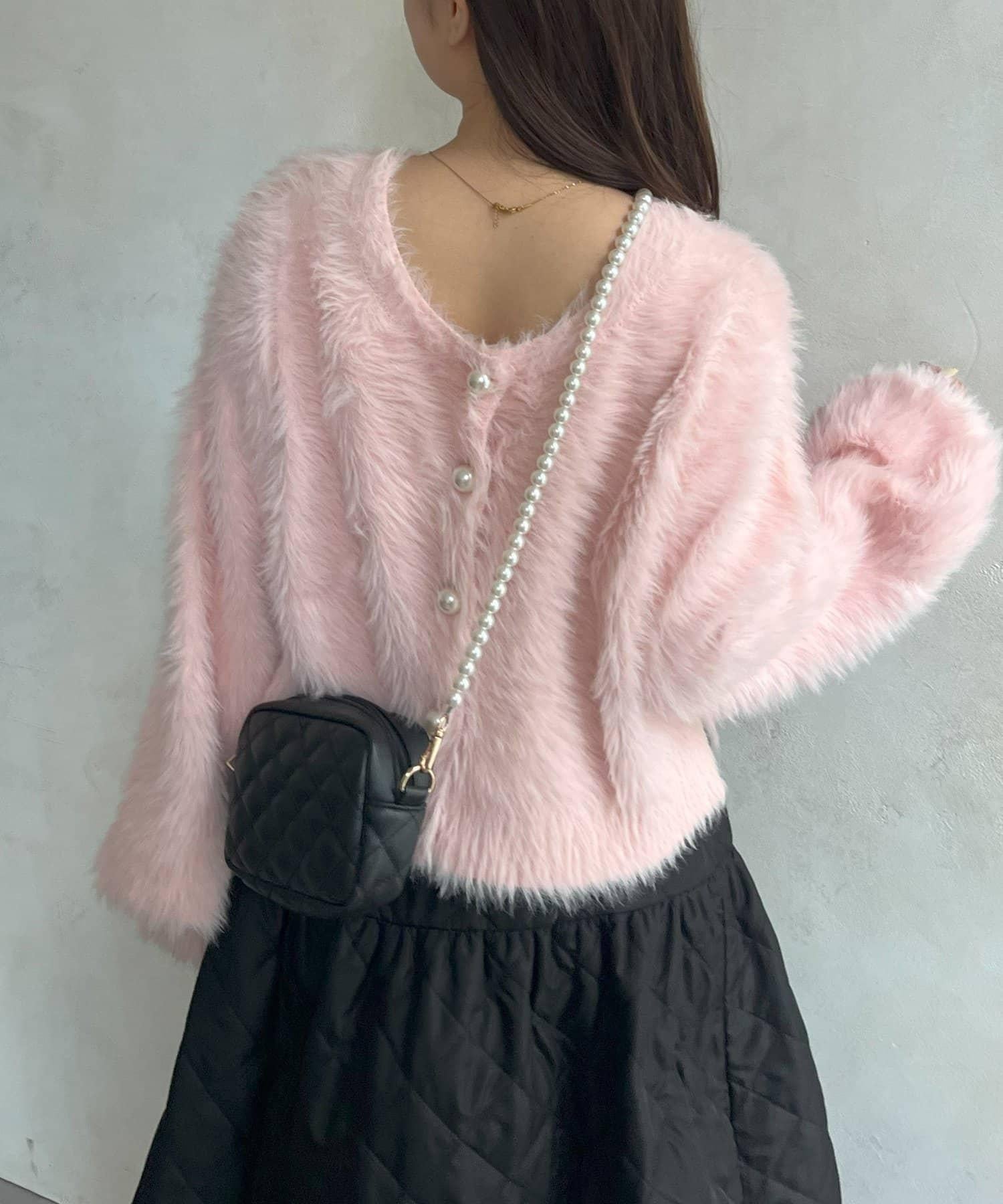 【前後兩穿】珍珠紐扣長毛針織開衫