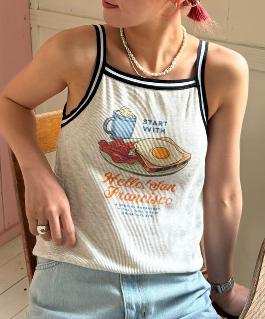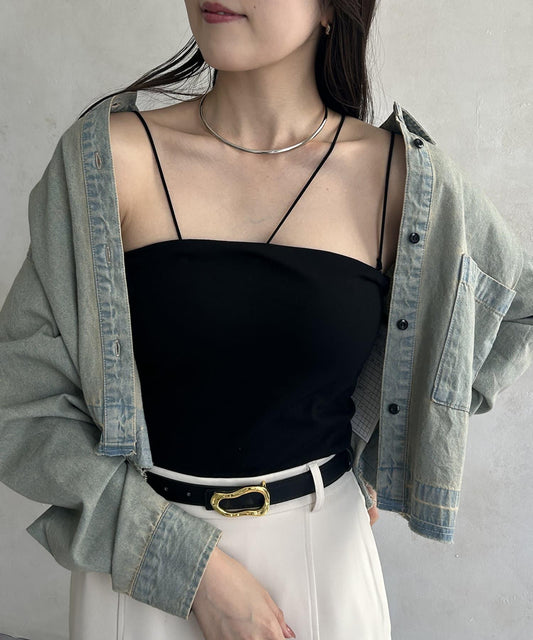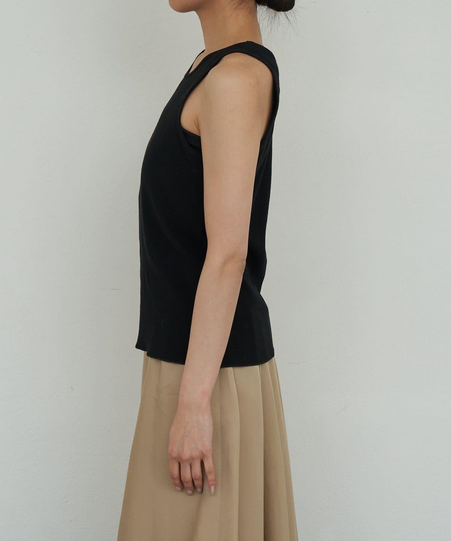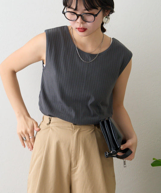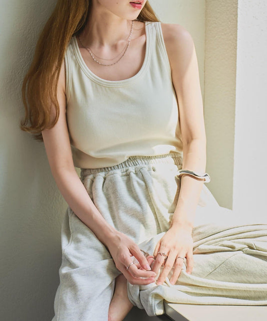 這款羅紋背心採用高捻度面料,手感乾爽利落。
