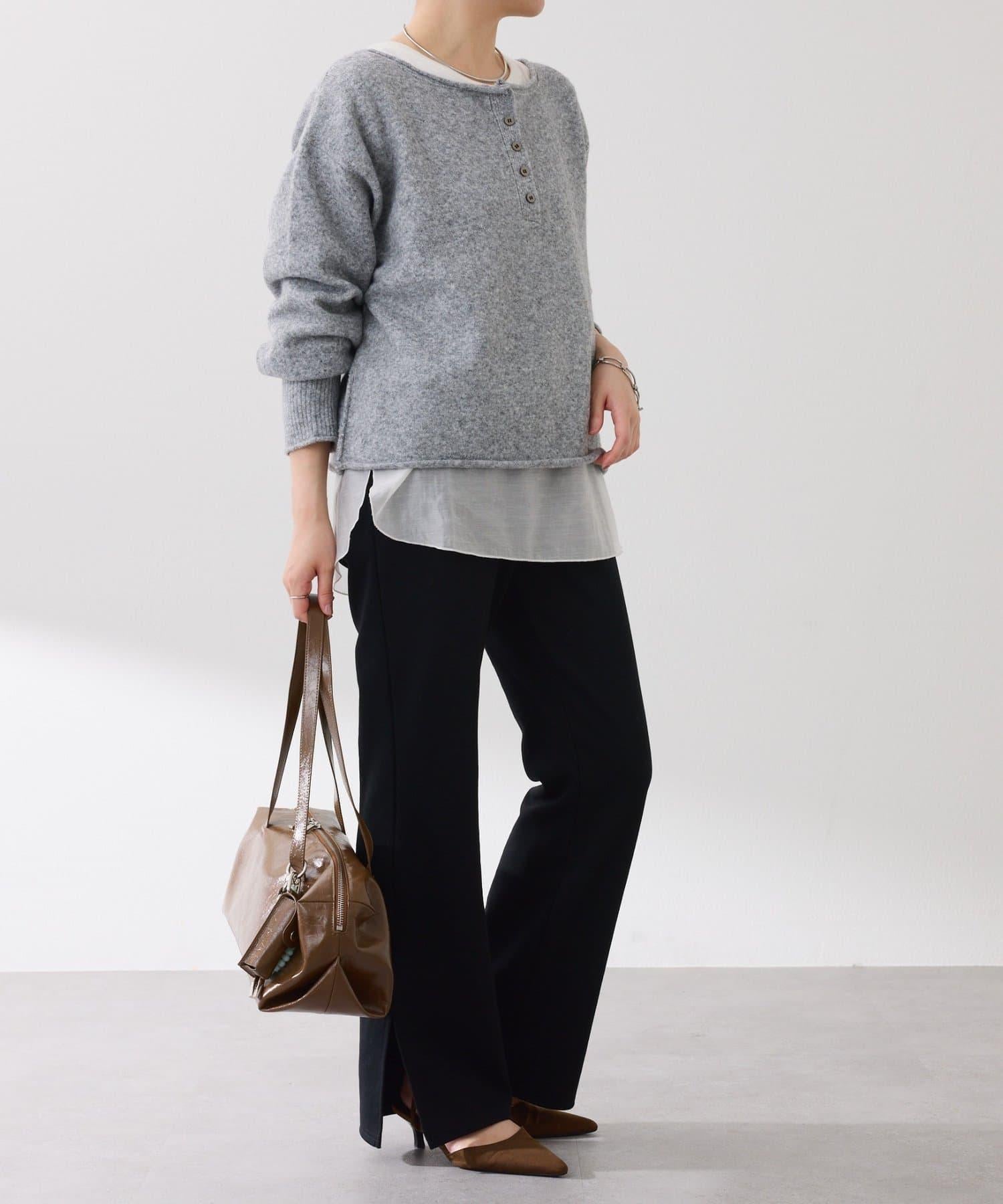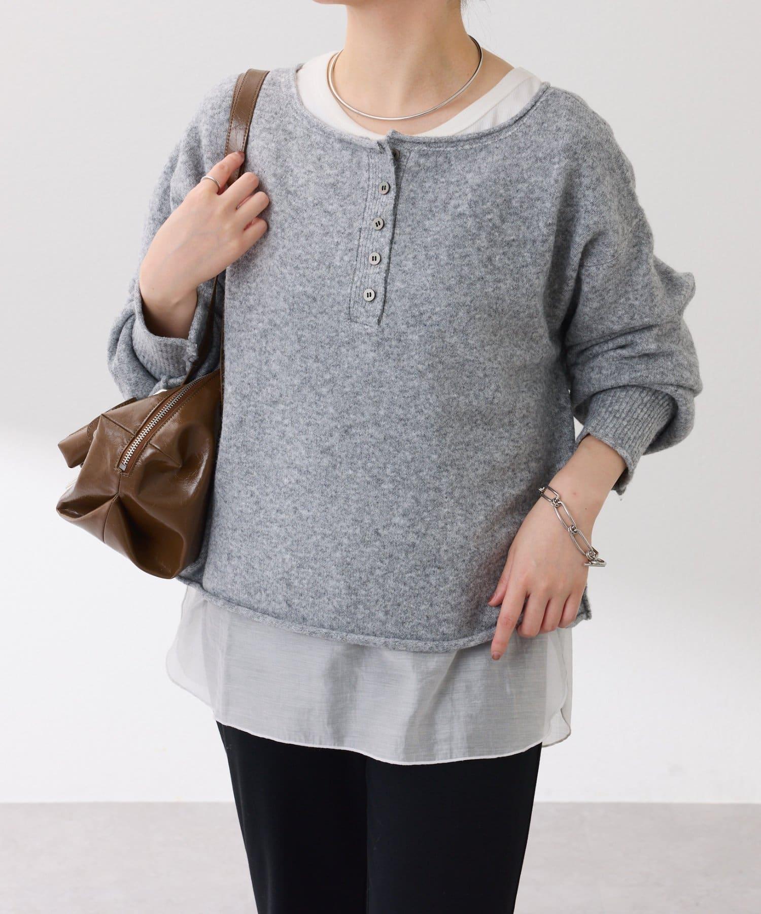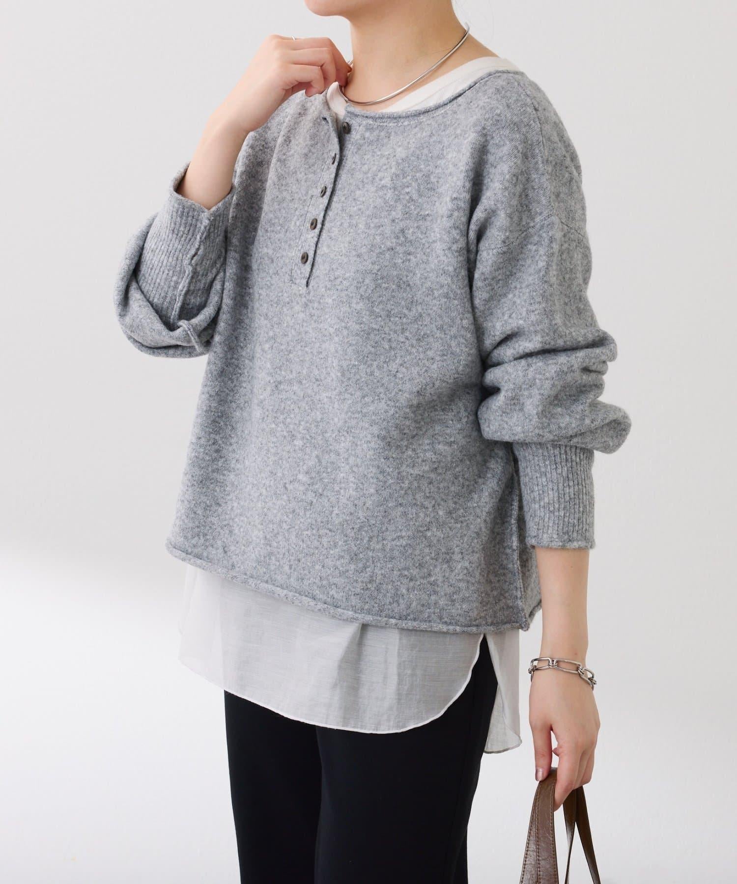 【前後兩穿】2WAY圓弧下襬亨利領針織衫