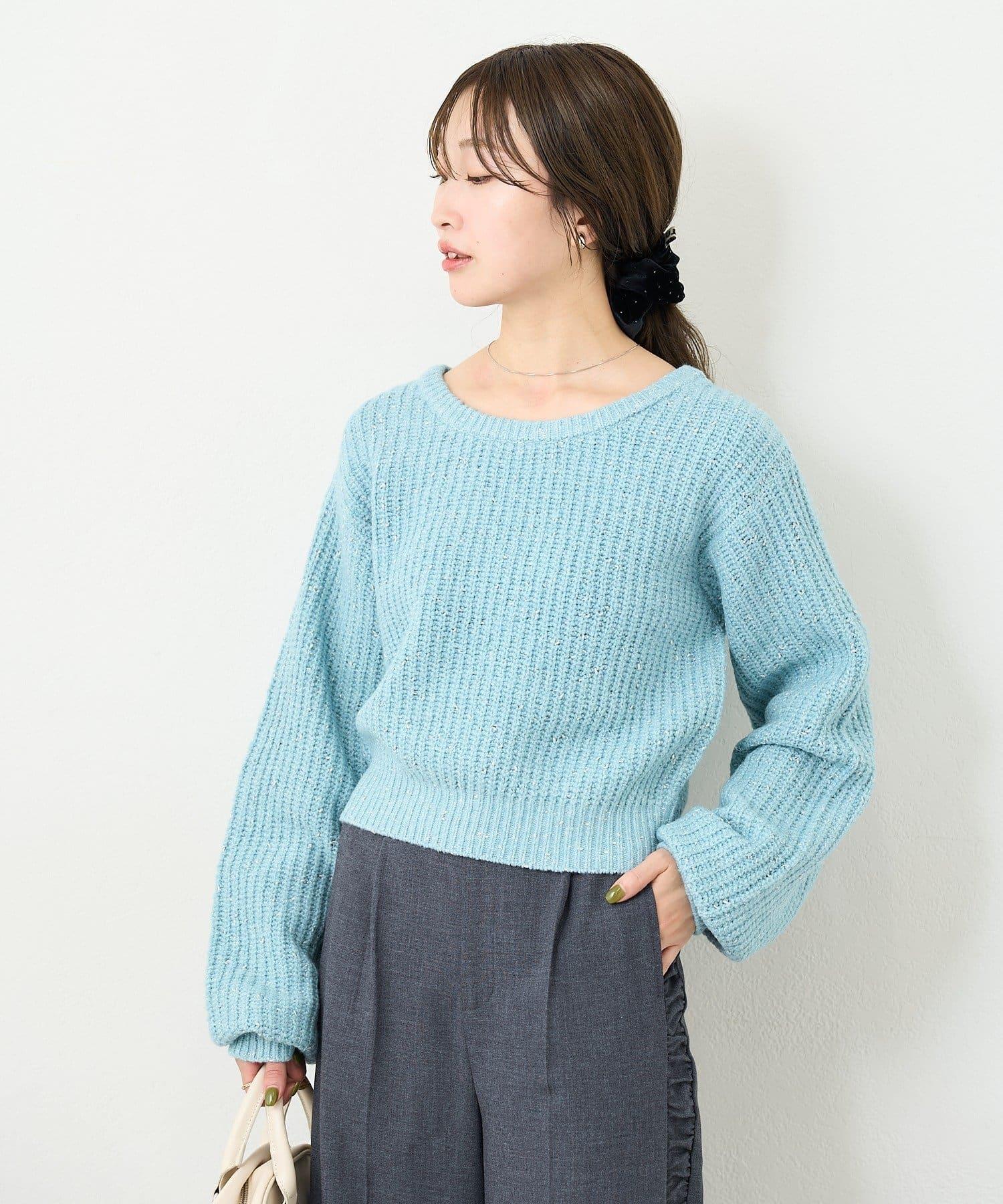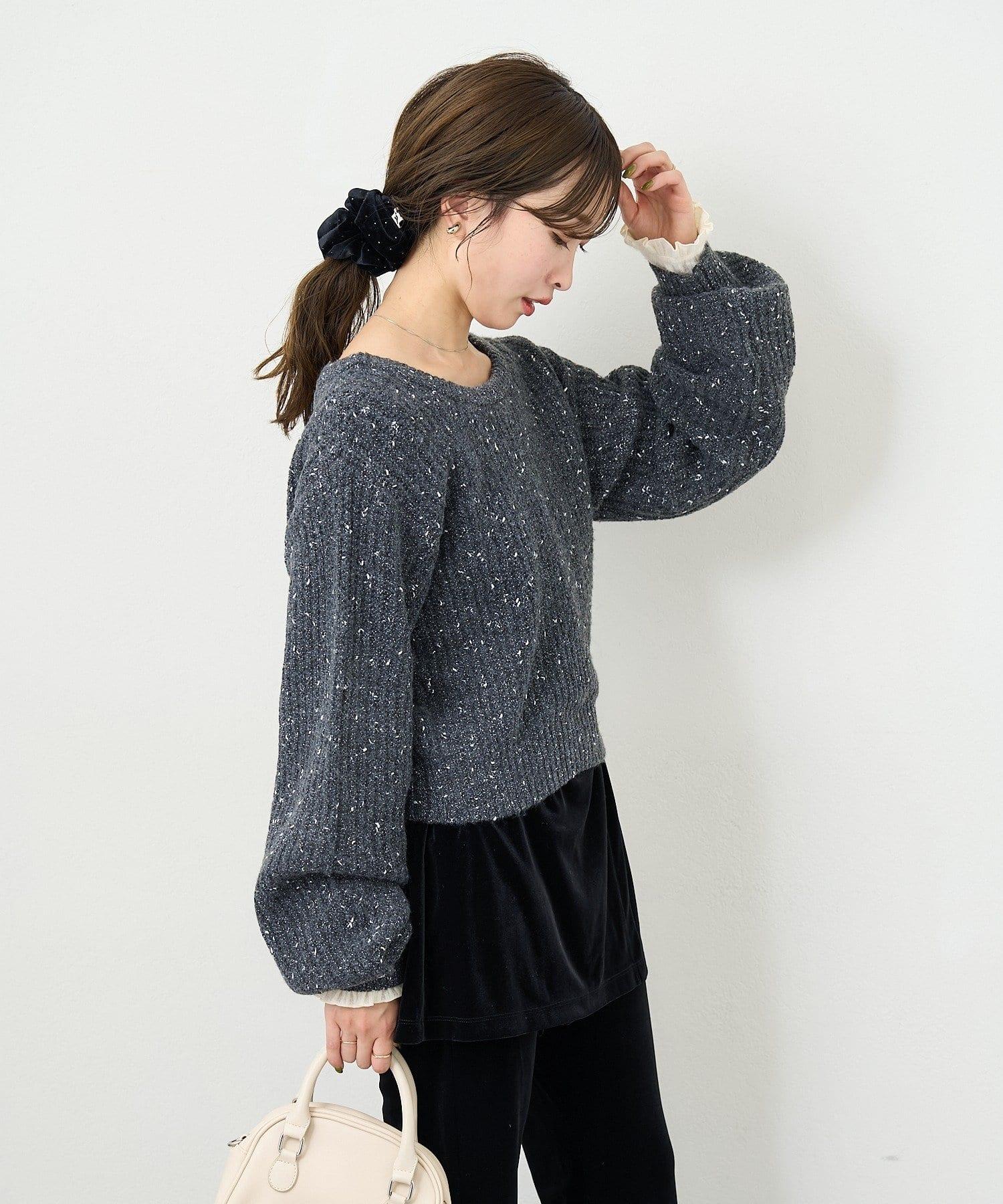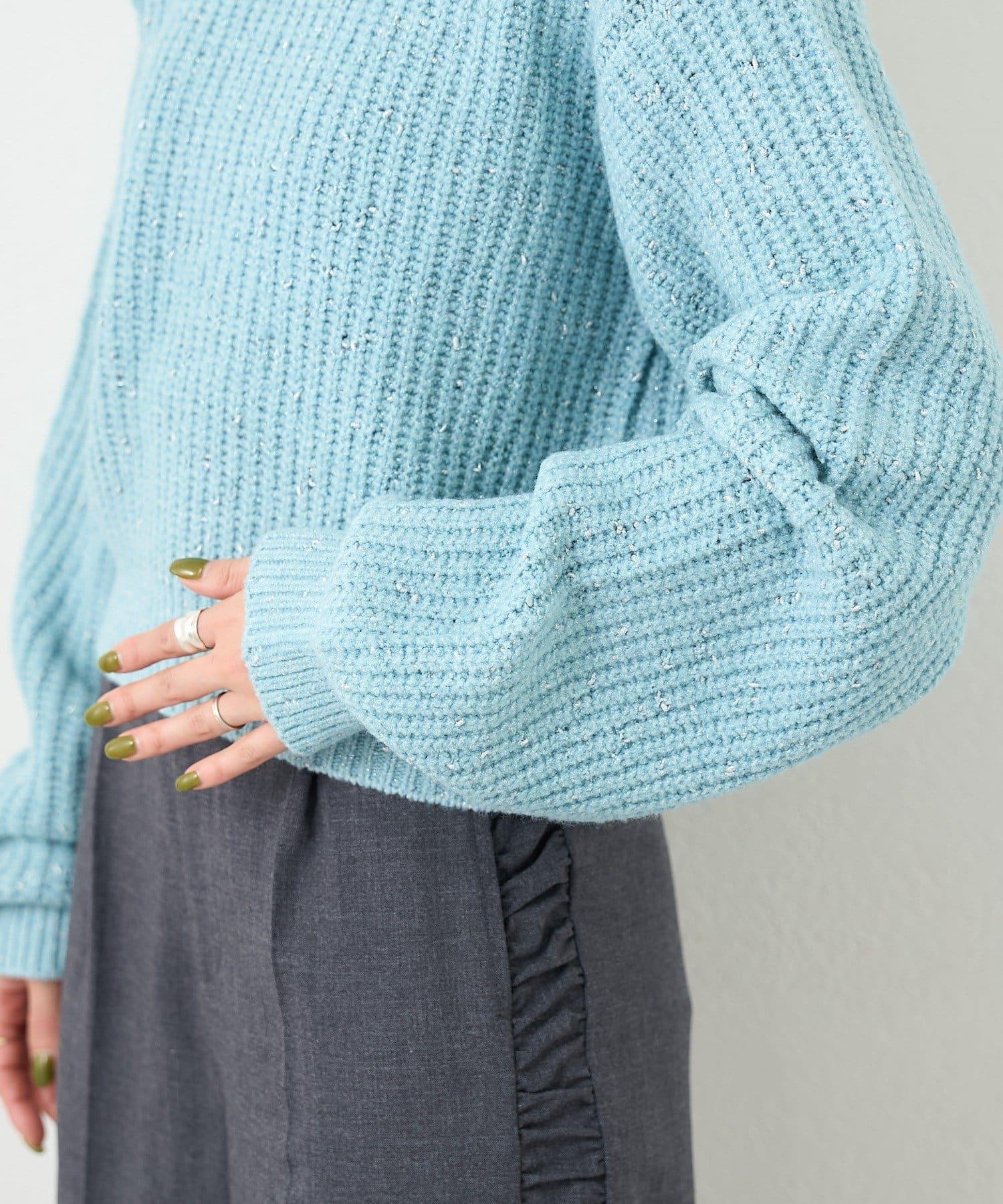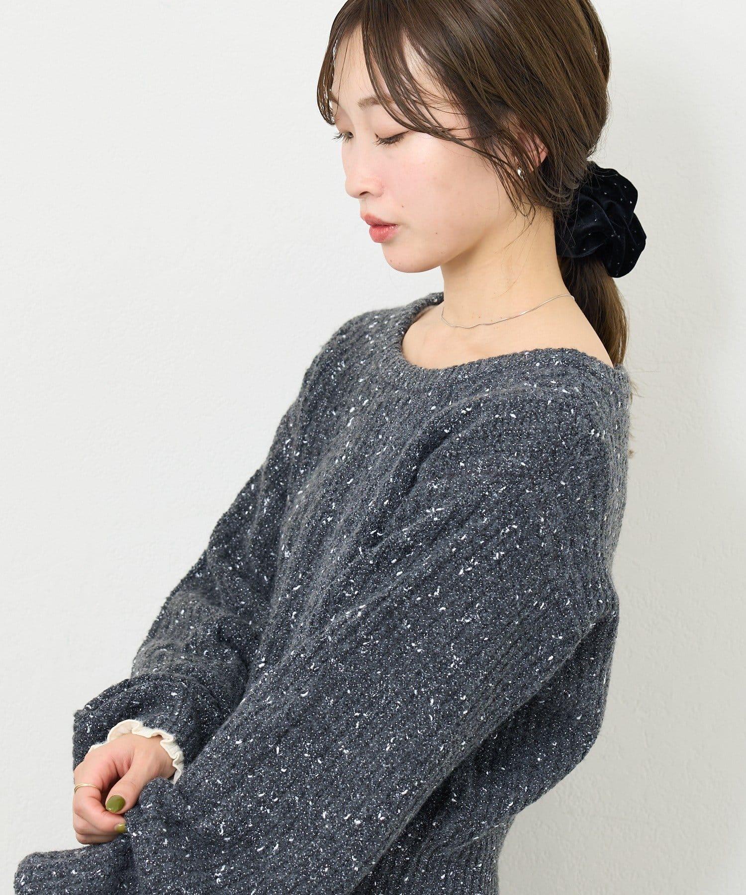 質地柔軟的套頭衫,紗線上交織著薄紗。