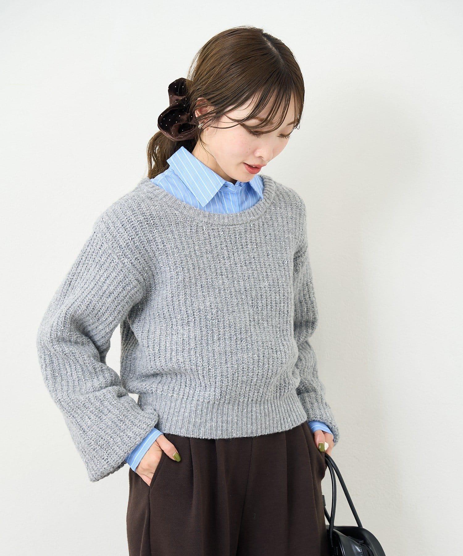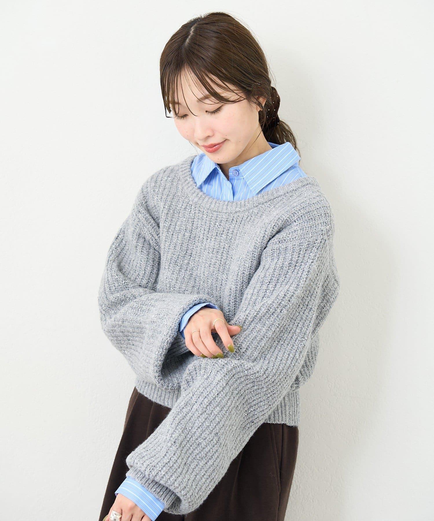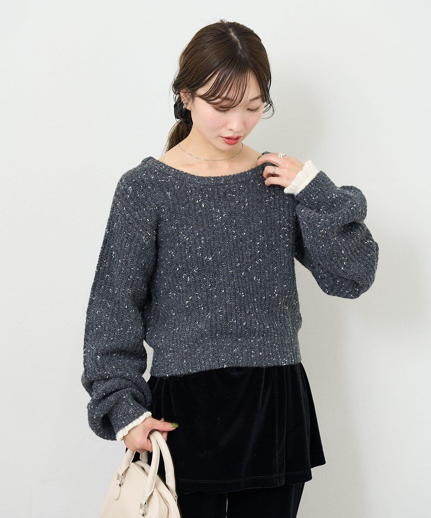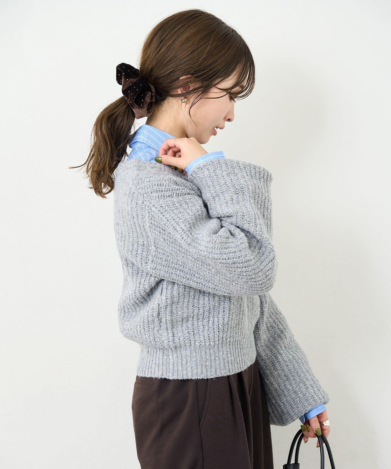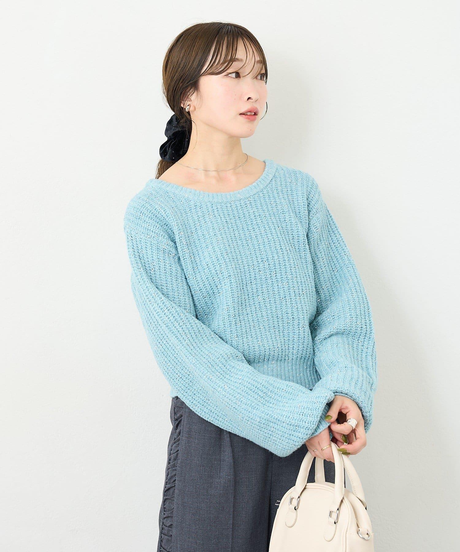質地柔軟的套頭衫,紗線上交織著薄紗。
