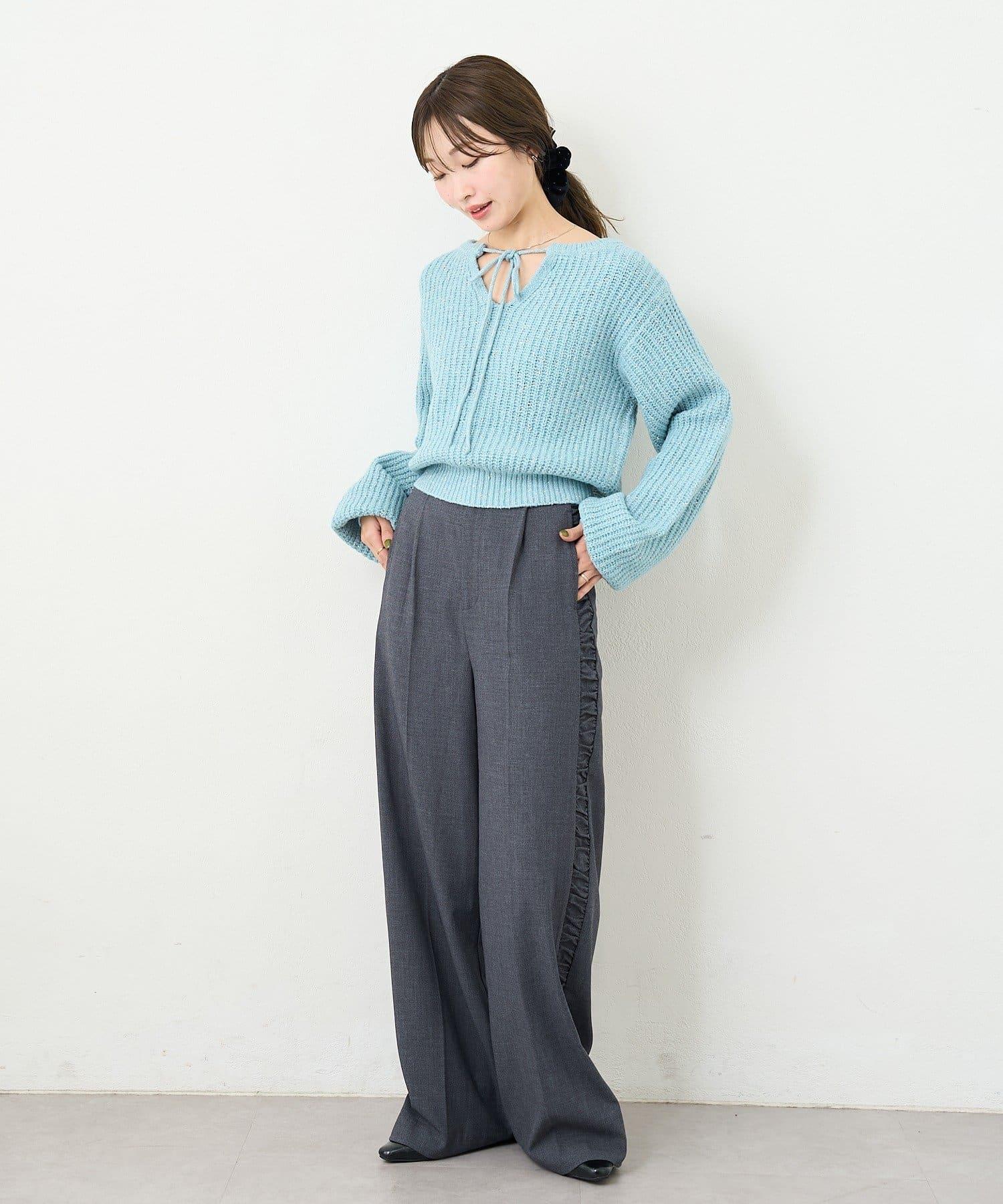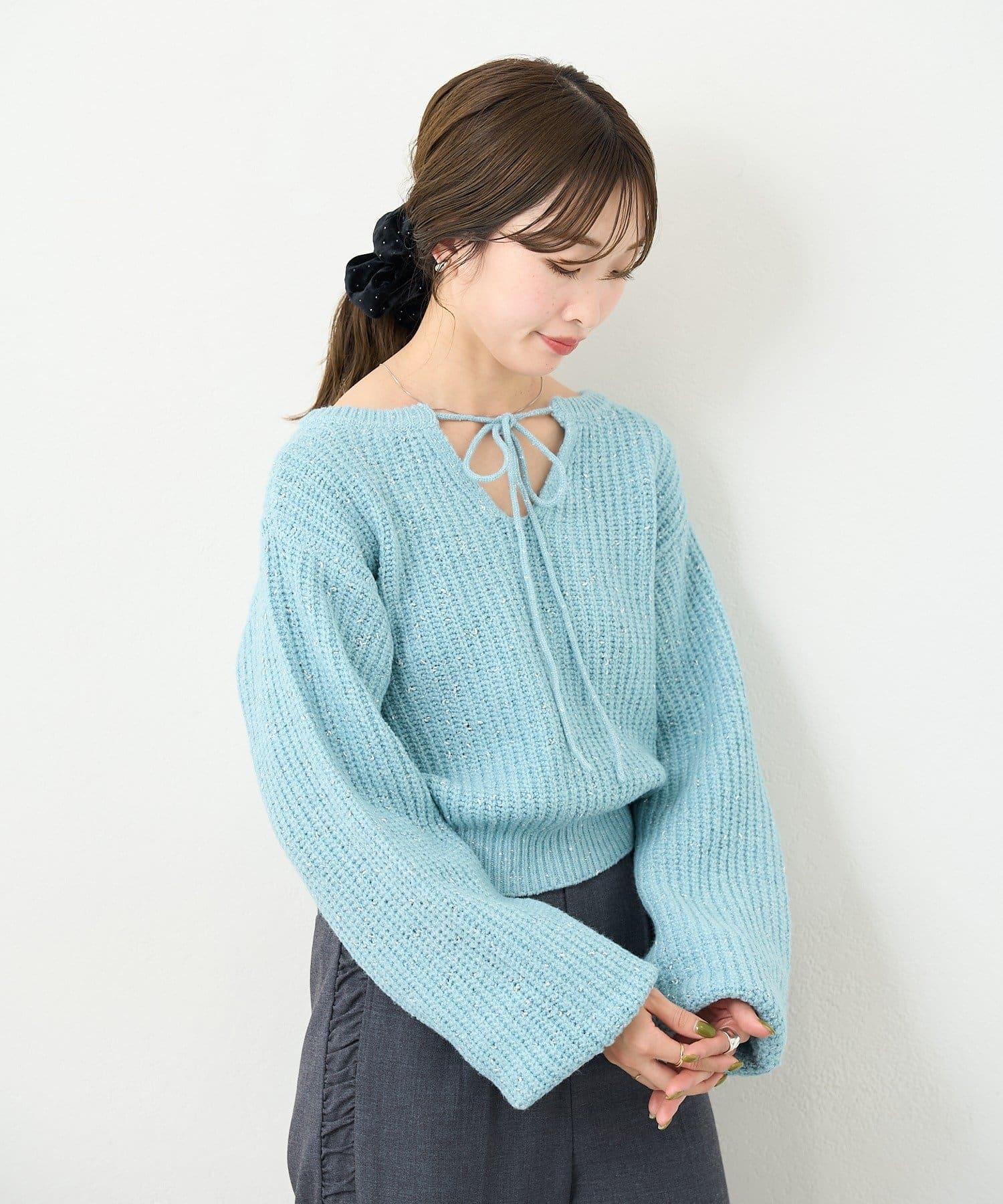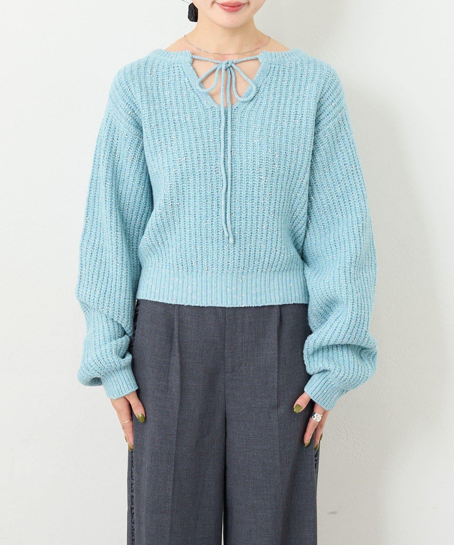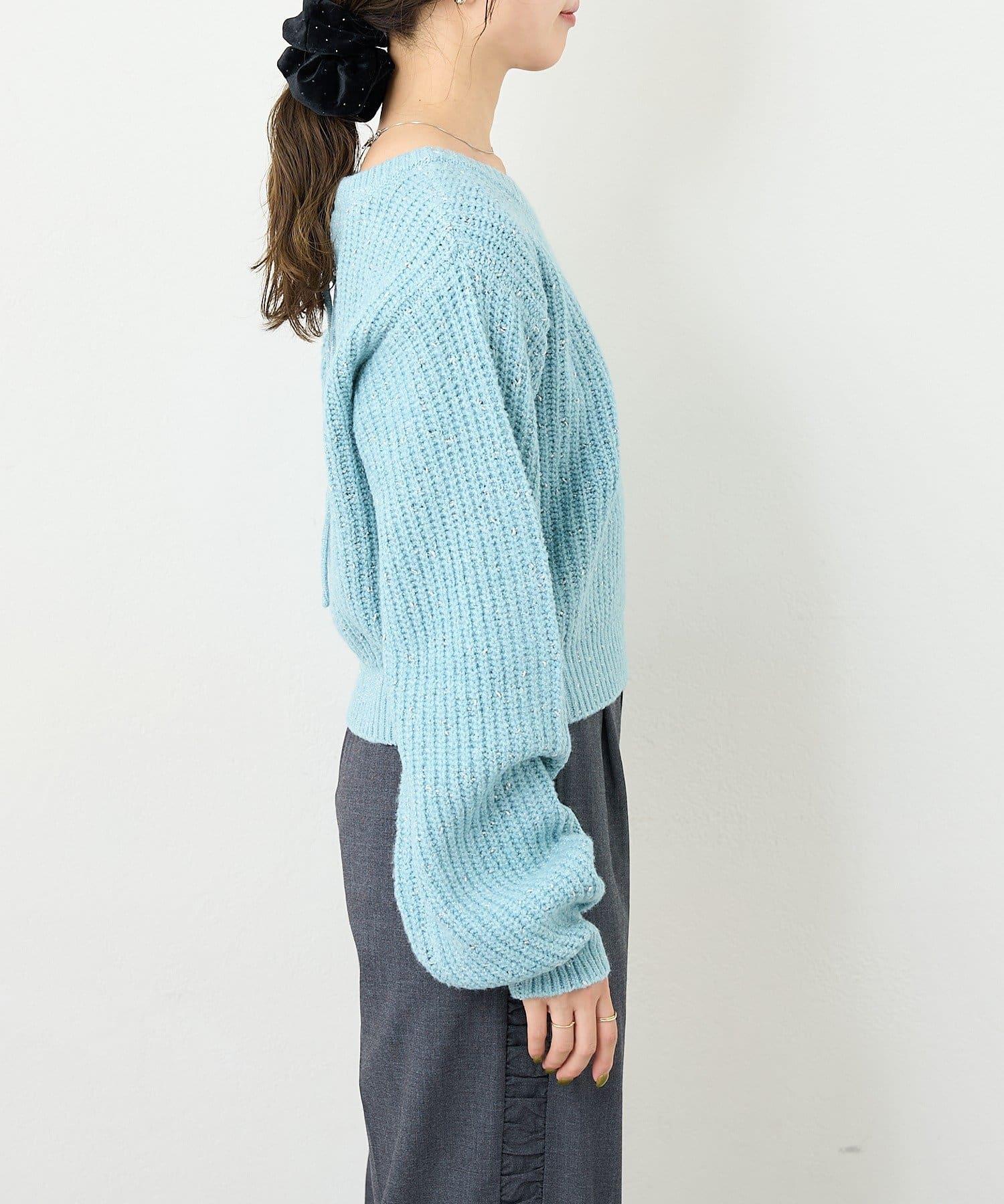 質地柔軟的套頭衫,紗線上交織著薄紗。