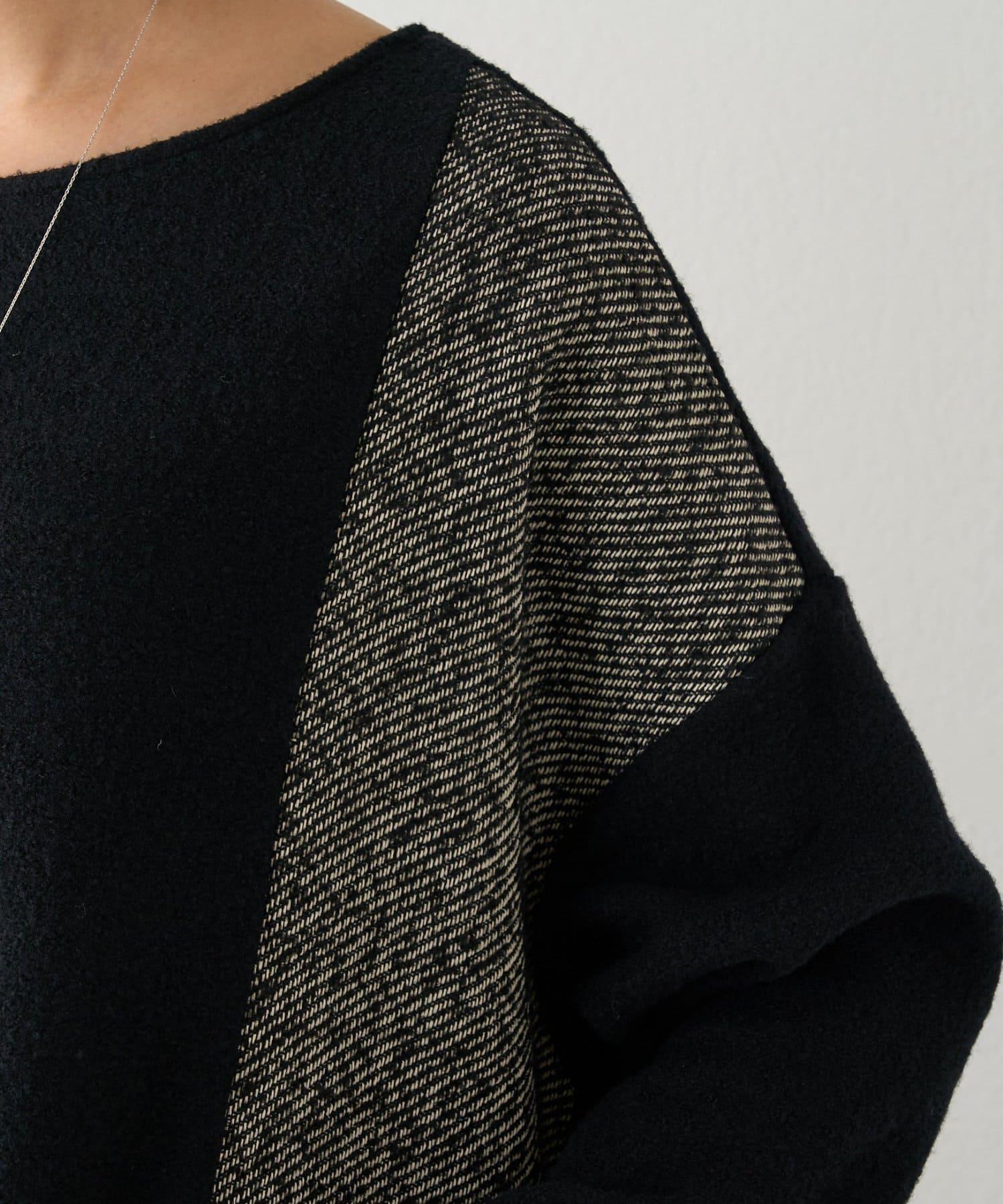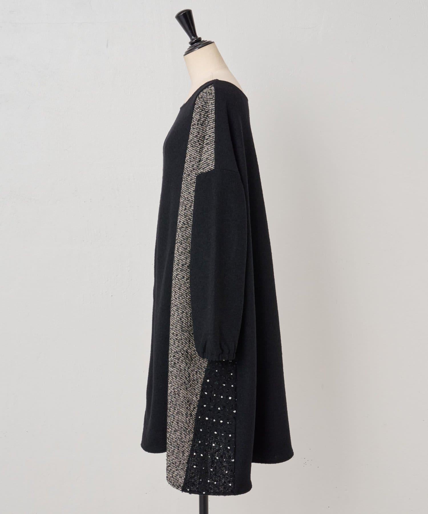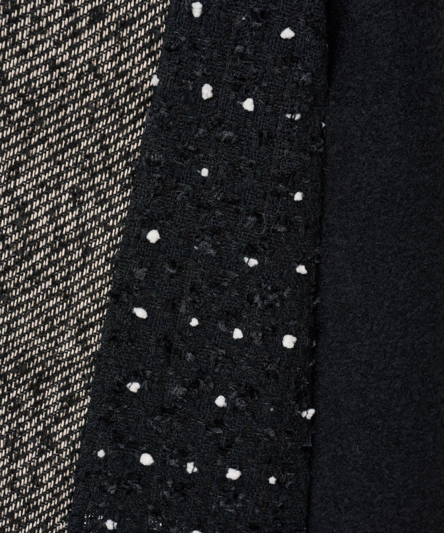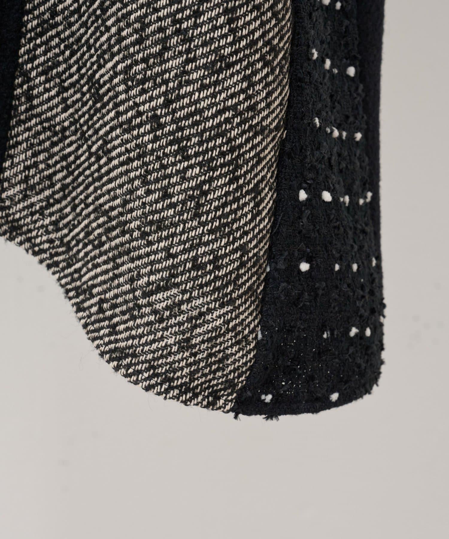 優雅的卡露絲編織和點狀斜紋軟呢面料以及微妙的圖案切換是這款連衣裙的亮點。