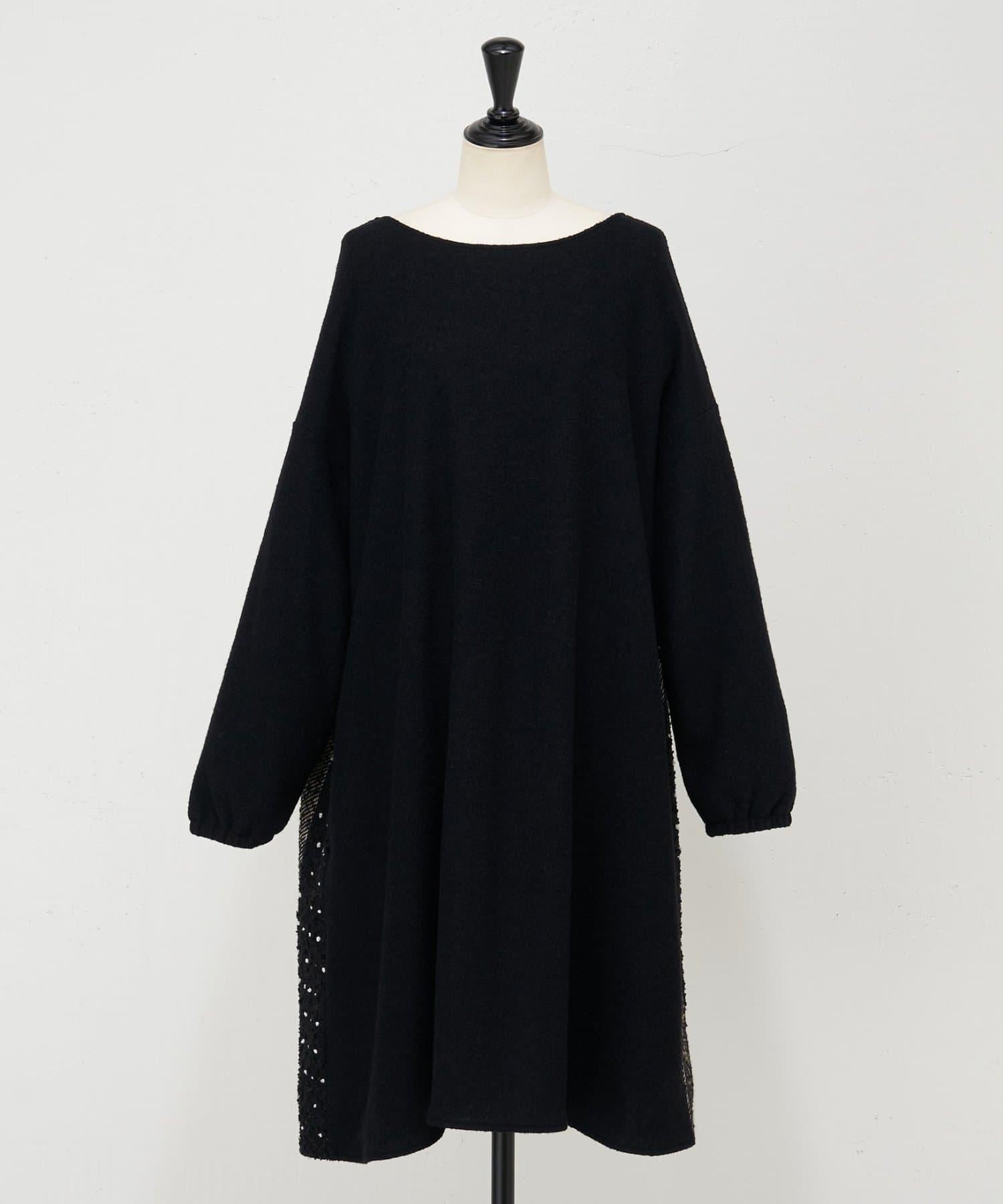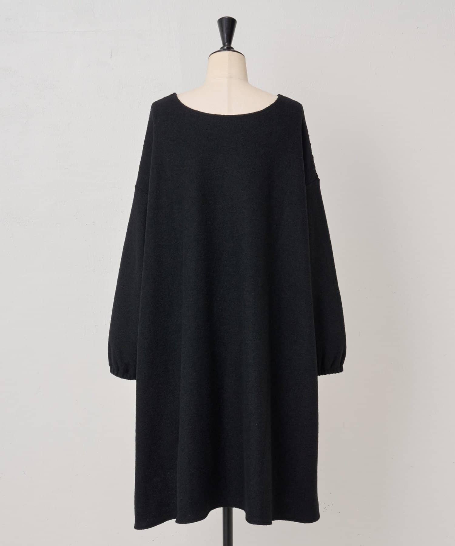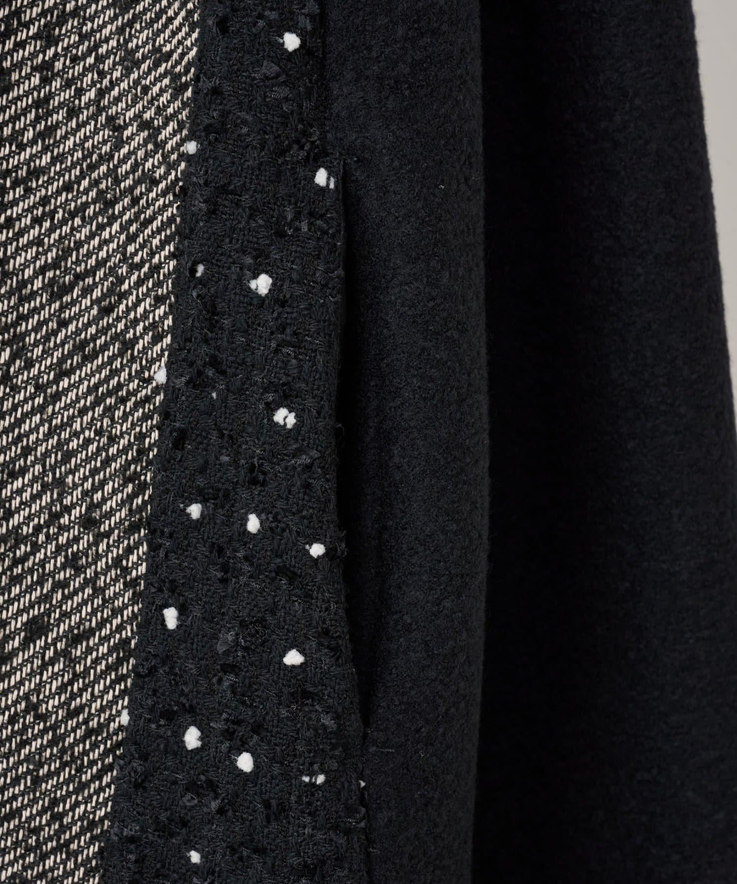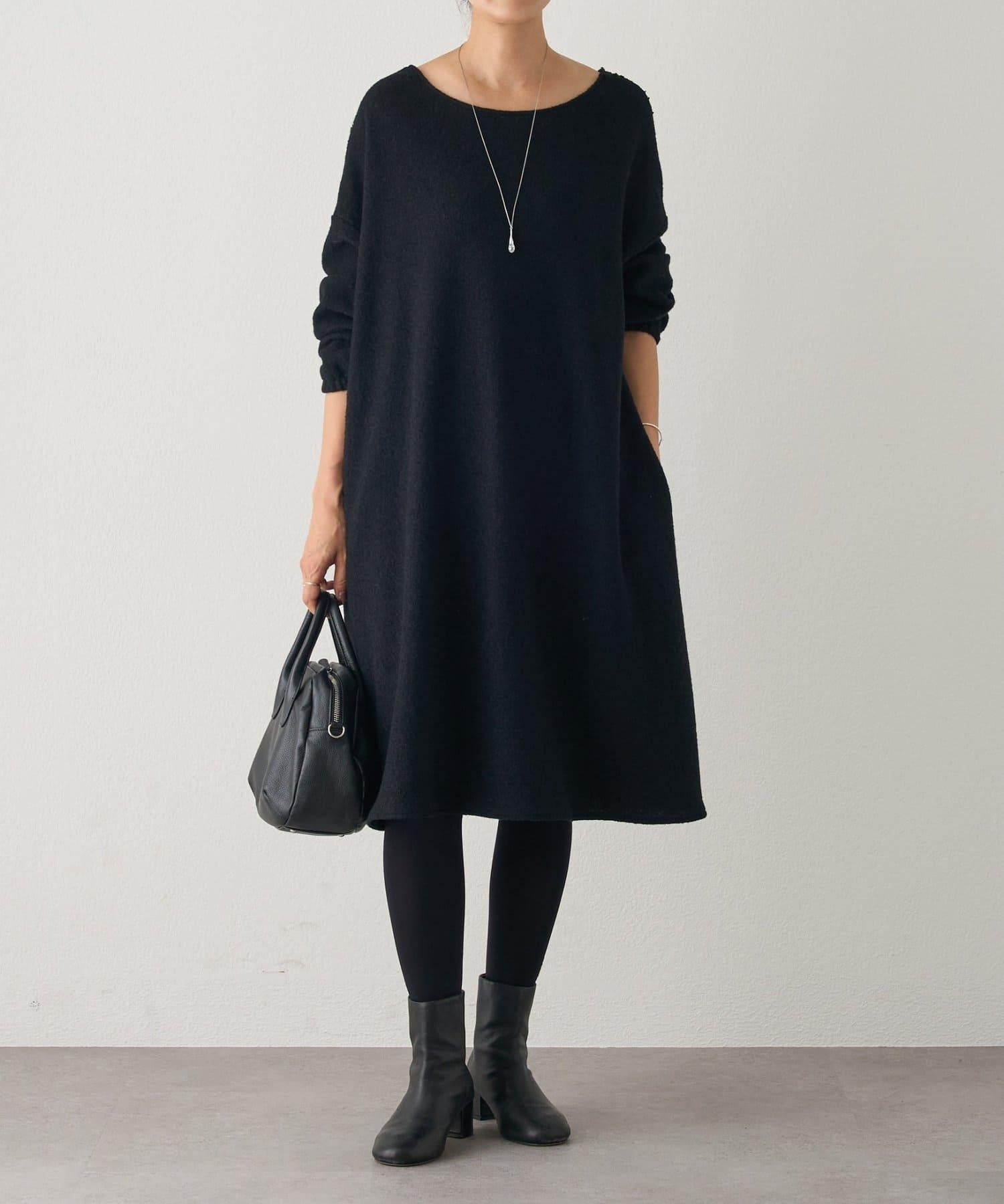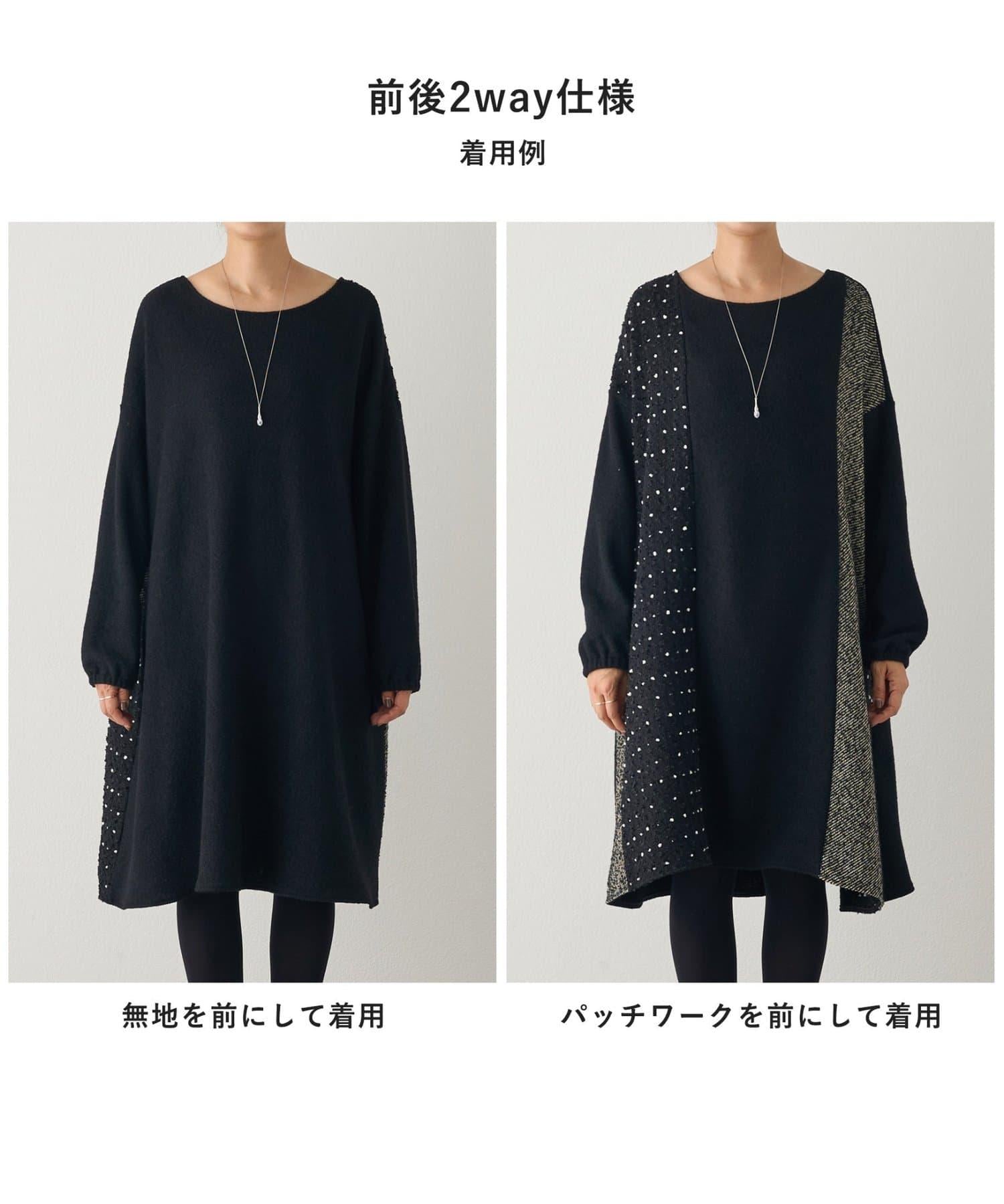 優雅的卡露絲編織和點狀斜紋軟呢面料以及微妙的圖案切換是這款連衣裙的亮點。