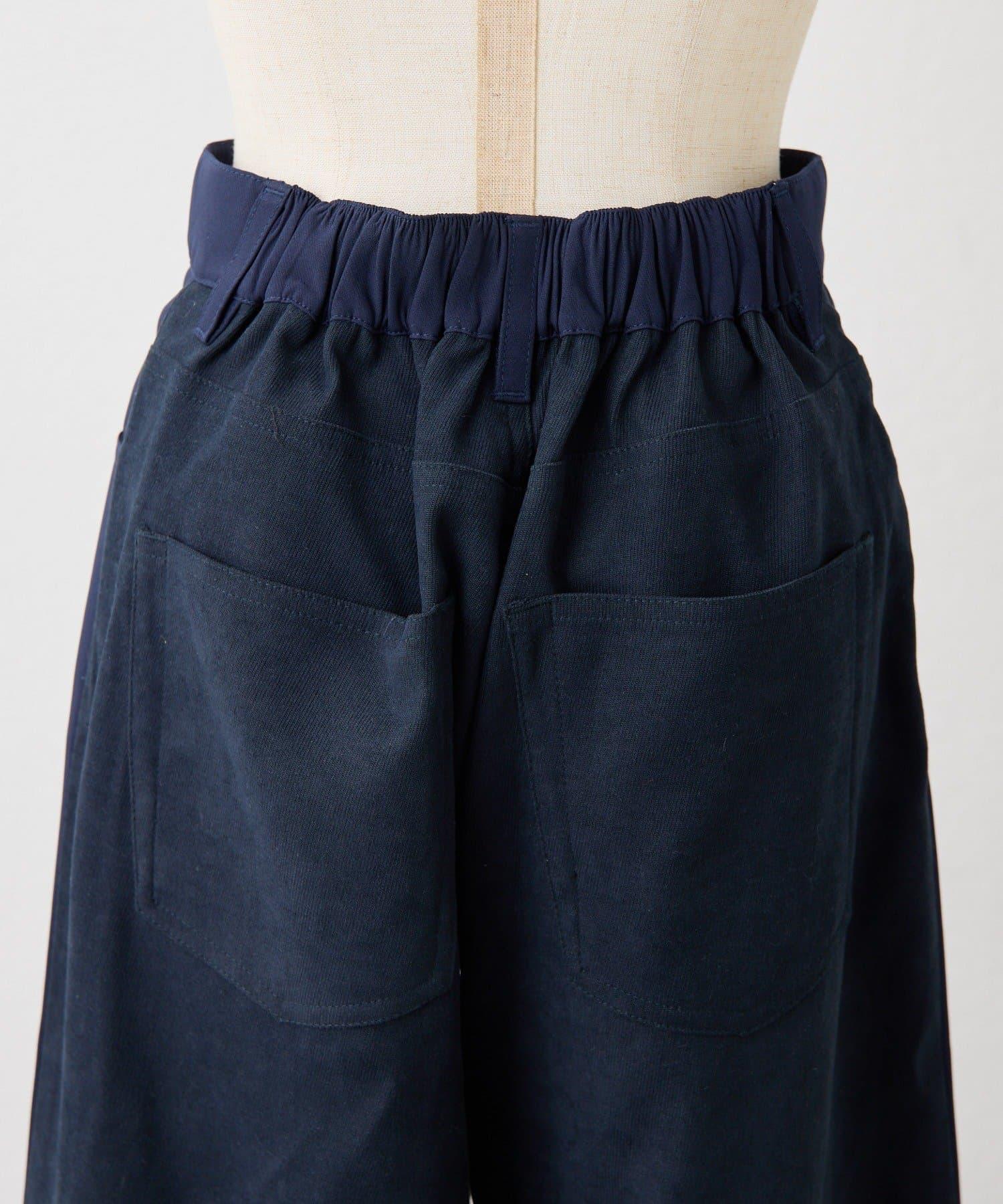 前身採用輕薄柔軟的面料,後身採用細紋燈芯絨面料。