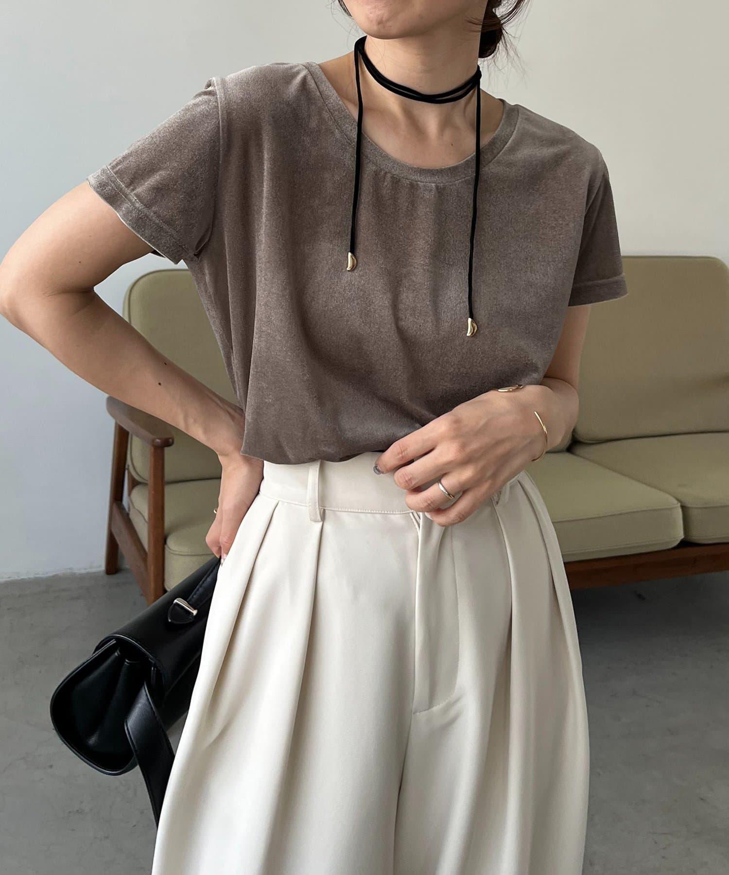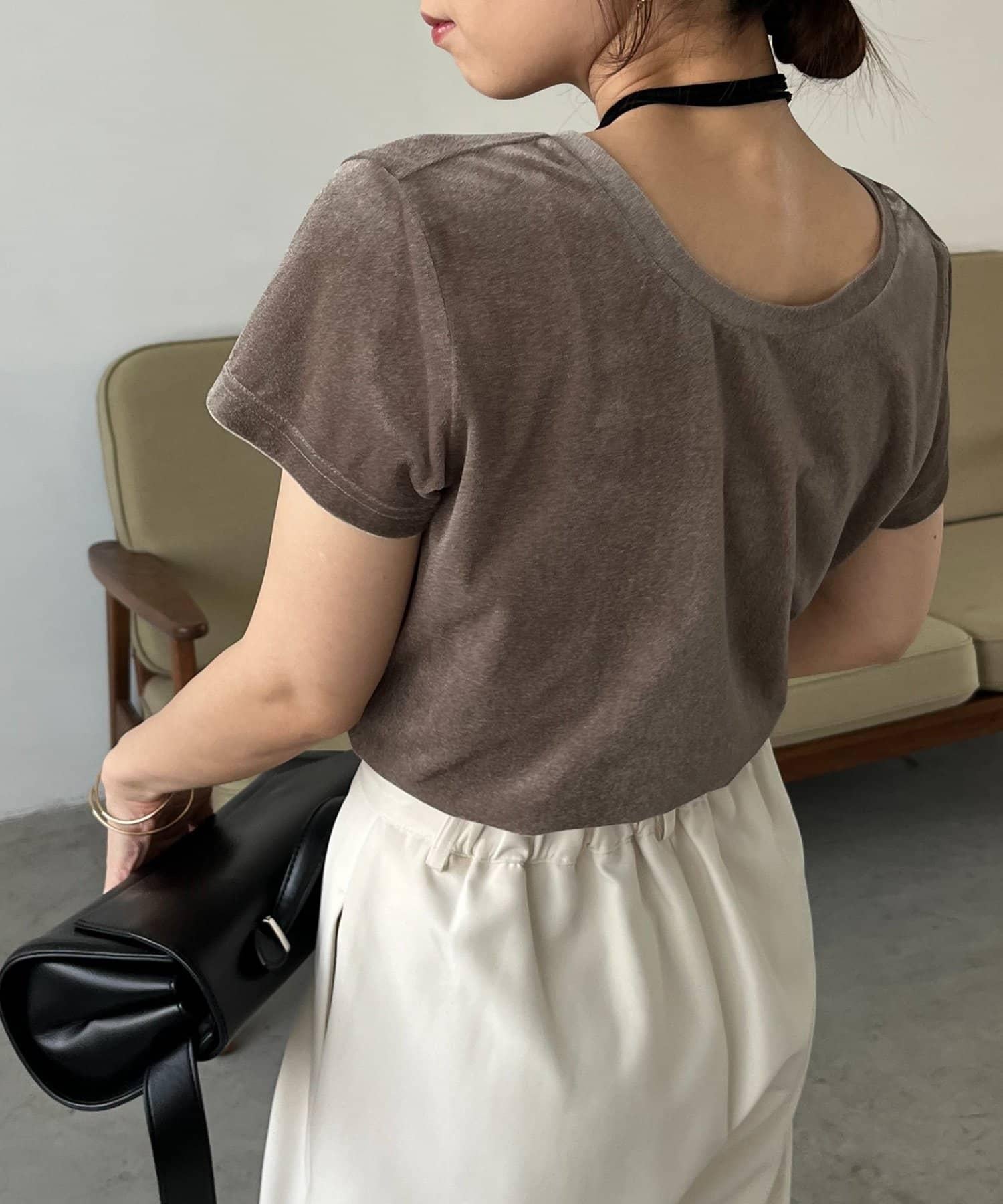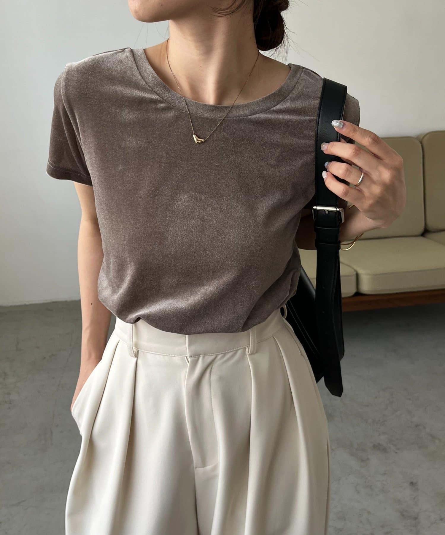 採用精緻、優質的低光澤絲絨面料製成的 T 恤。