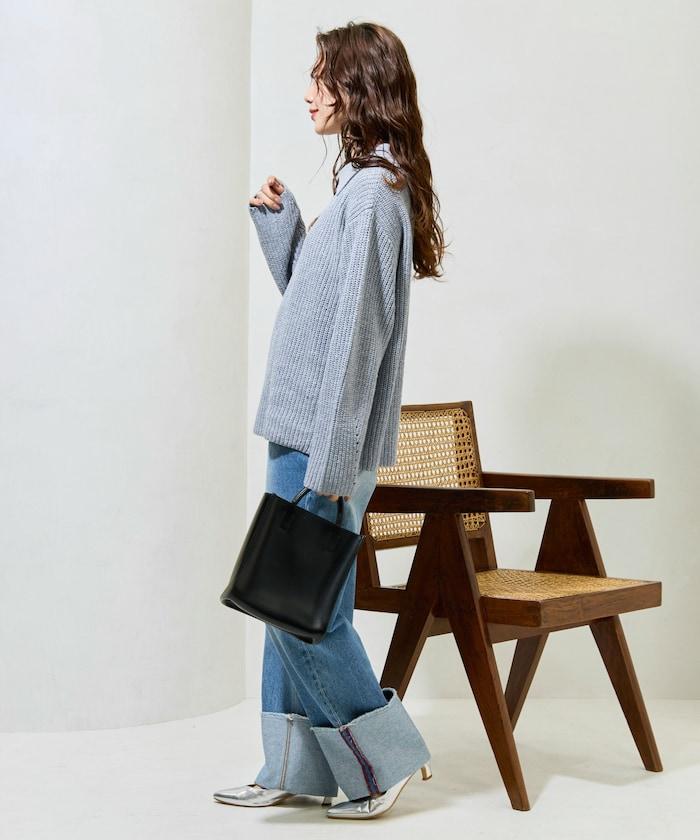 與裙裝搭配可增添女性的柔美氣質,將前面的掛鉤打開一點,讓內襯露出來,打造寬鬆的造型!