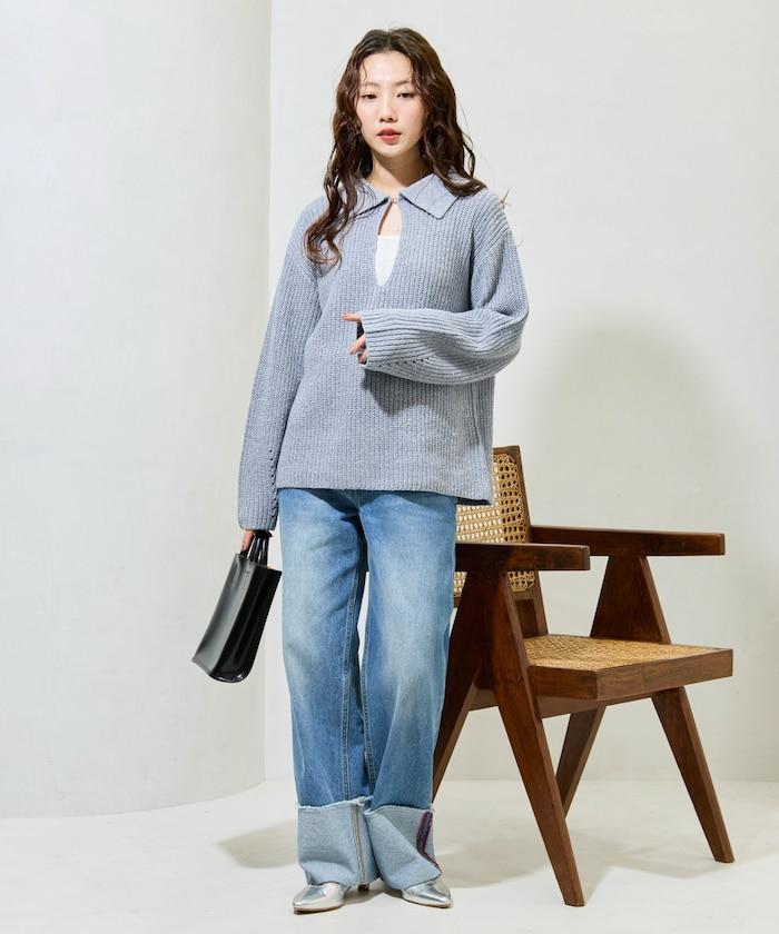 與寬鬆的長褲或寬鬆的休閒褲搭配時,優雅的衣領會給人一種輕鬆休閒的感覺。
