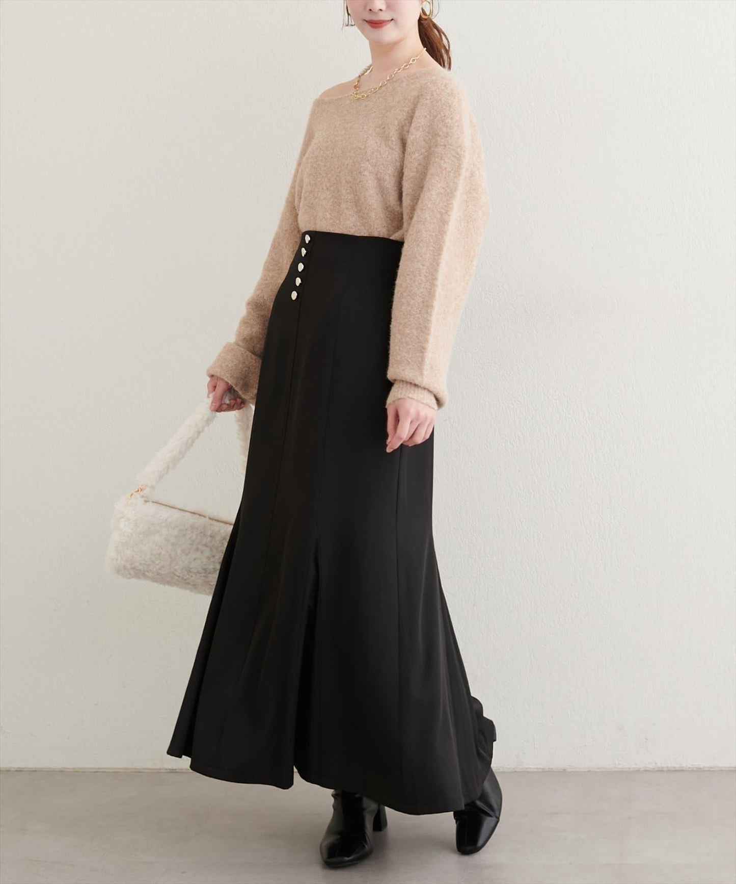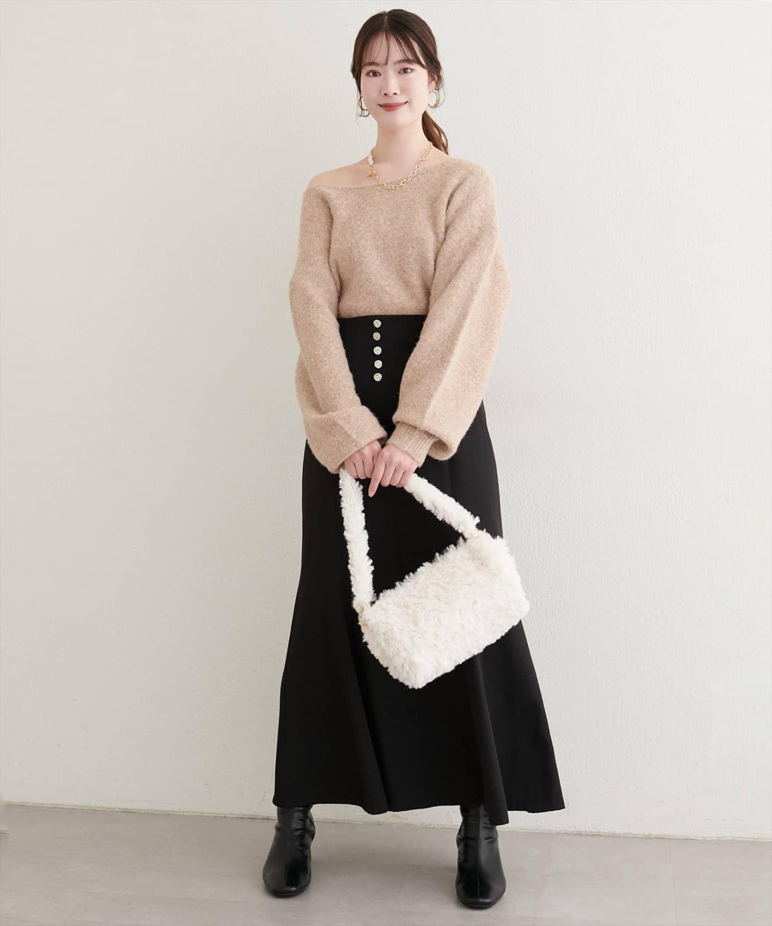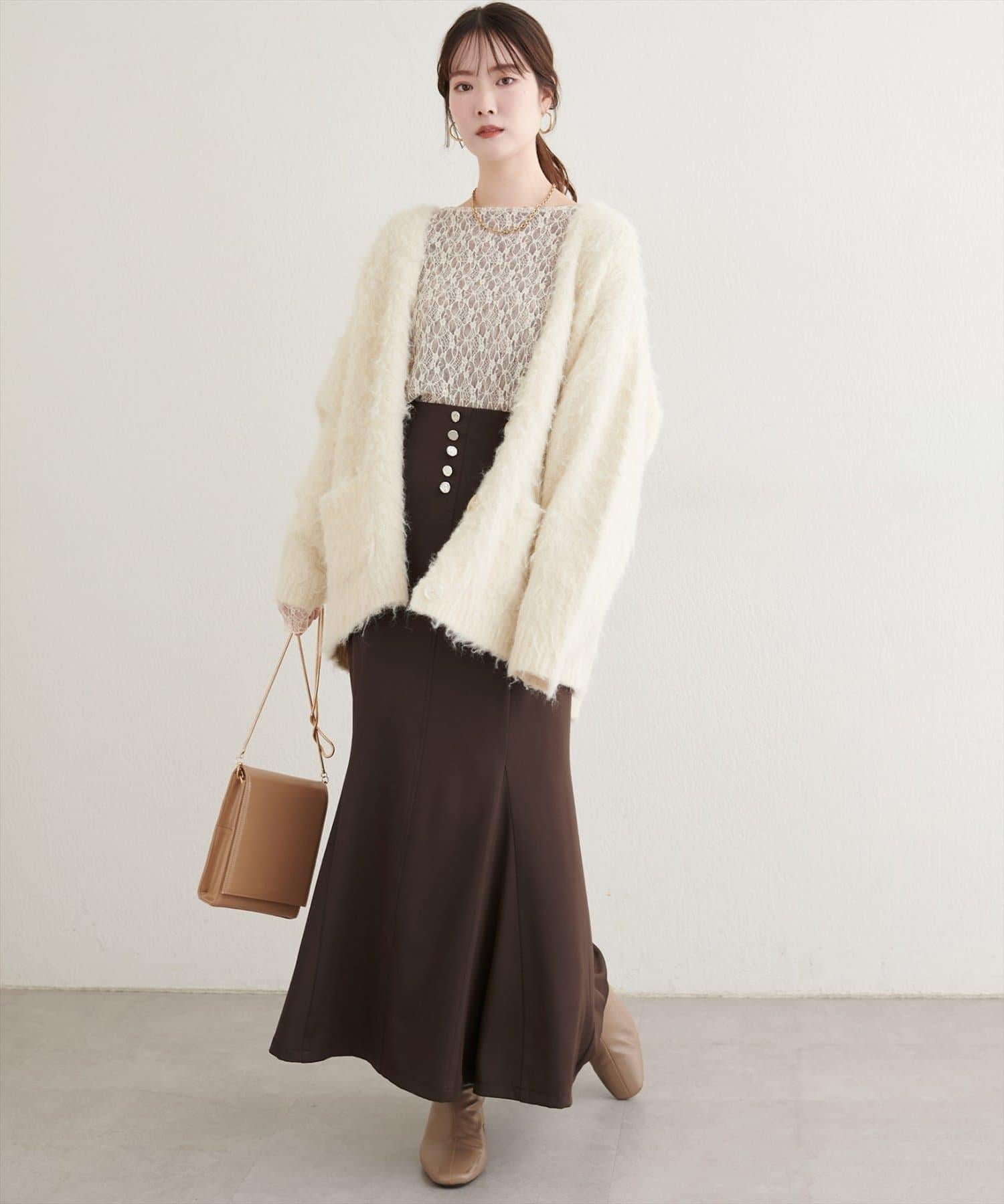 裝飾在裙襬上的紐扣給人以古典而精緻的印象。