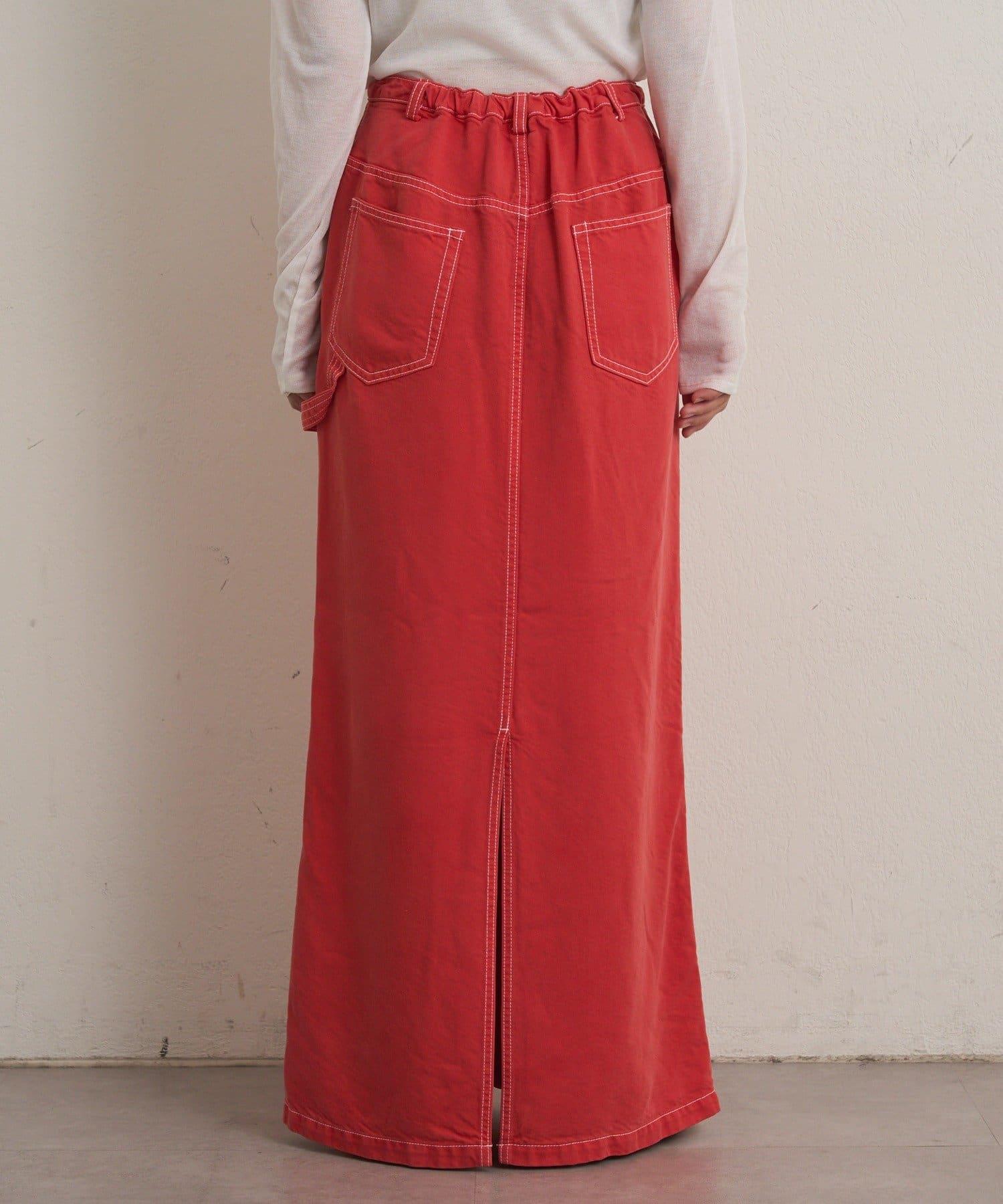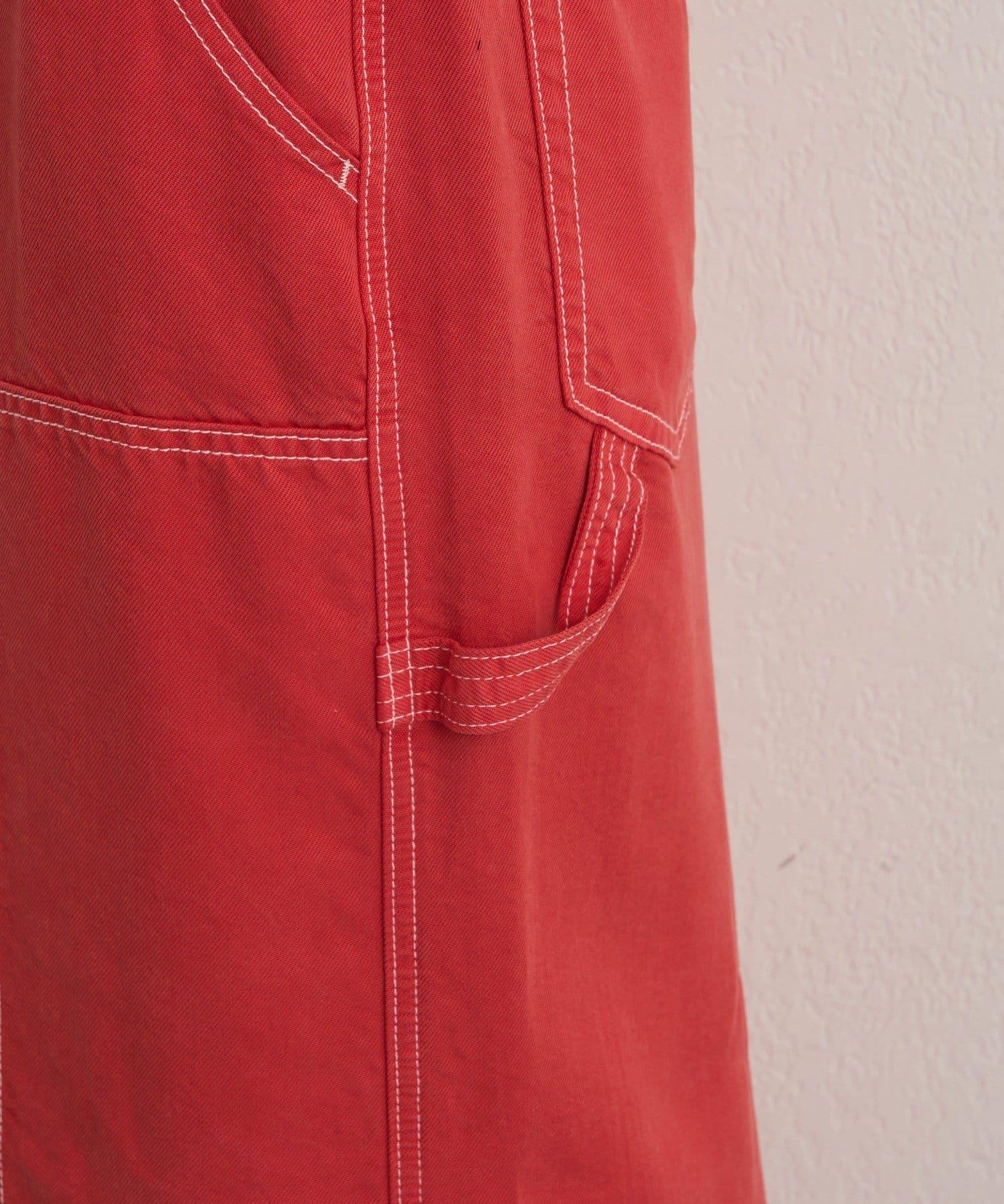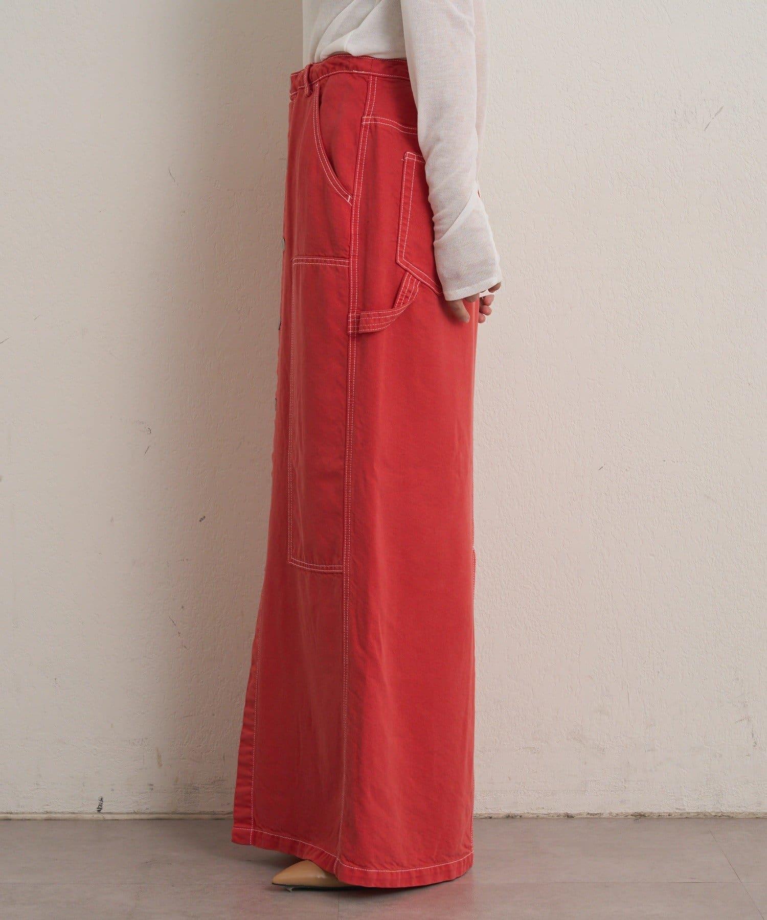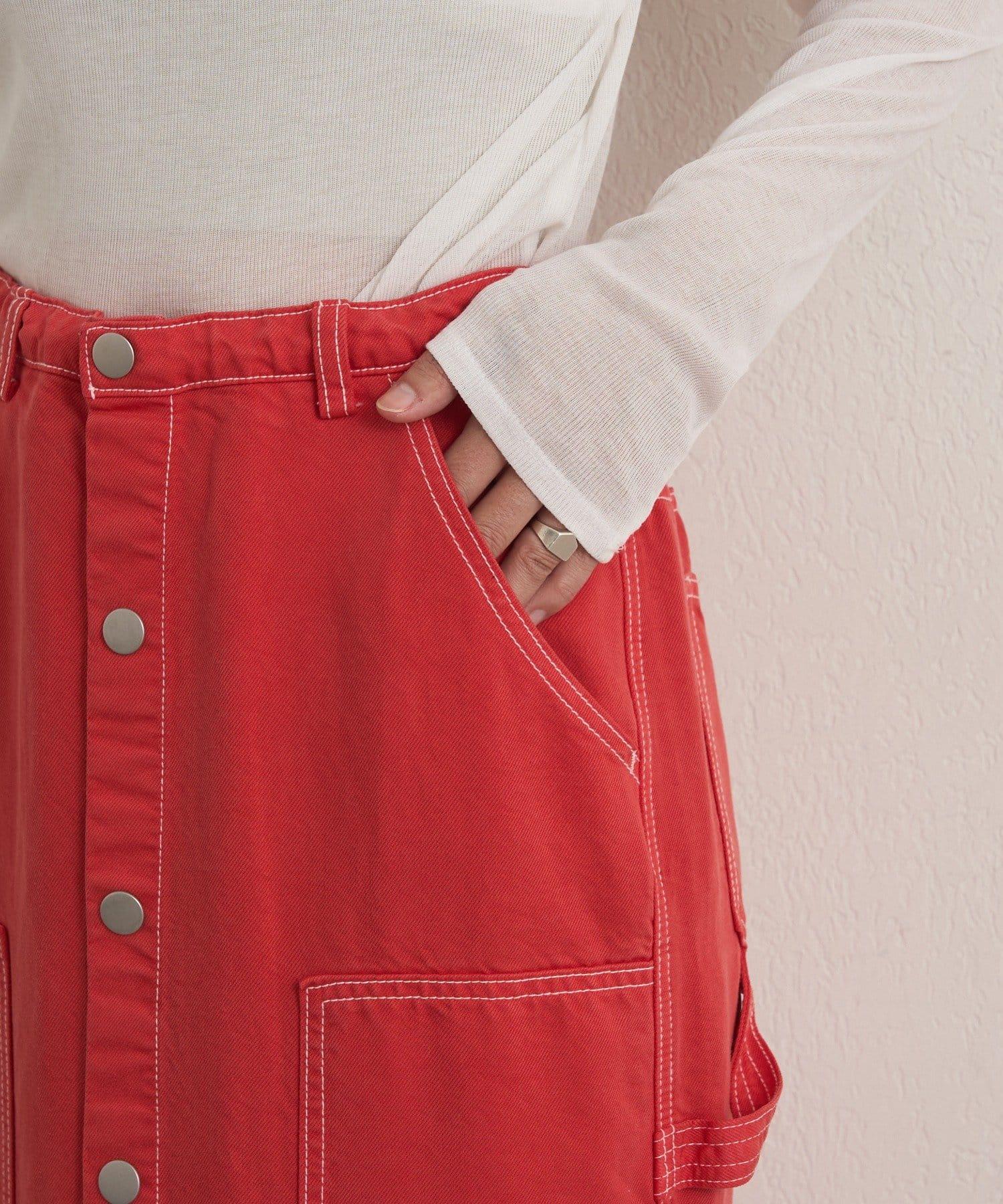 這是一款俏皮的長裙,帶有環形口袋和工具袋,融合了彩繪長褲的細節。