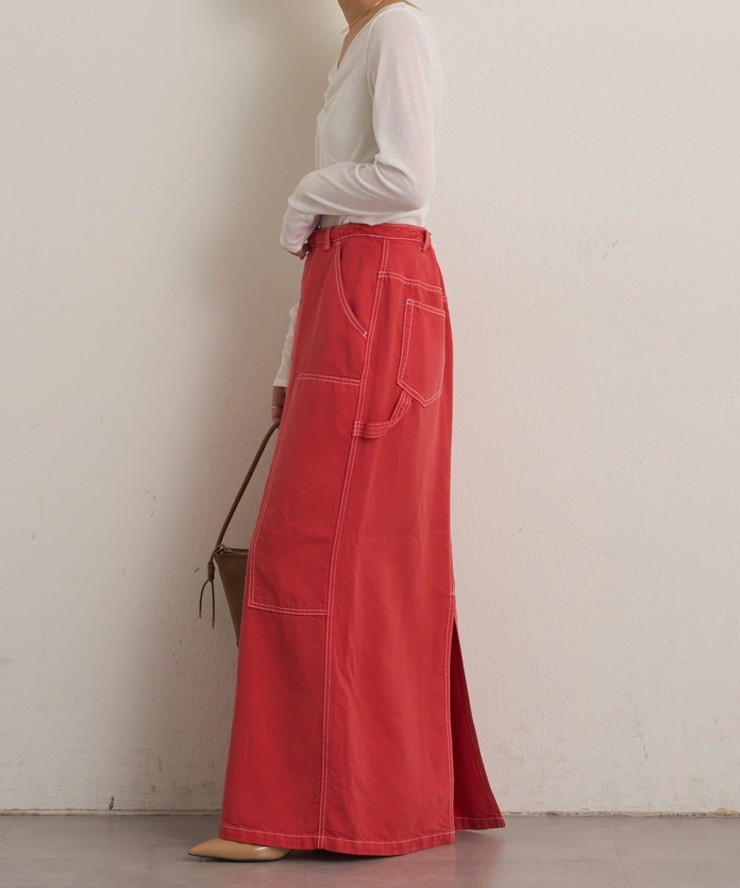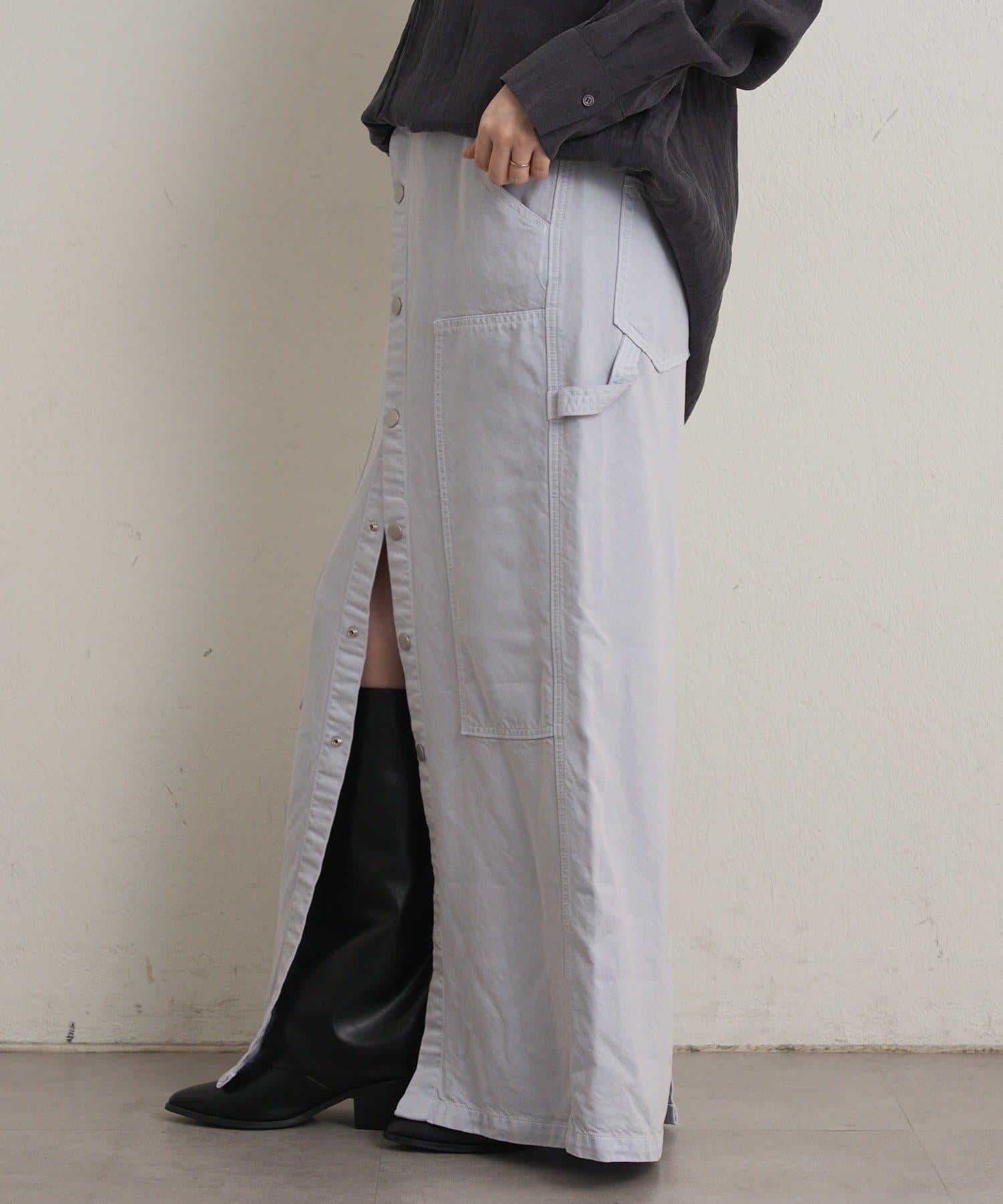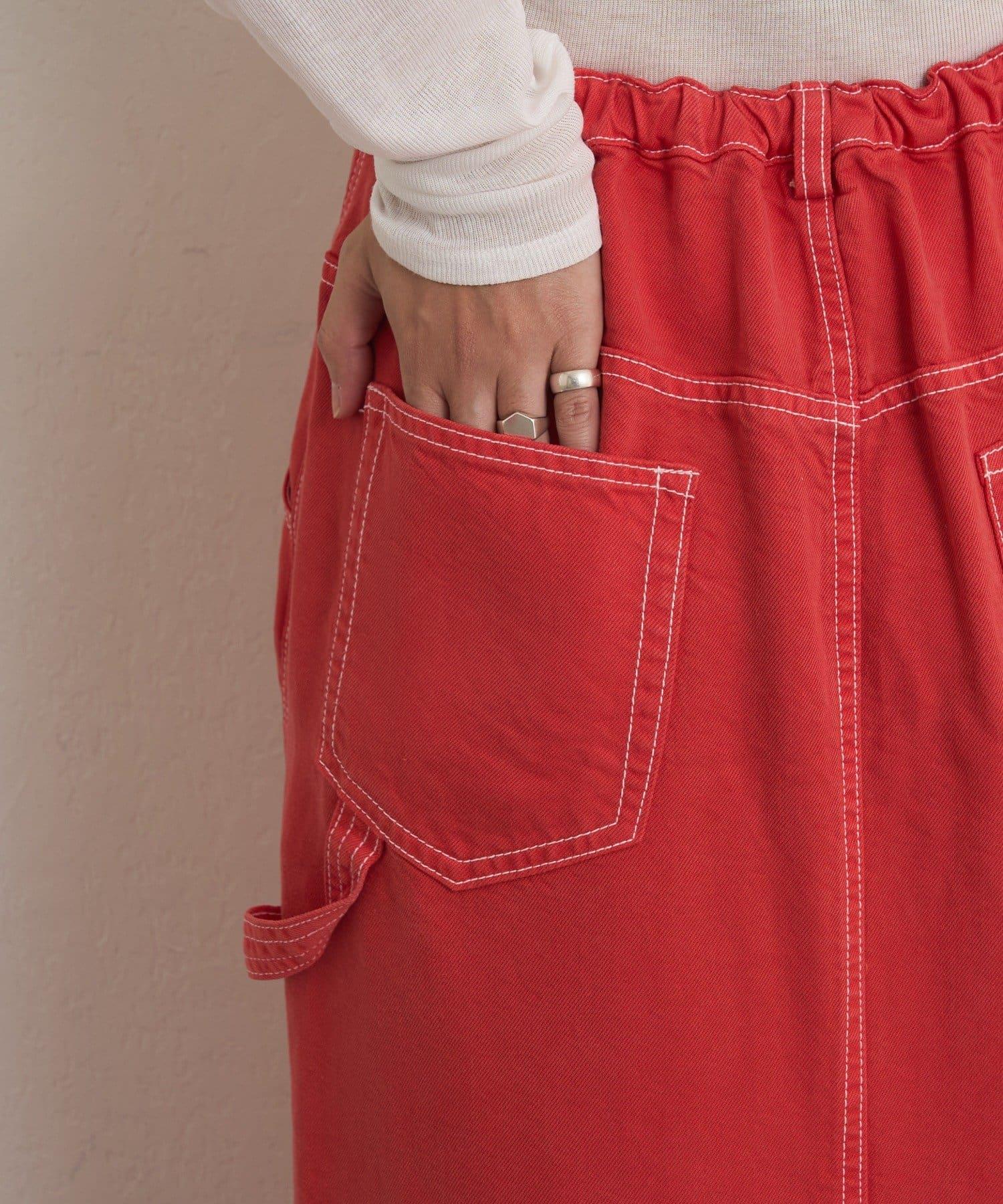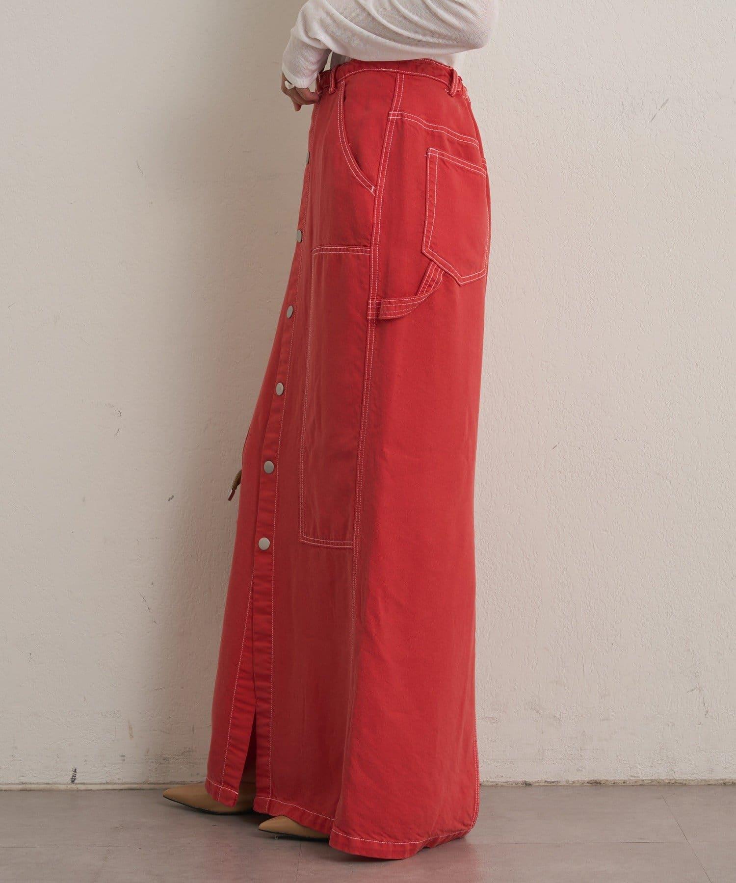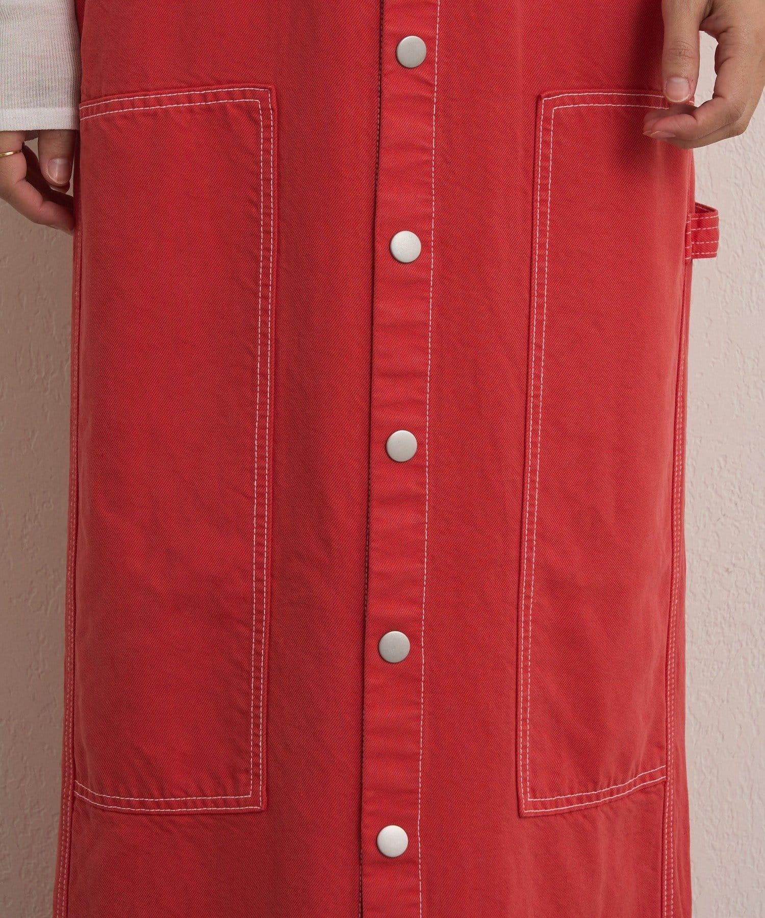 這是一款俏皮的長裙,帶有環形口袋和工具袋,融合了彩繪長褲的細節。