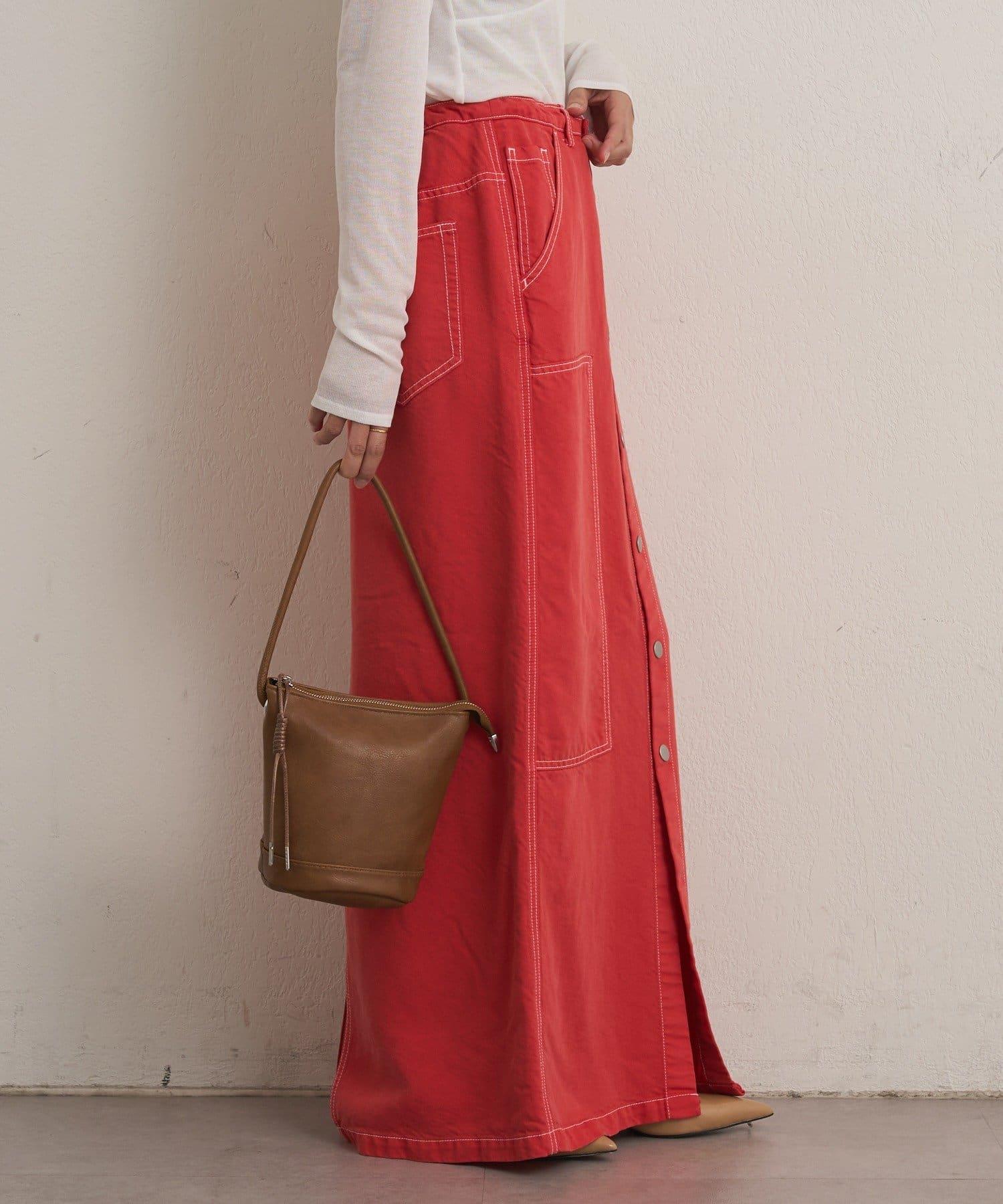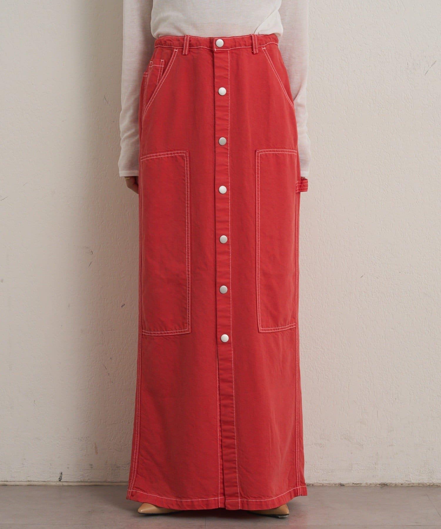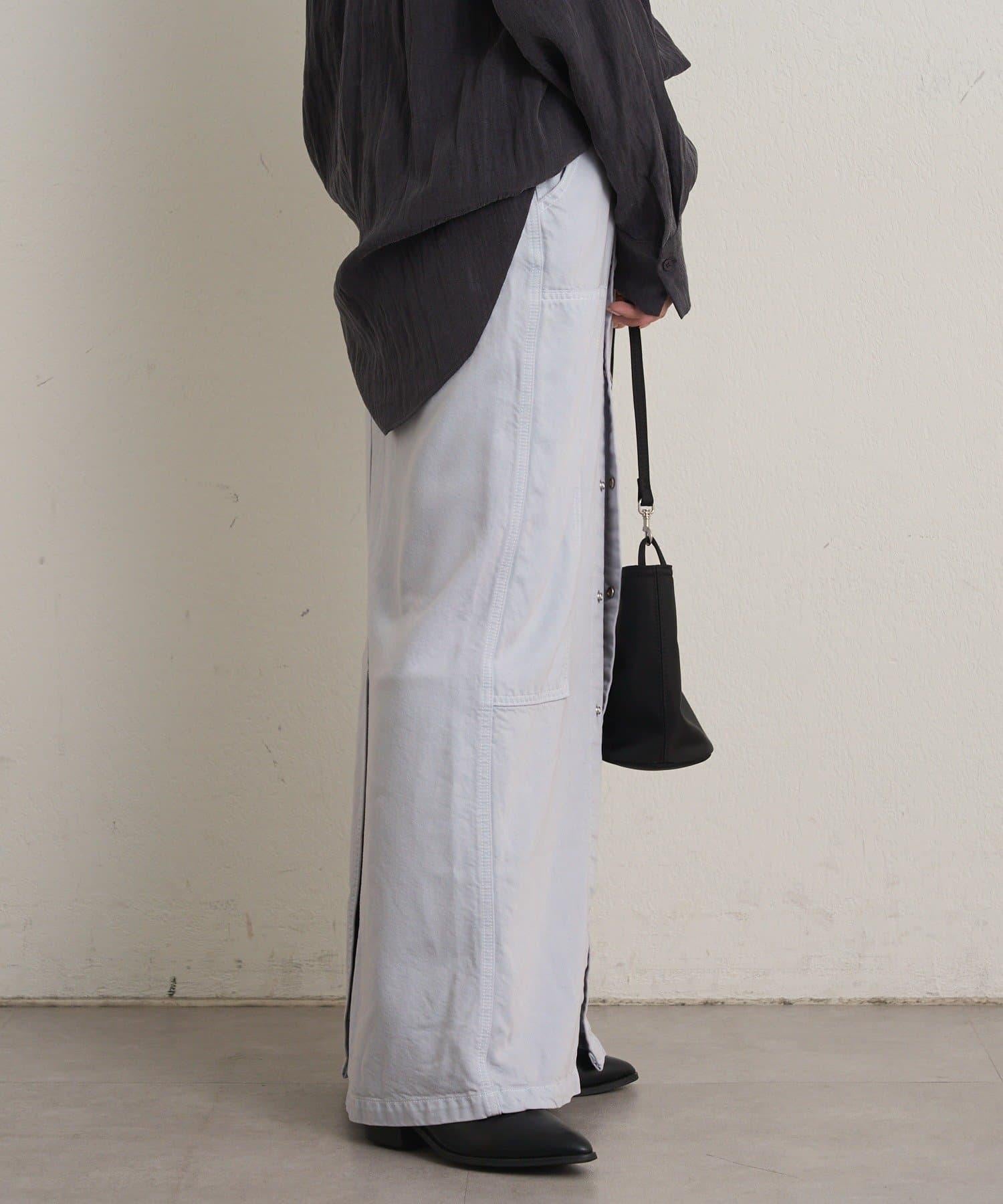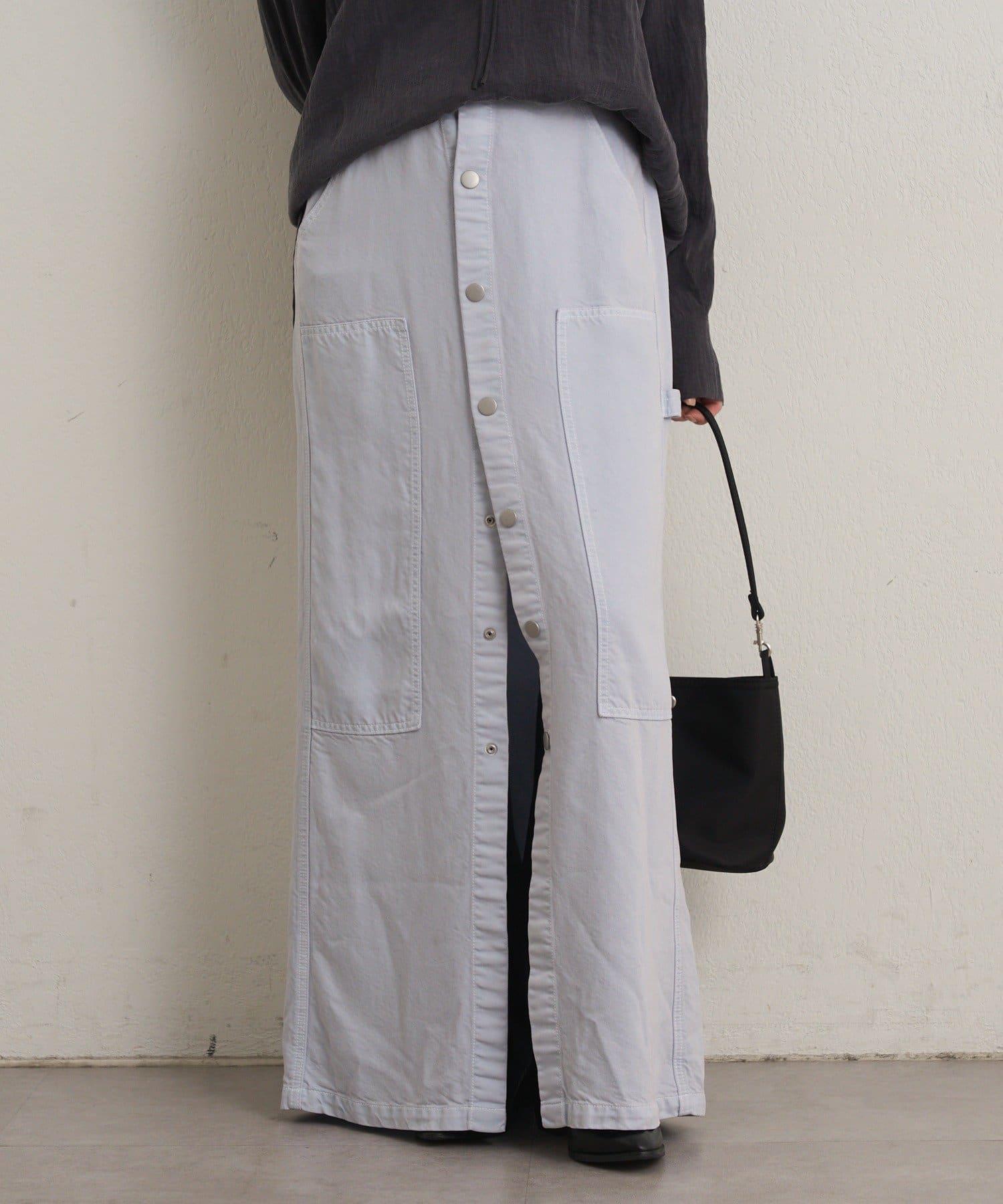 這是一款俏皮的長裙,帶有環形口袋和工具袋,融合了彩繪長褲的細節。