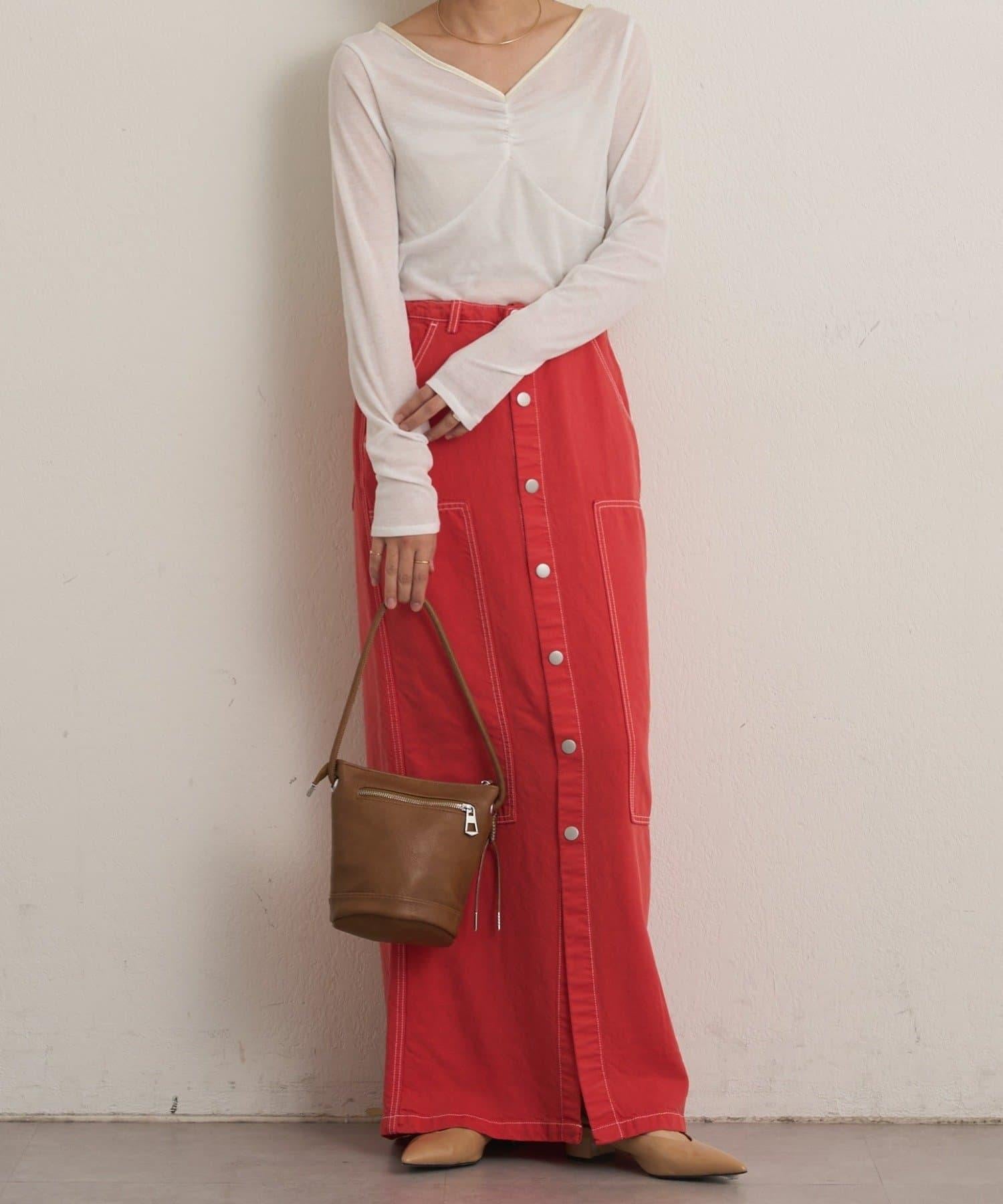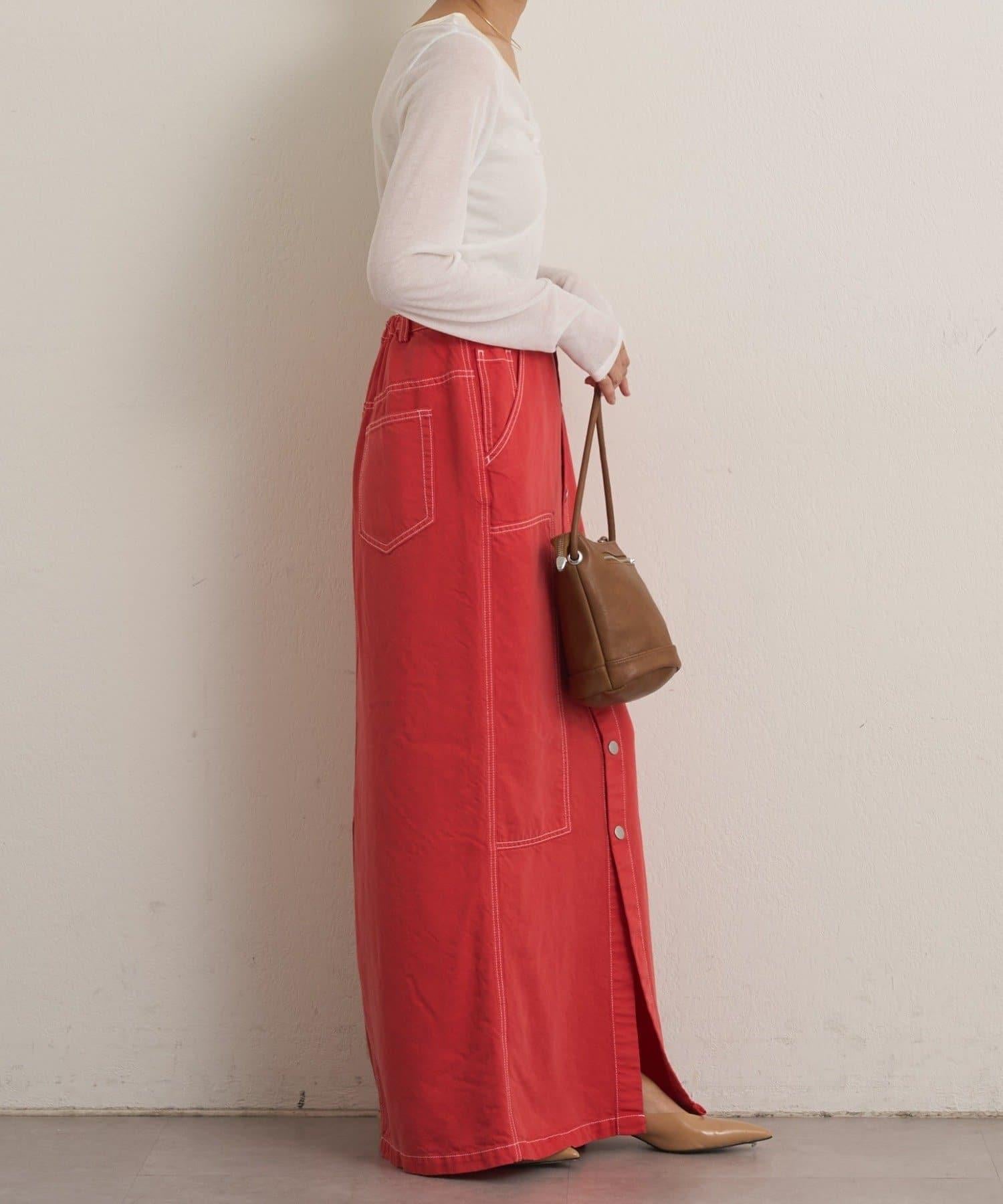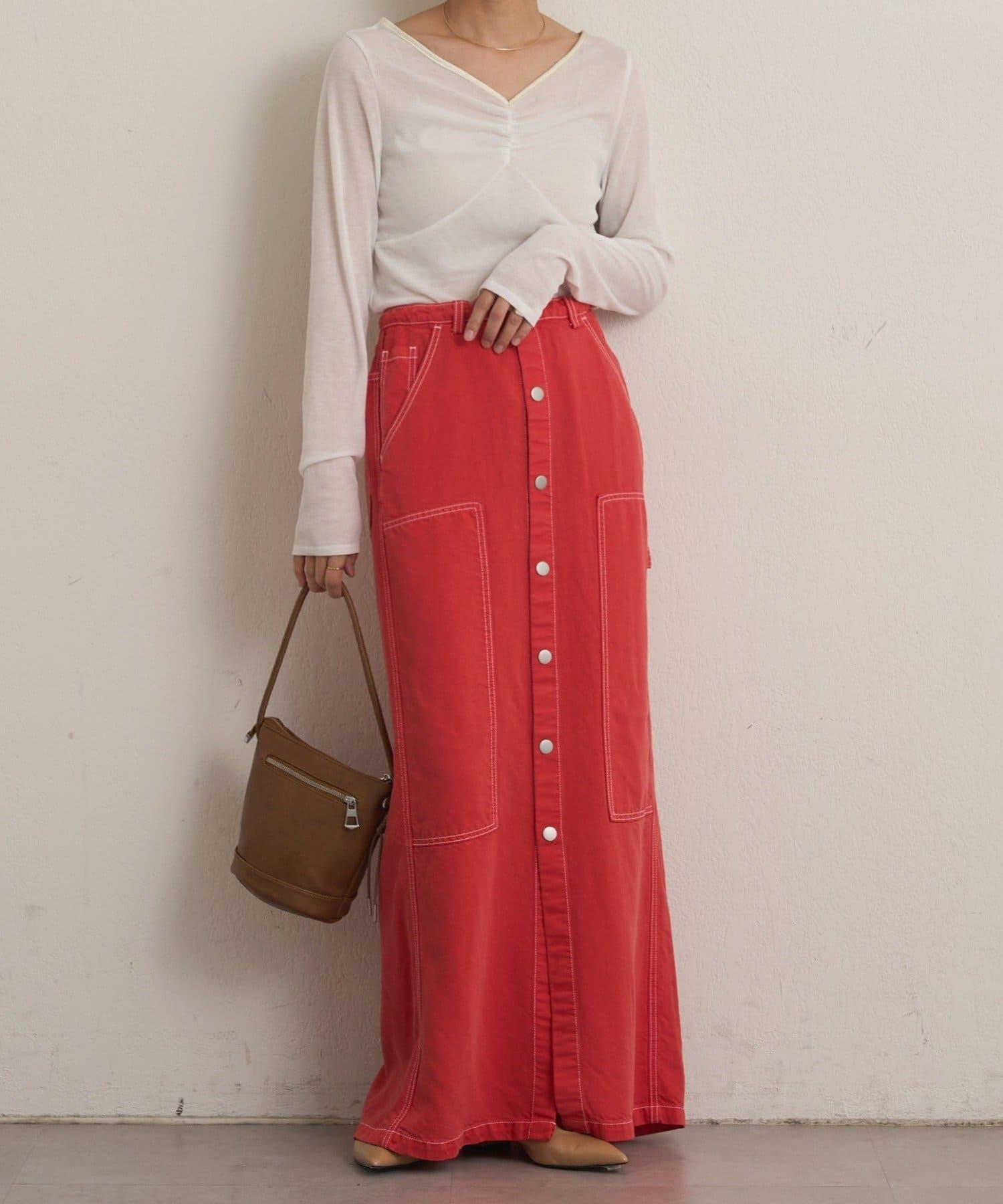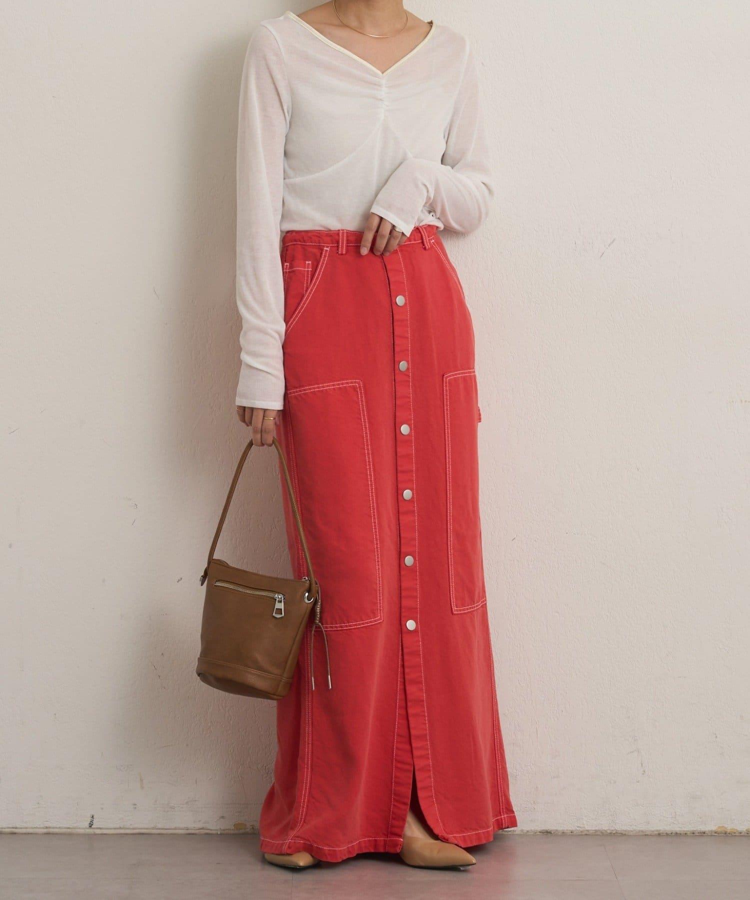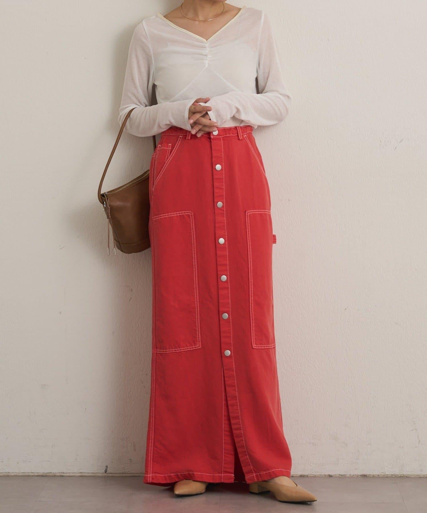 這是一款俏皮的長裙,帶有環形口袋和工具袋,融合了彩繪長褲的細節。