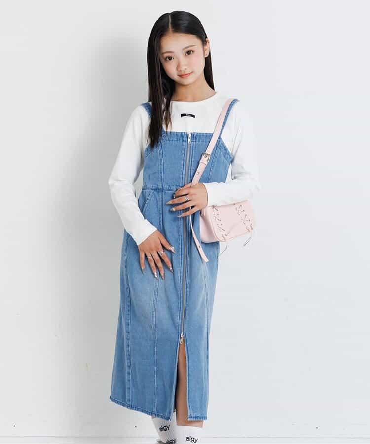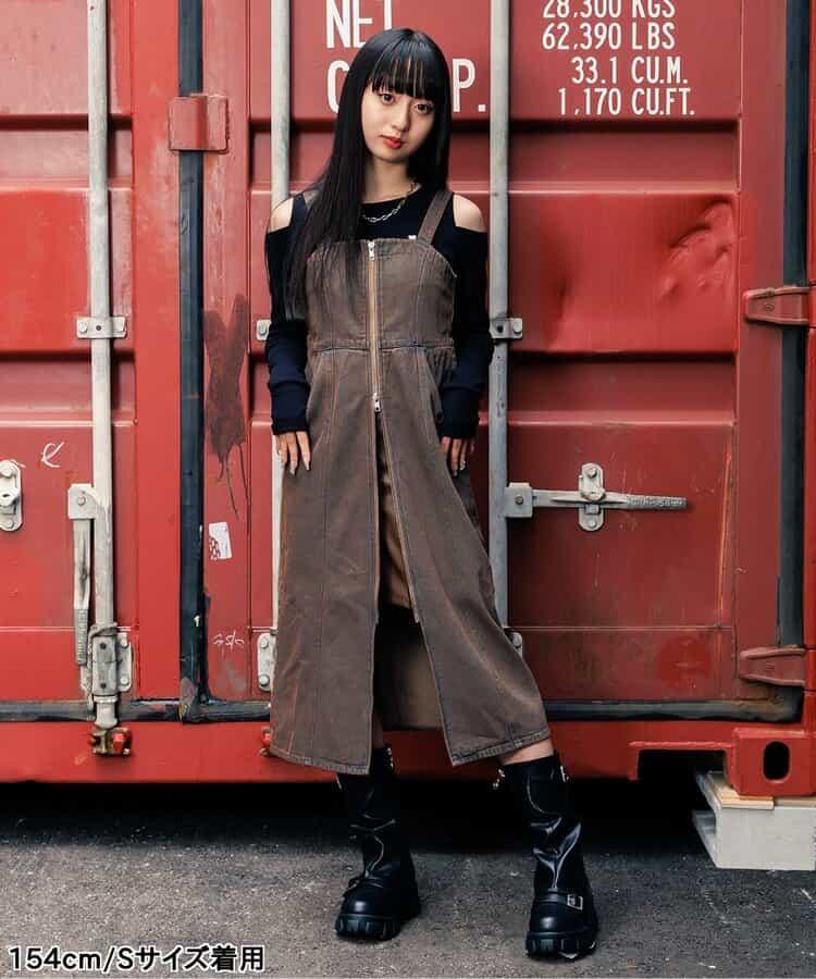 前拉鍊中長半身裙