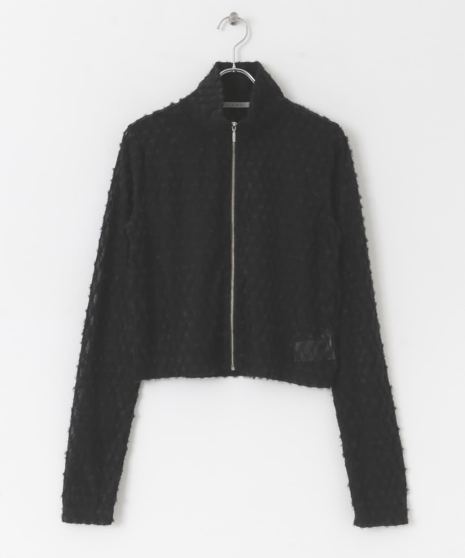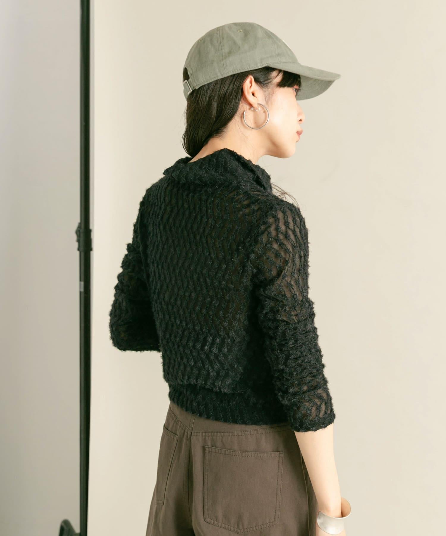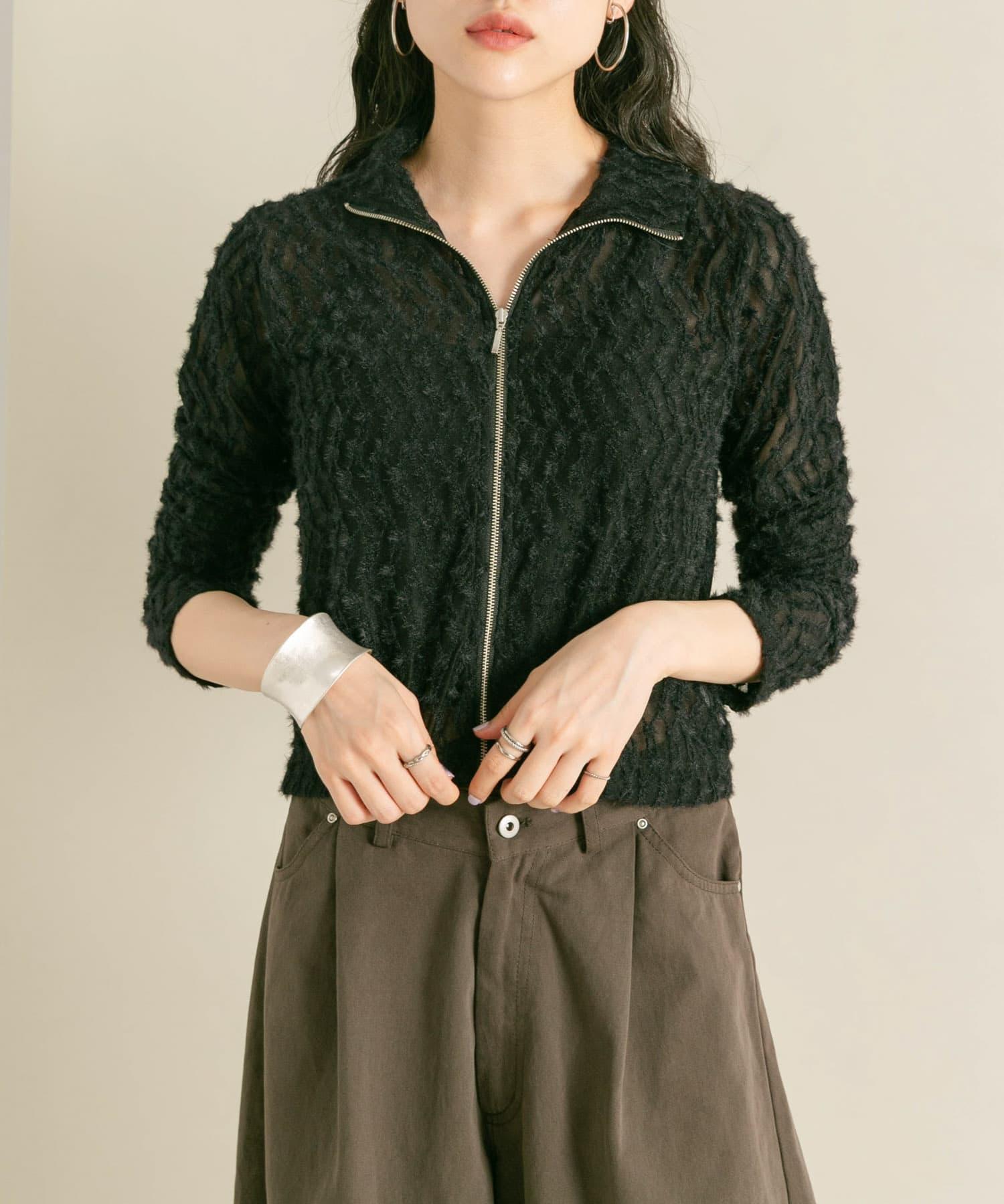 羽毛長款 T 恤採用細緻的蕾絲面料製成,單穿效果極佳。前襟的拉鍊設計是點睛之筆,日常穿著也不會顯得過於正式。