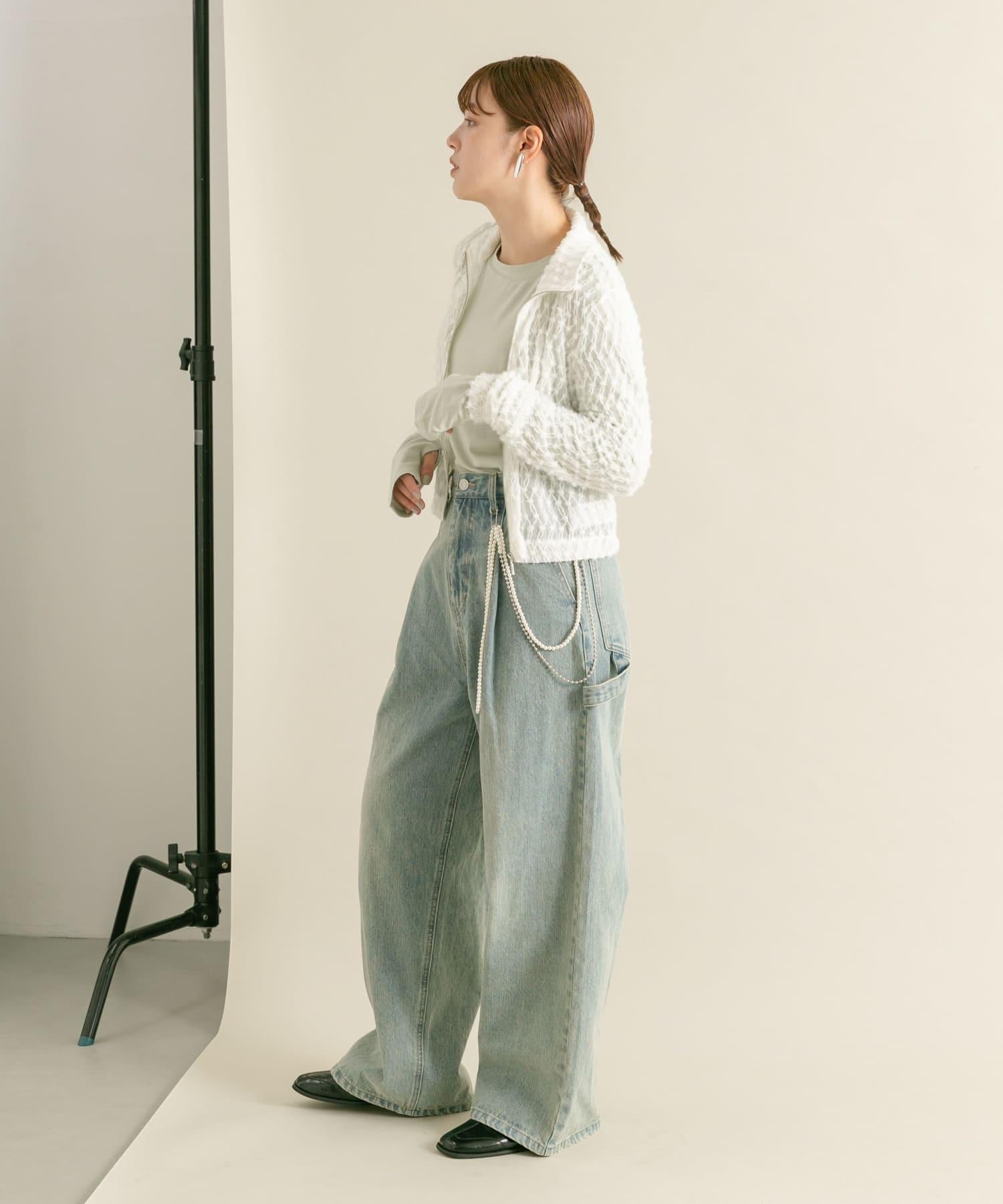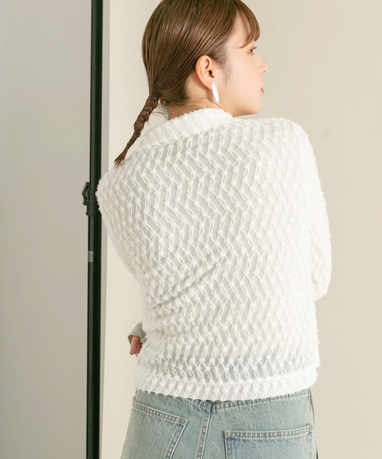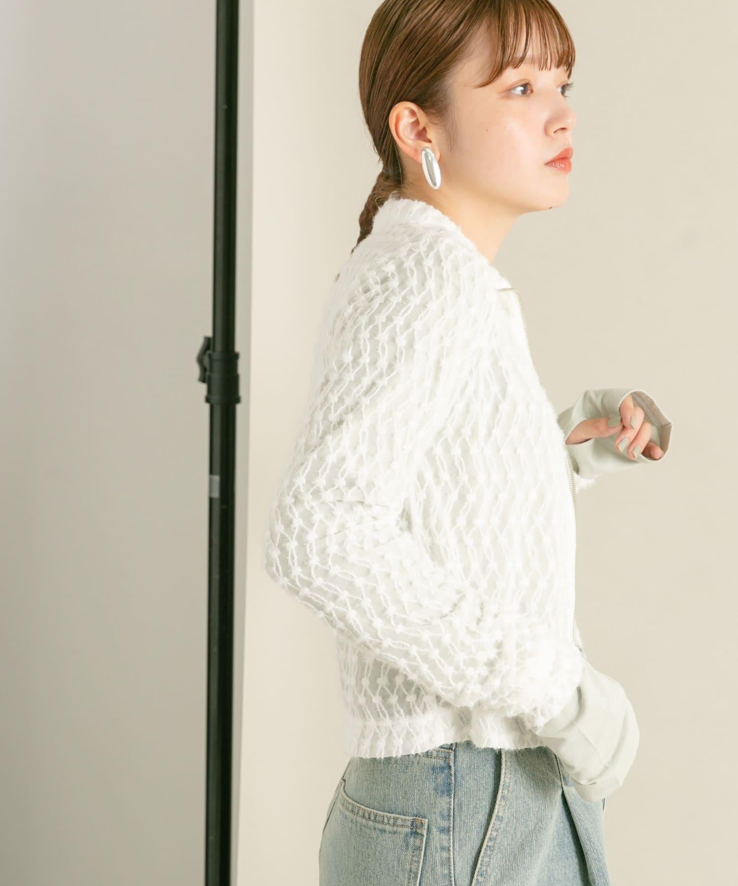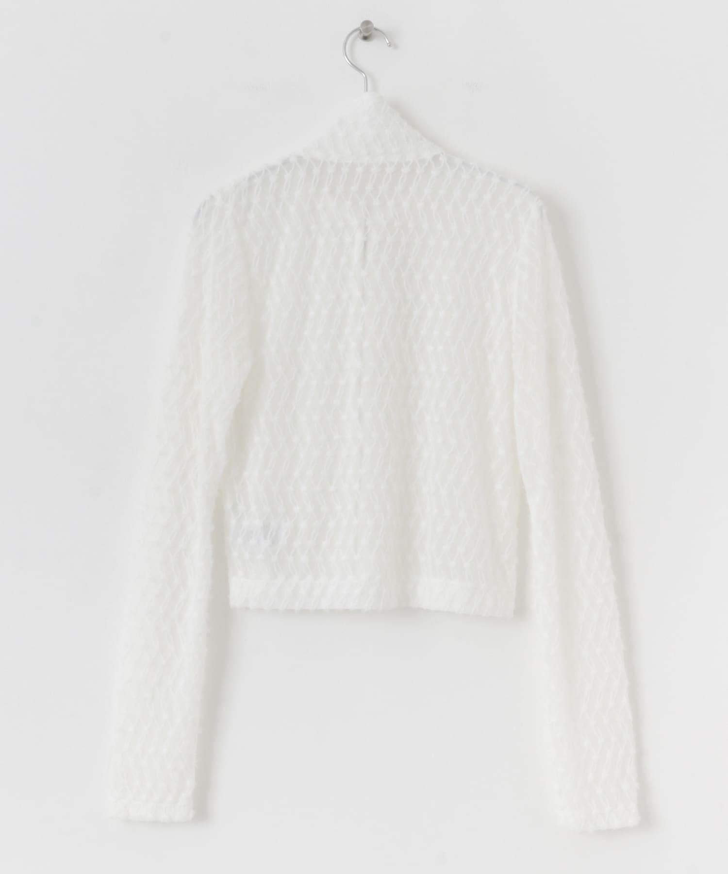 羽毛長款 T 恤採用細緻的蕾絲面料製成,單穿效果極佳。前襟的拉鍊設計是點睛之筆,日常穿著也不會顯得過於正式。