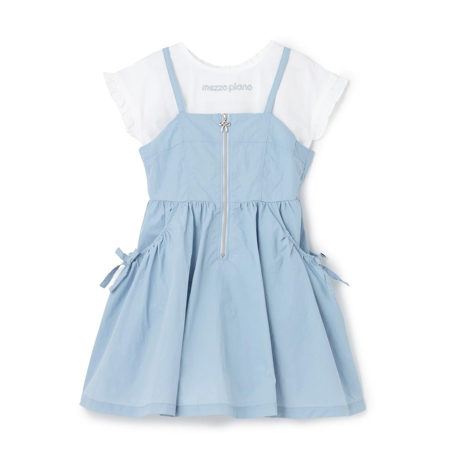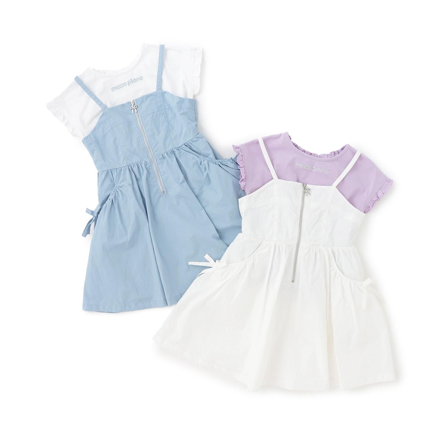 前拉鍊設計 吊帶連衣裙+短袖T恤套裝