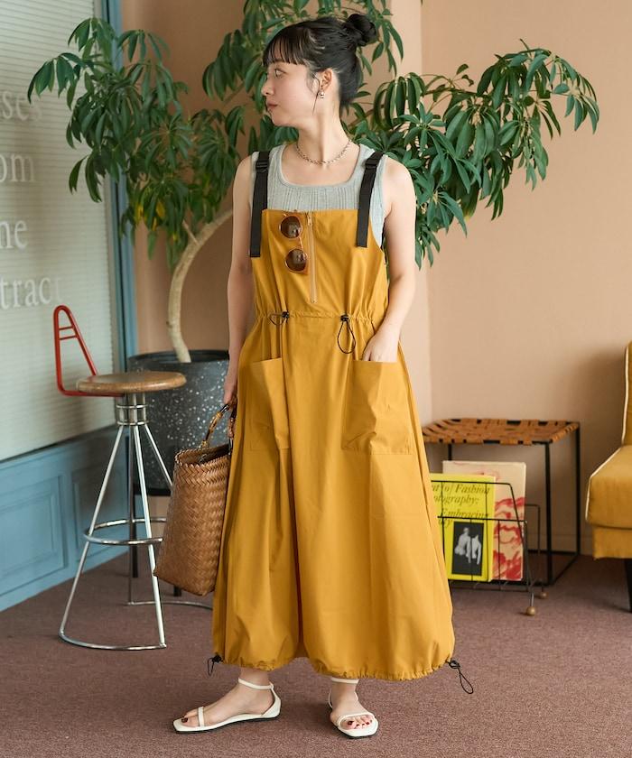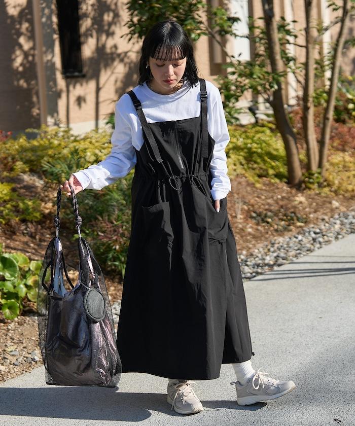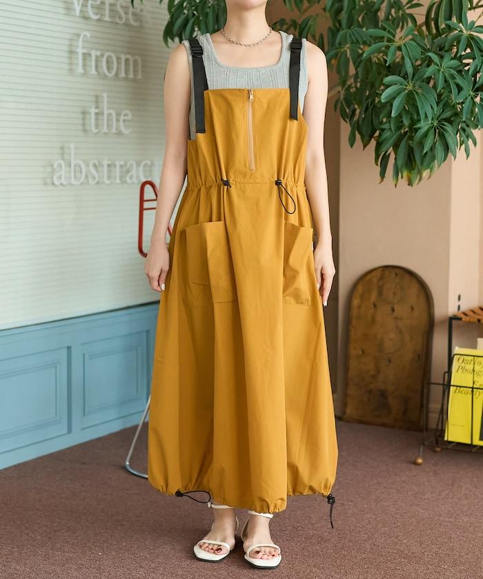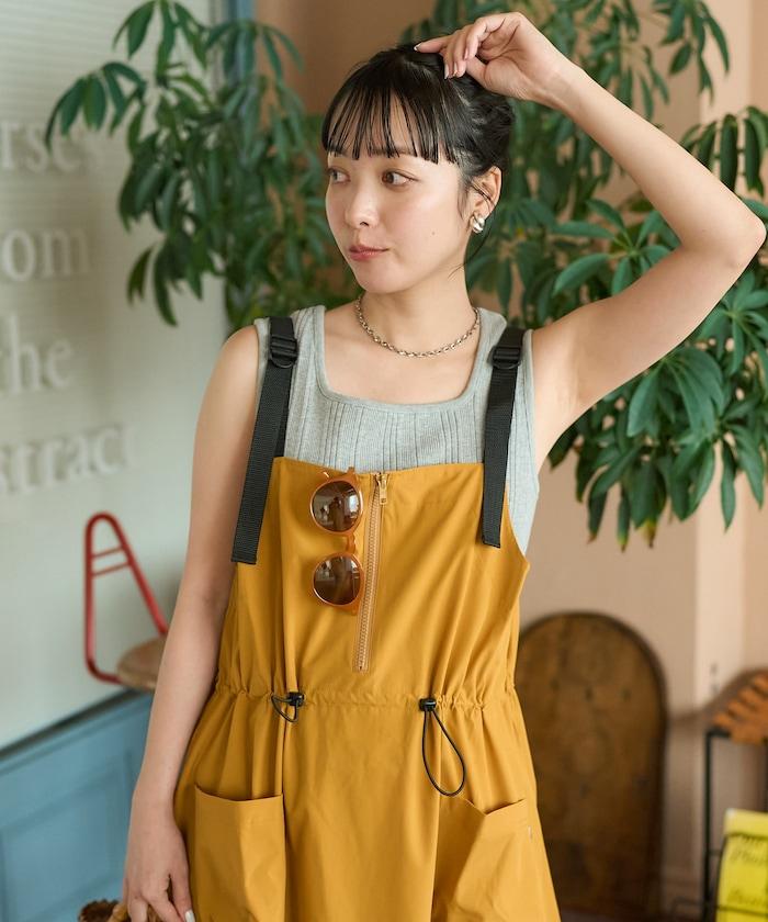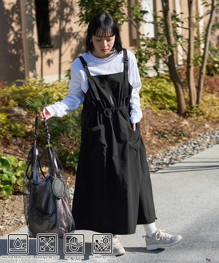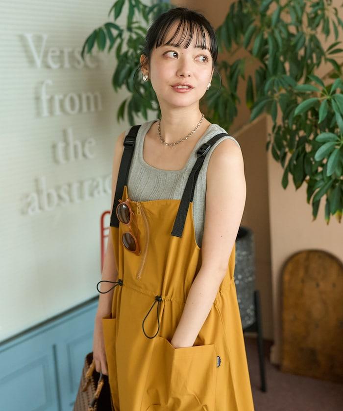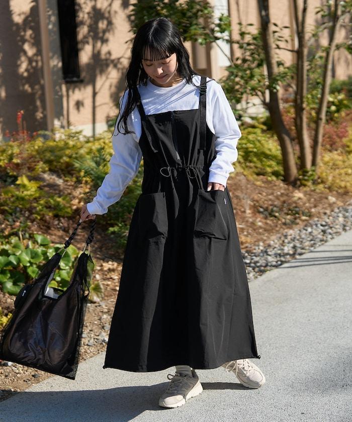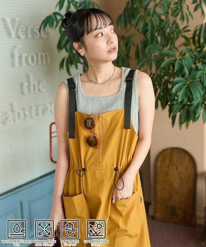 使用 THOUSAND MILE 的高功能性原創材料,從零開始設計的吊帶連身裙。