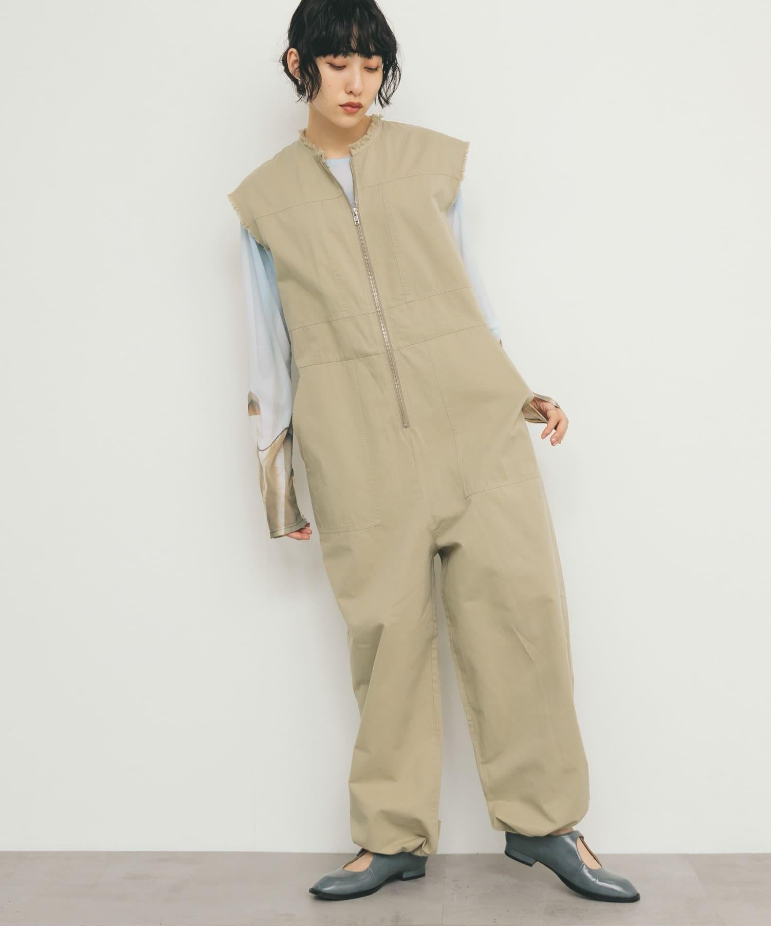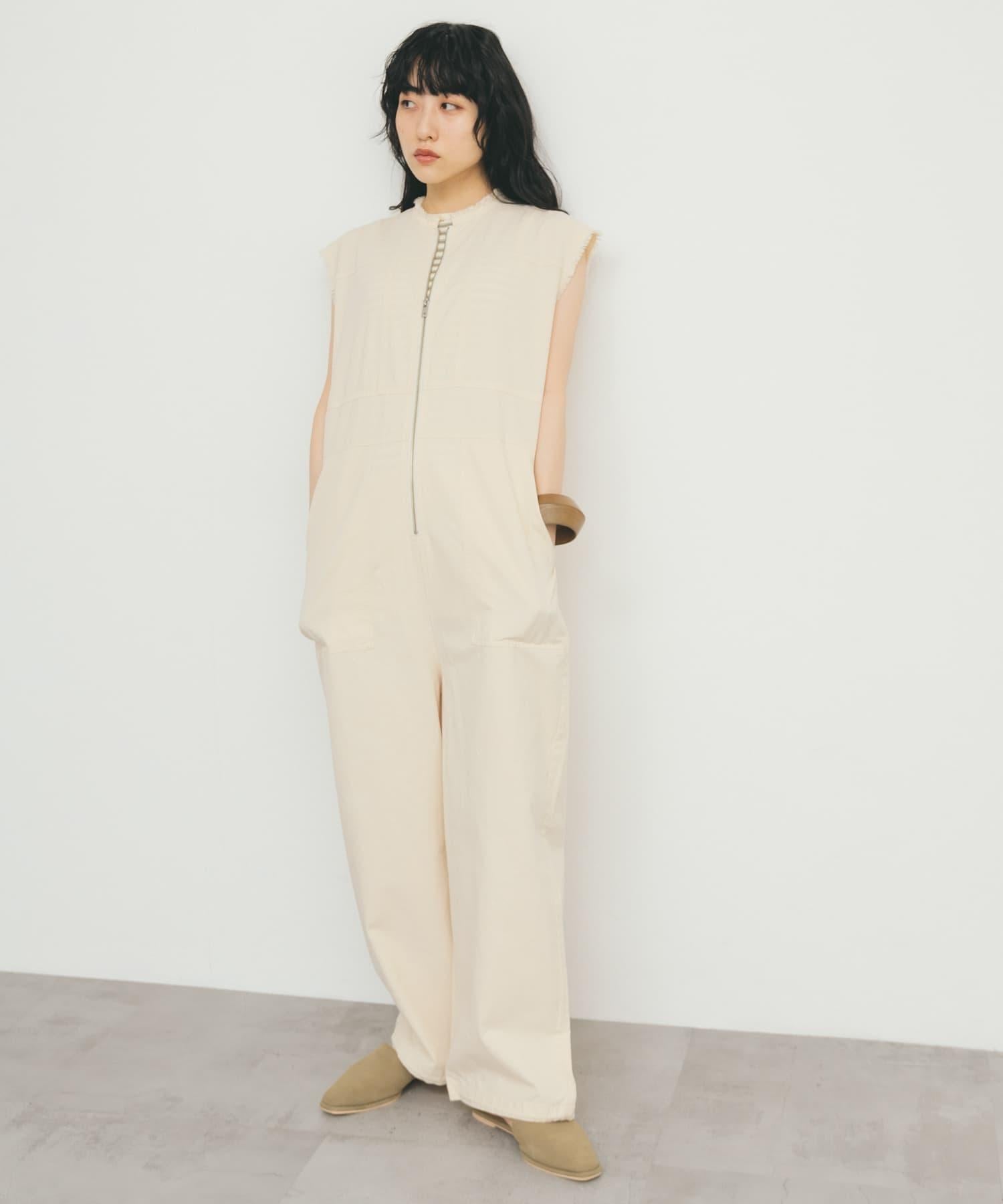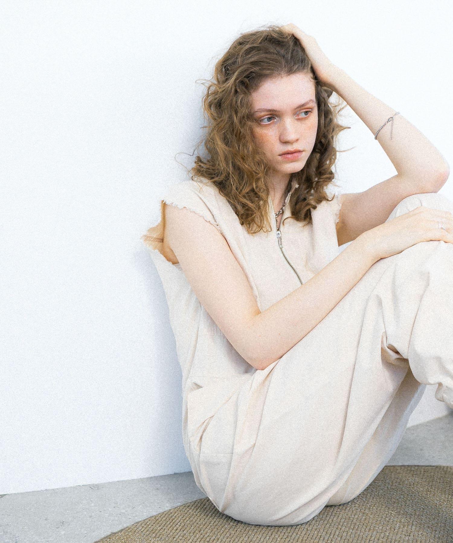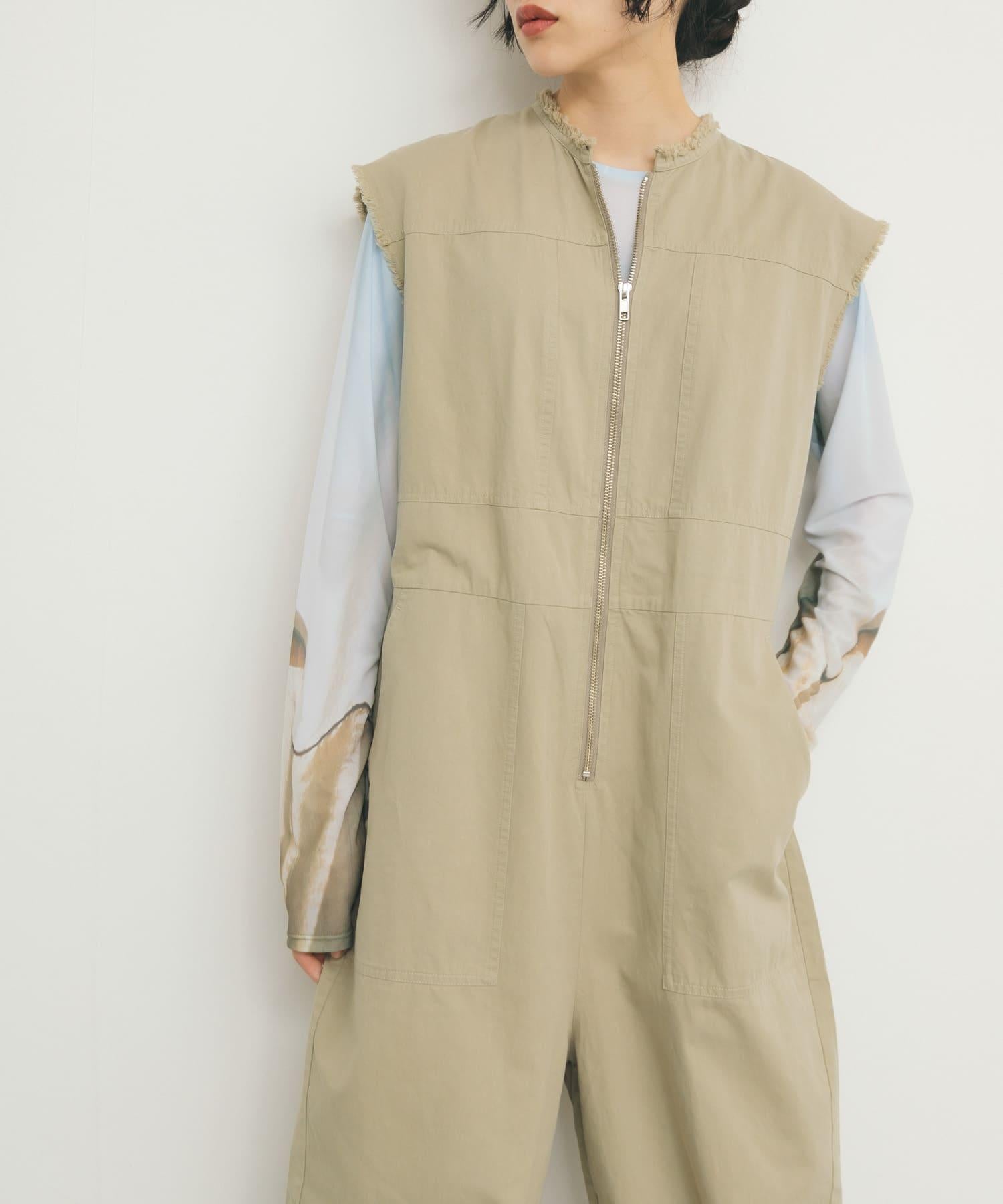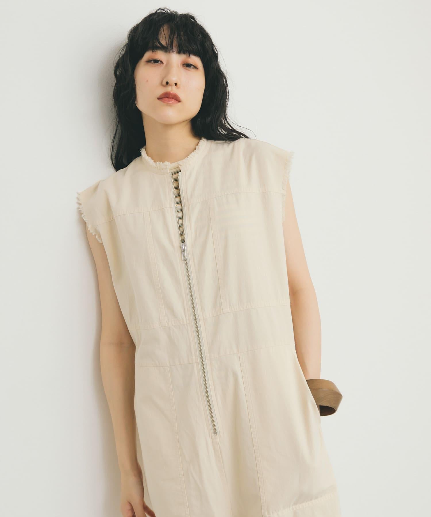 無袖搭配背心,休閒搭配 T 恤。也可與透視上衣和圖案單品搭配。只需稍稍拉開前襟拉鍊,就能穿出寬鬆的感覺。