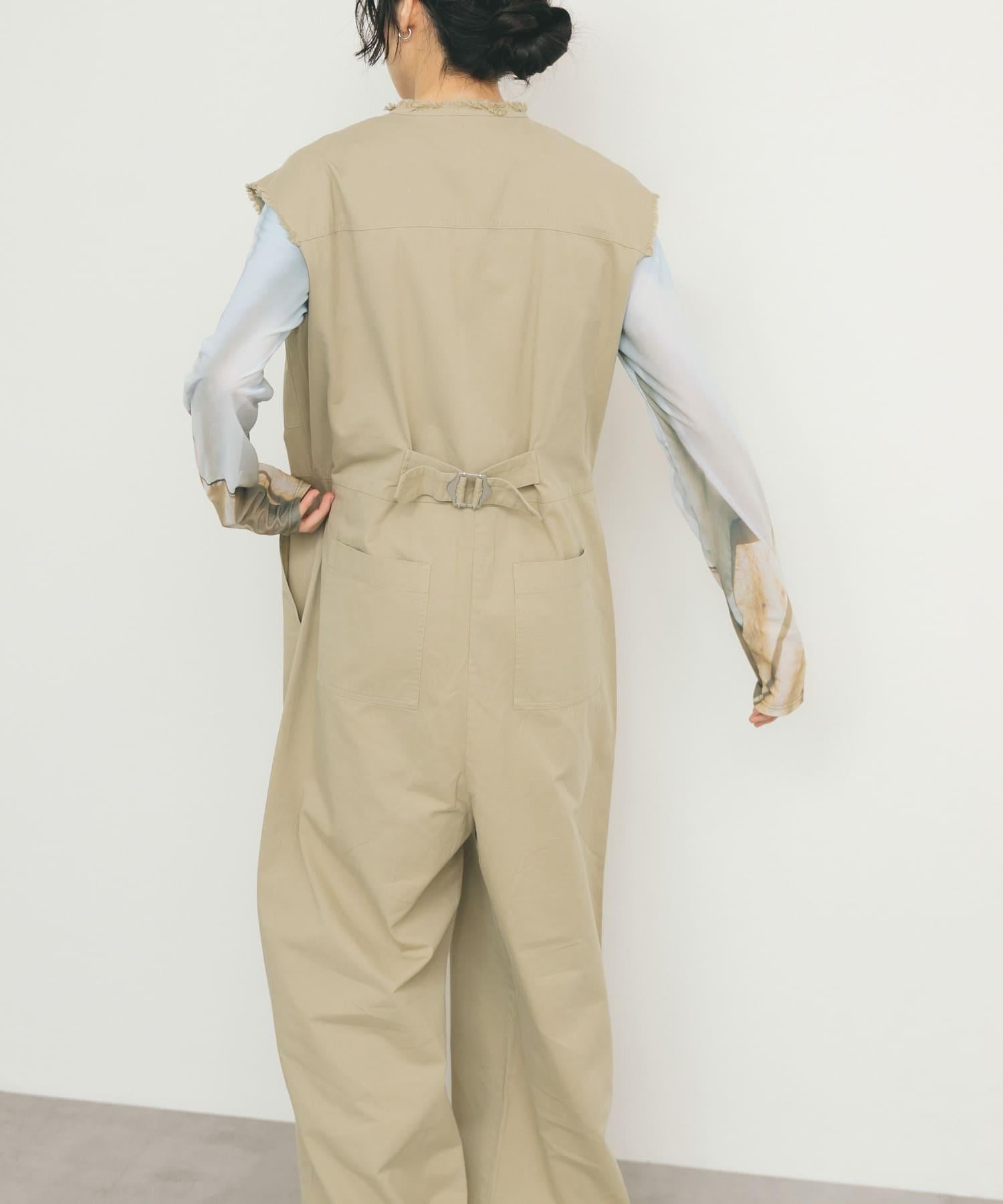 這款連身褲採用前拉鍊設計,衣領和腋下有流蘇裝飾。雖然尺碼適中寬鬆,但腰部的鏤空設計會讓你更有型。背部還配有腰帶,方便調整尺寸。舒適的 100% 純棉面料也是一款時尚易穿的單品。