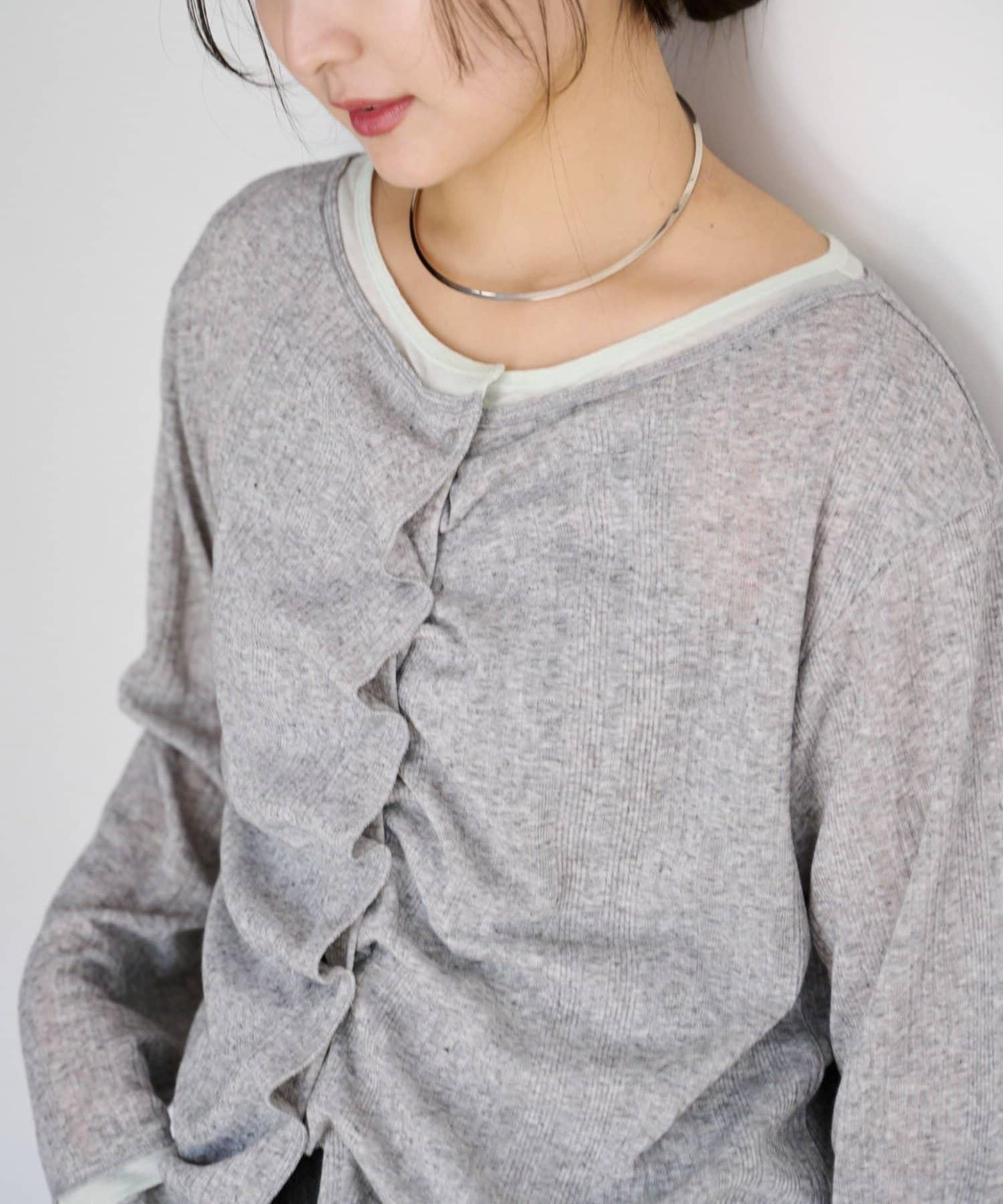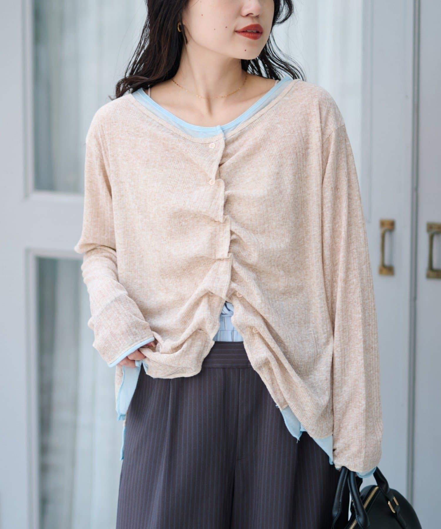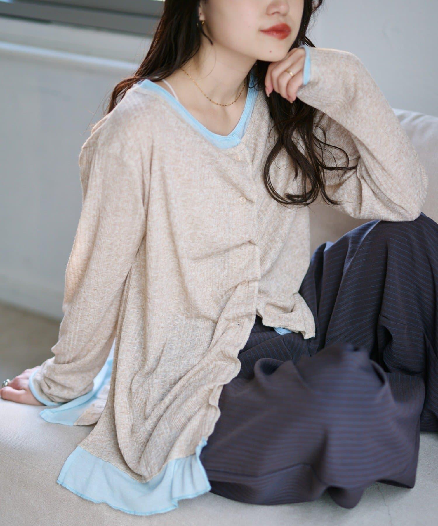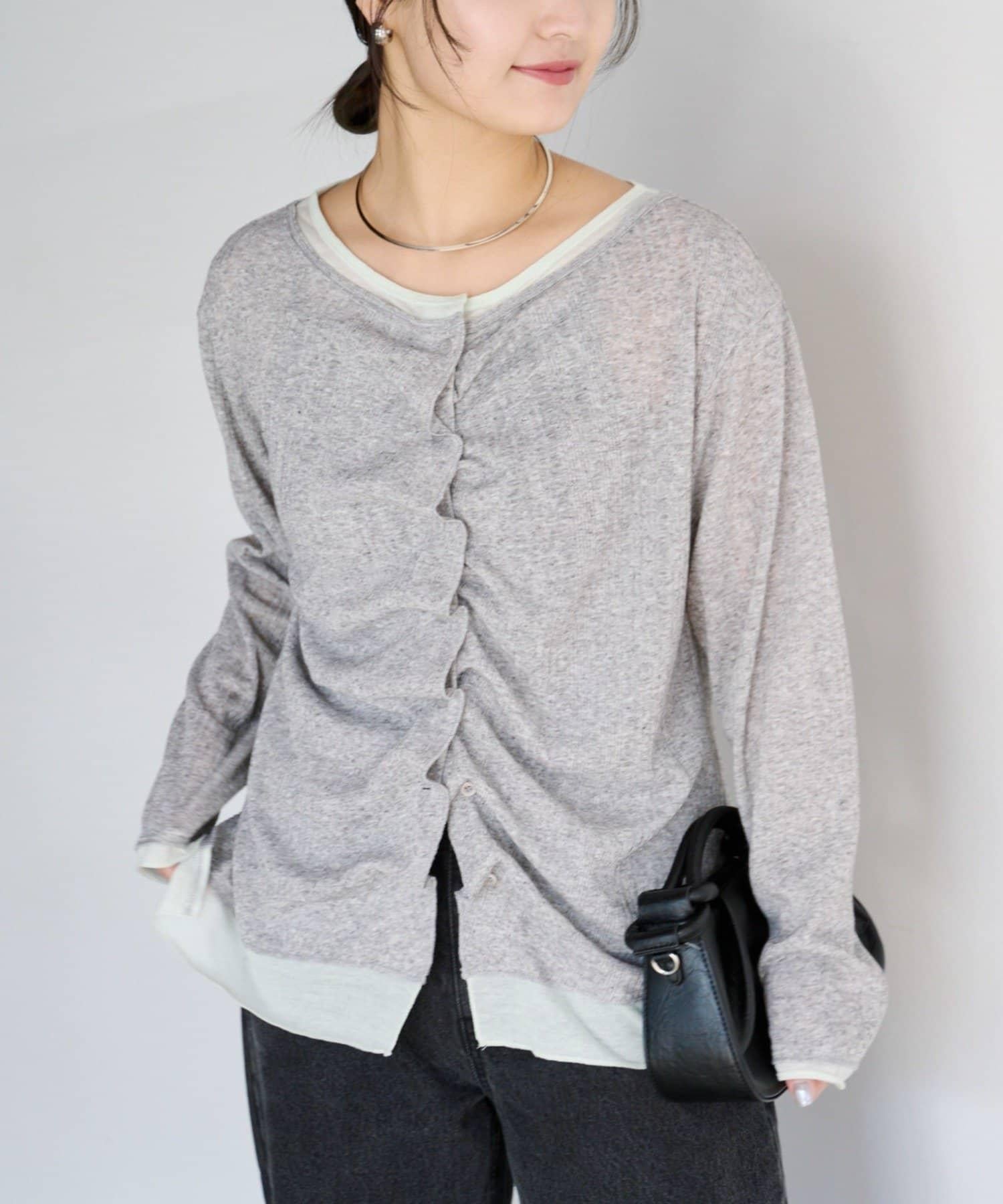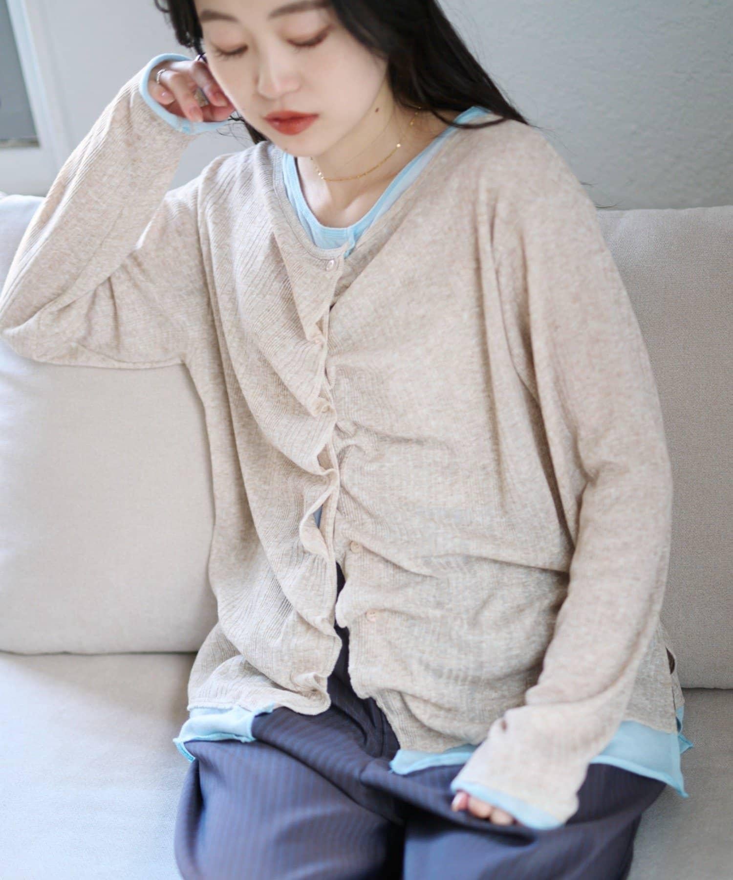 這是一款簡單的開衫,在頸部、袖子和下襬處有多層面料,穿上就有層次感。
