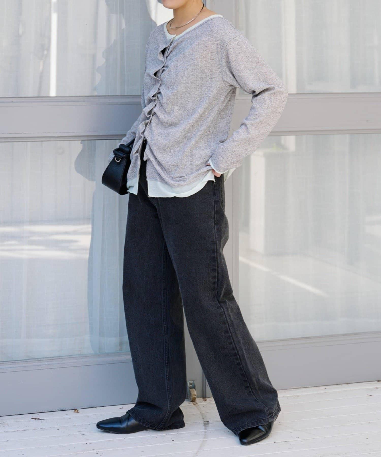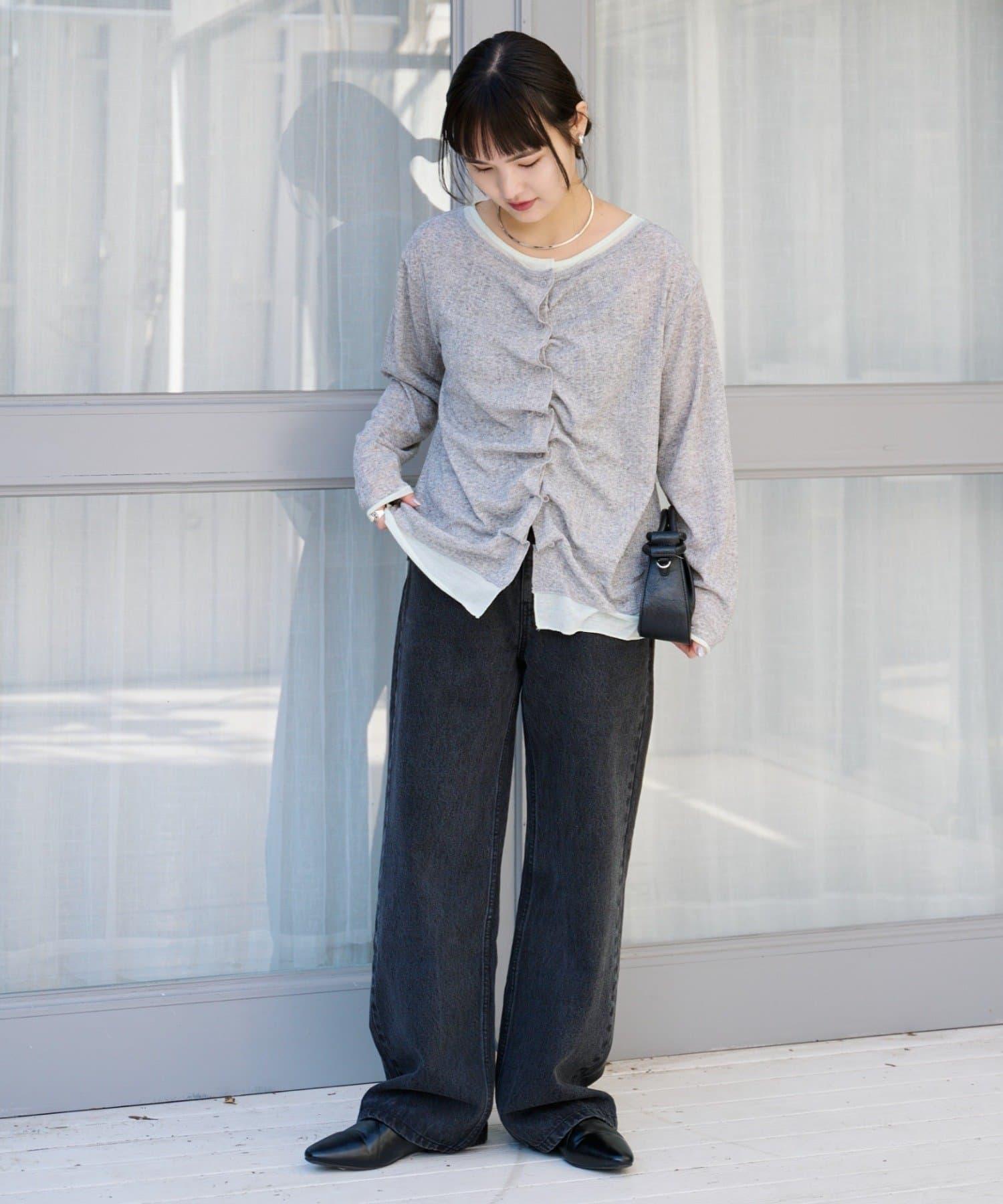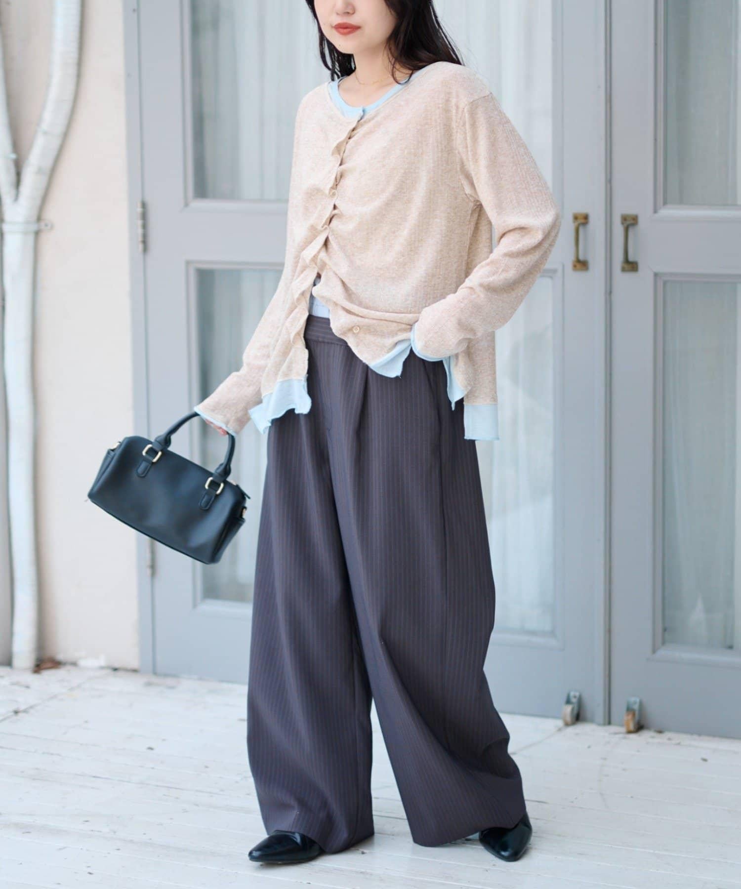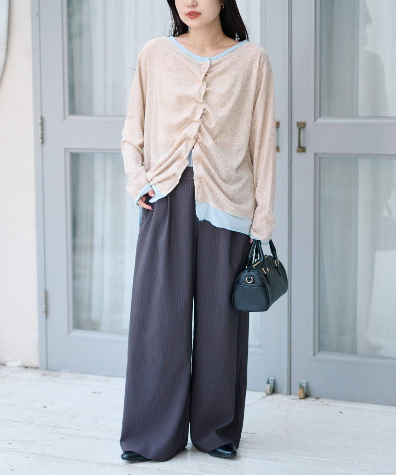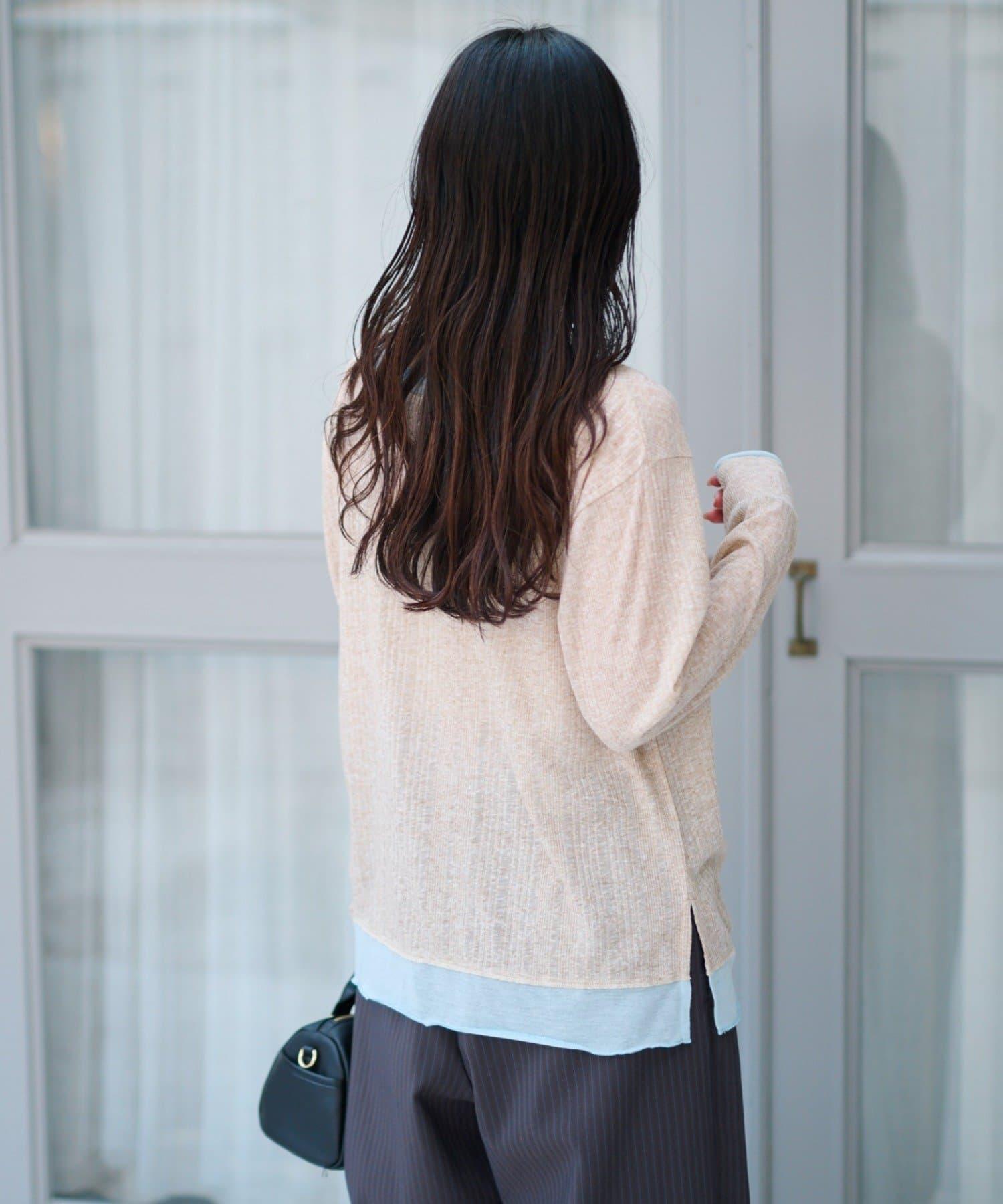這是一款簡單的開衫,在頸部、袖子和下襬處有多層面料,穿上就有層次感。