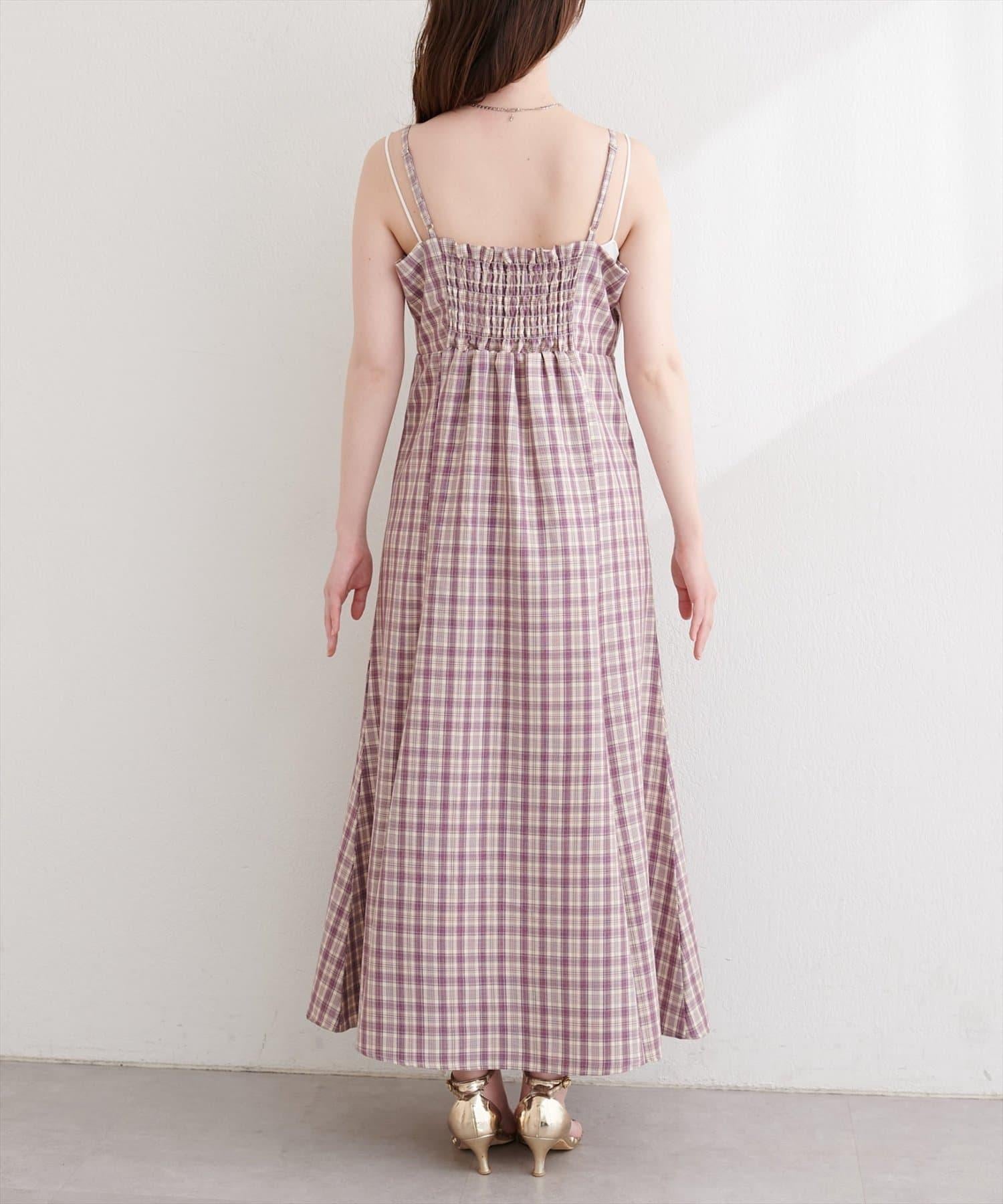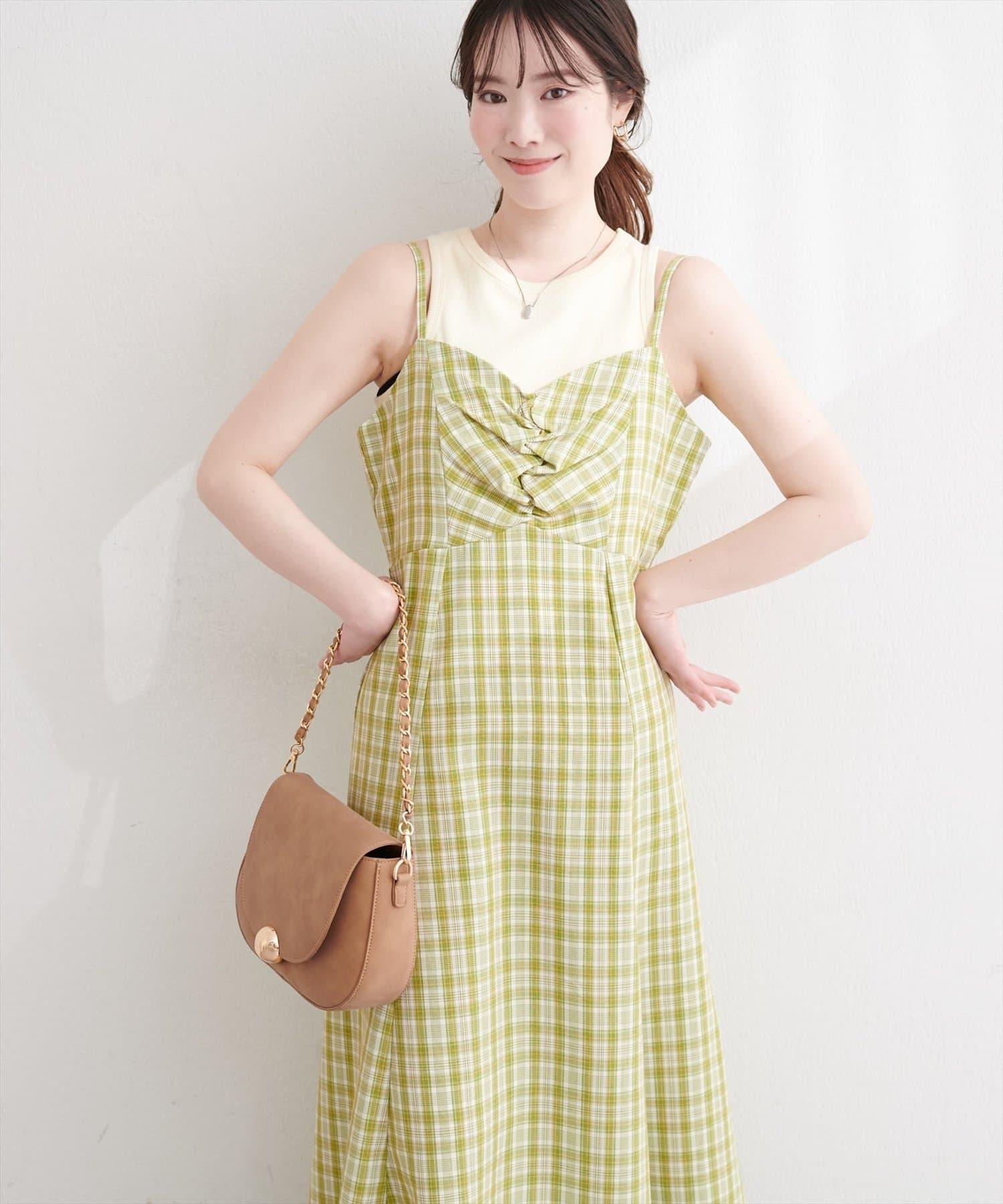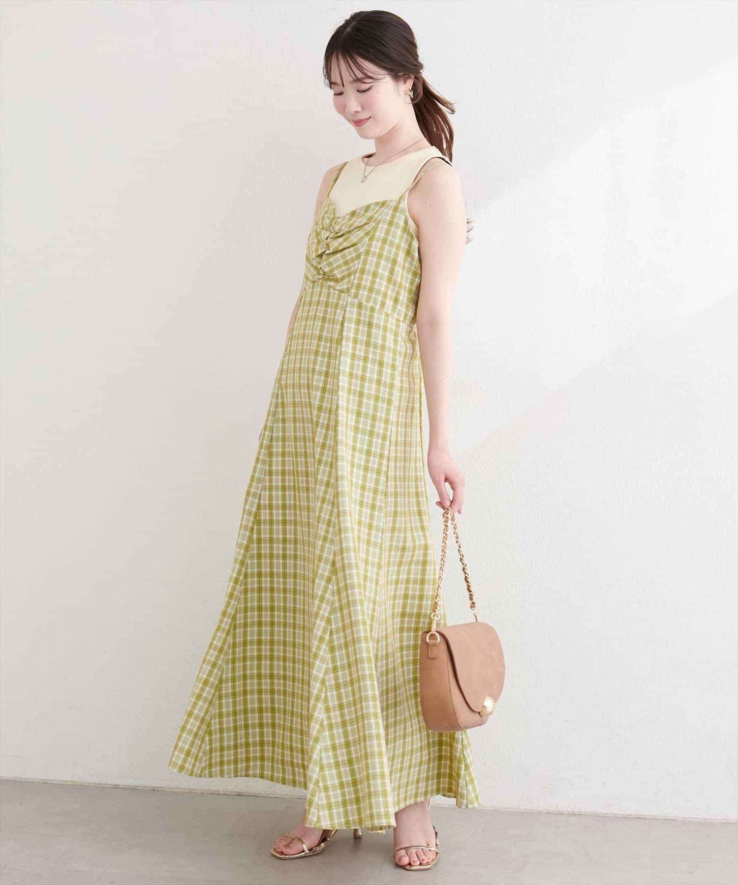 前幅聚攏格紋連衣裙