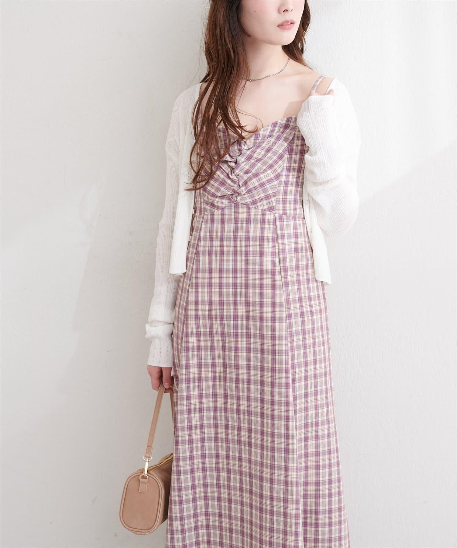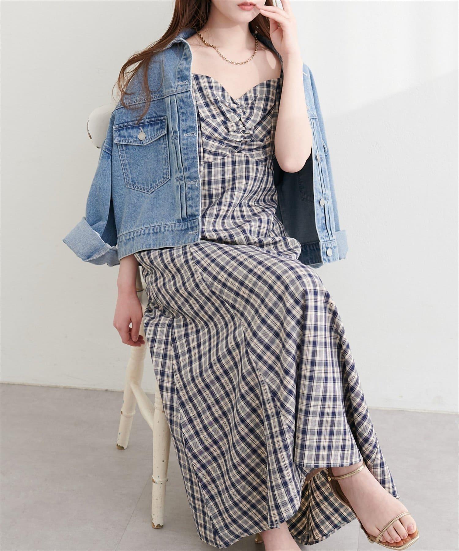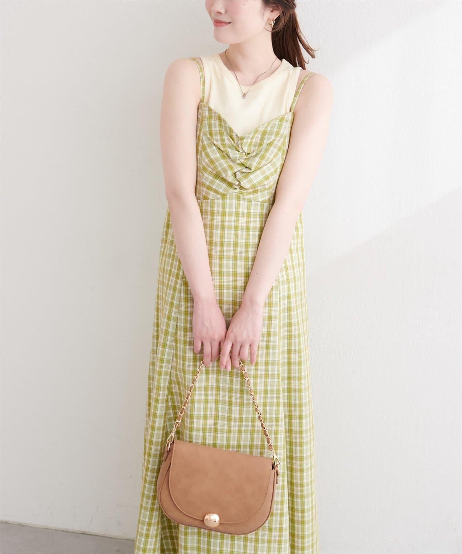 前幅聚攏格紋連衣裙