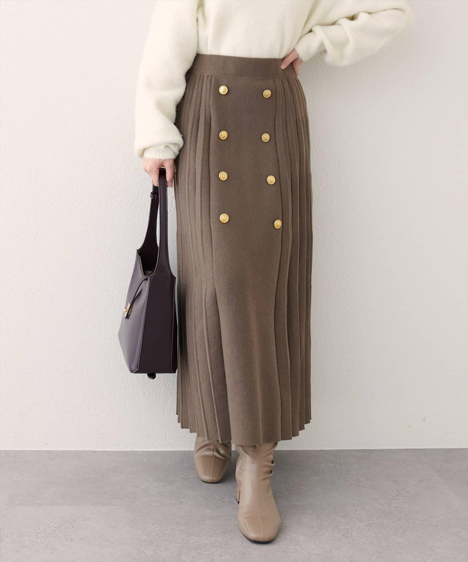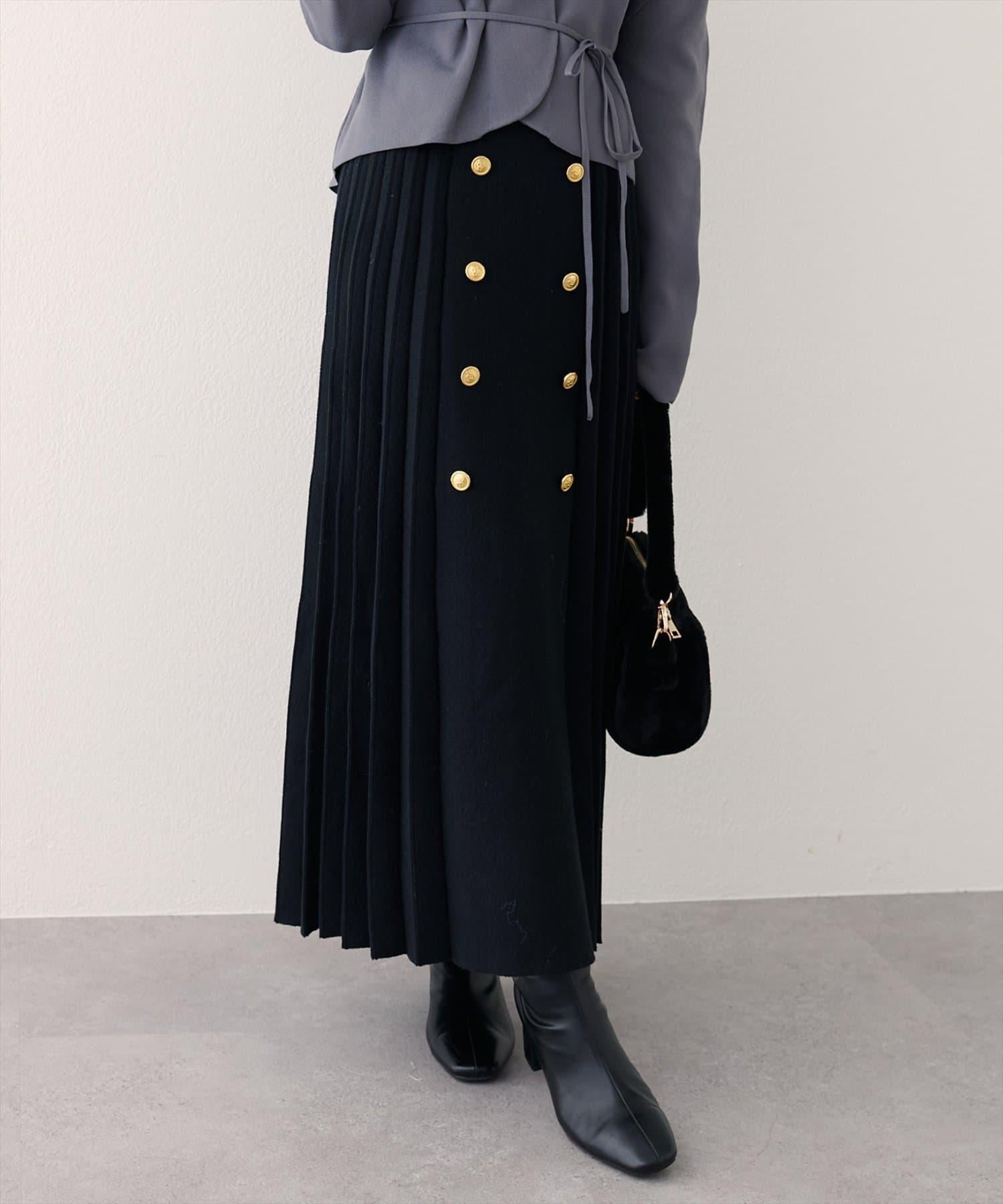 前釦針織百褶裙