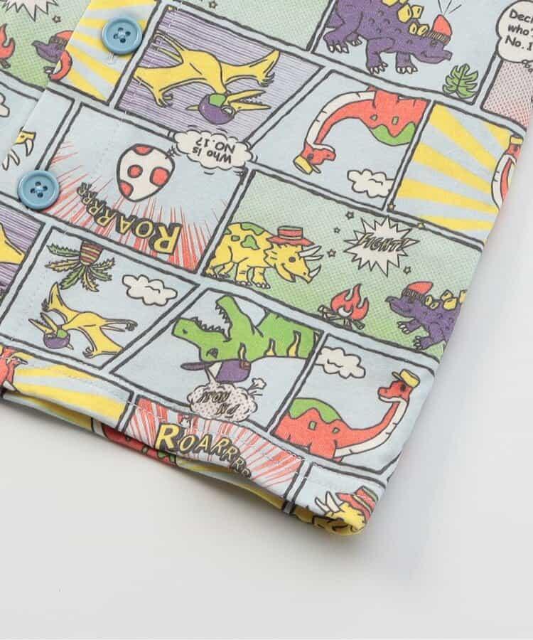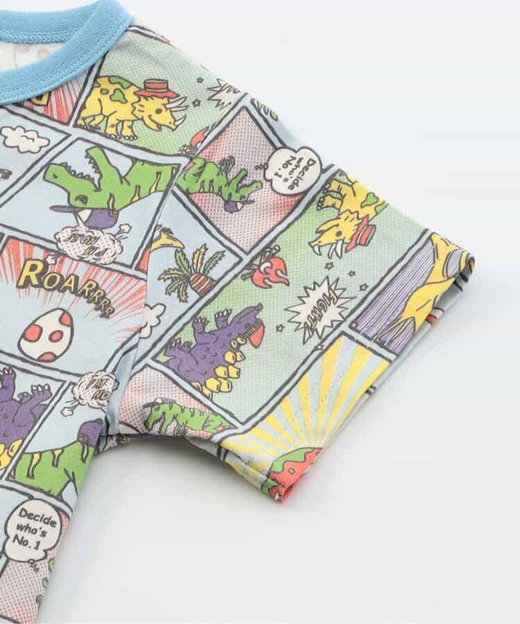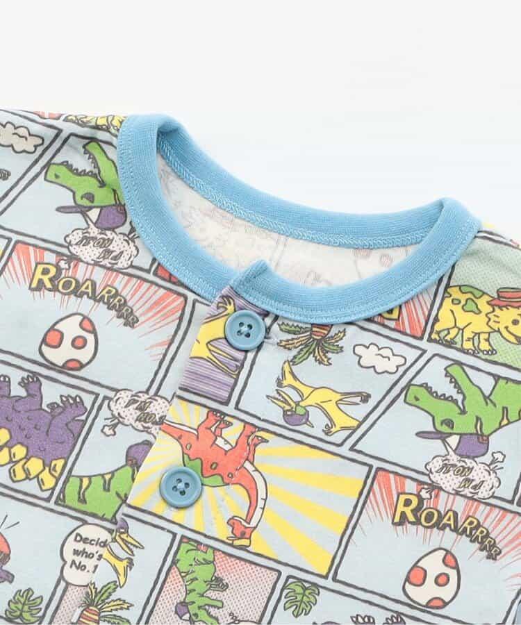 前開涼爽睡衣 恐龍漫畫圖案_接觸冷感